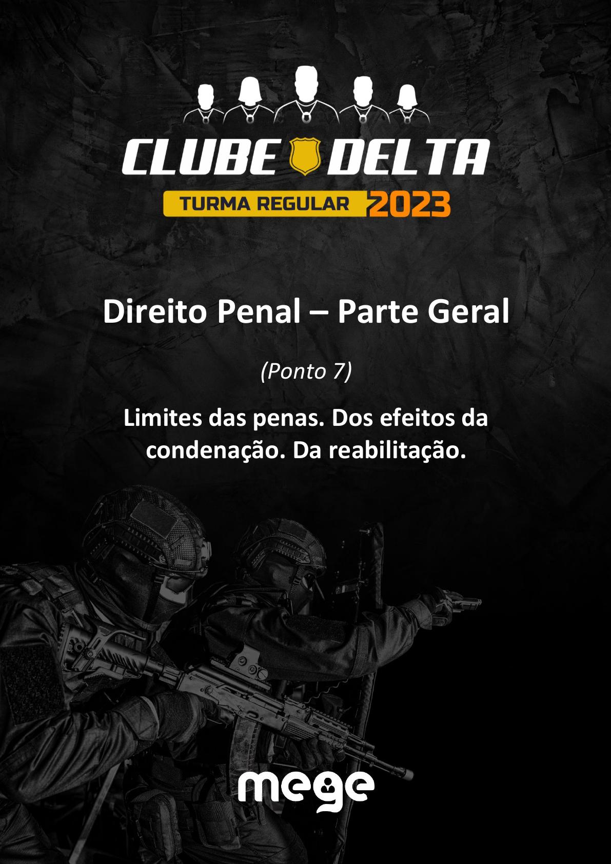 CPF: 860.542.154-18 PACHEGO GONÇALVES | 9999999999 | alesantosf2020@gmail.com | CPF: 860.542.154-18 É proibida a reprodução deste material sem a devida autorização, sob pena da adoção das medidas cabíveis na esfera cível e penal. 1 Direito Penal – Parte Geral (Ponto 7) Limites das penas. Dos efeitos da condenação. Da reabilitação. CPF: 860.542.154-18 PACHEGO GONÇALVES | 9999999999 | alesantosf2020@gmail.com | CPF: 860.542.154-18 É proibida a reprodução deste material sem a devida autorização, sob pena da adoção das medidas cabíveis na esfera cível e penal. 2 CURSO MEGE Site para cadastro: www.mege.com.br Celular / Whatsapp: (99) 982622200 (Tim) Turma: Clube Delta Material: Direito Penal – Parte Geral (Ponto 7) Direito Penal – Parte Geral (Ponto 7) Limites das penas. Dos efeitos da condenação. Da reabilitação. CPF: 860.542.154-18 PACHEGO GONÇALVES | 9999999999 | alesantosf2020@gmail.com | CPF: 860.542.154-18 É proibida a reprodução deste material sem a devida autorização, sob pena da adoção das medidas cabíveis na esfera cível e penal. 3 SUMÁRIO CONTEÚDO PROGRAMÁTICO DA RODADA ...................................................................... 4 1. DOUTRINA (RESUMO) ................................................................................................... 5 1.1. LIMITES DAS PENAS ................................................................................................... 5 1.2. EFEITOS DA CONDENAÇÃO ........................................................................................ 7 1.3. REABILITAÇÃO.......................................................................................................... 25 2. QUESTÕES ................................................................................................................... 29 3. GABARITO COMENTADO ............................................................................................ 31 CPF: 860.542.154-18 PACHEGO GONÇALVES | 9999999999 | alesantosf2020@gmail.com | CPF: 860.542.154-18 É proibida a reprodução deste material sem a devida autorização, sob pena da adoção das medidas cabíveis na esfera cível e penal. 4 CONTEÚDO PROGRAMÁTICO DA RODADA (Conforme Edital Mege) DIREITO PENAL Limites das penas. Dos efeitos da condenação. Da reabilitação. CPF: 860.542.154-18 PACHEGO GONÇALVES | 9999999999 | alesantosf2020@gmail.com | CPF: 860.542.154-18 É proibida a reprodução deste material sem a devida autorização, sob pena da adoção das medidas cabíveis na esfera cível e penal. 5 1. DOUTRINA (RESUMO) 1.1. LIMITES DAS PENAS 1.1.1. REGRAS GERAIS Limite das penas Art. 75. O tempo de cumprimento das penas privativas de liberdade não pode ser superior a 40 (quarenta) anos. § 1º Quando o agente for condenado a penas privativas de liberdade cuja soma seja superior a 40 (quarenta) anos, devem elas ser unificadas para atender ao limite máximo deste artigo. § 2º Sobrevindo condenação por fato posterior ao início do cumprimento da pena, far-se-á nova unificação, desprezando- se, para esse fim, o período de pena já cumprido. Estabelece a Constituição Federal que não haverá penas de caráter perpétuo (art. 5º, XLVII, “b”). Nessa esteira, o art. 75 do CP estabelece que o tempo de cumprimento das penas privativas de liberdade não pode ser superior a 40 anos. Por conseguinte, quando o agente for condenado a penas privativas de liberdade cuja soma seja superior a 40 anos, devem elas ser unificadas pelo juiz da execução penal para atender ao limite máximo de 40 anos. Observe, portanto, que o art. 75 é aplicável em sede de execução penal. O juiz da condenação, ao aplicar a pena, não está adstrito a esse limite. OBSERVAÇÃO: O limite de 40 anos não incide sobre benefícios da execução (ex.: progressão de regime, livramento condicional etc.). Ex.: se o sujeito tem 100 anos de pena a cumprir, o lapso de progressão será calculado com base em 100 anos, não com base em 40 anos. Súmula 715 do STF - A pena unificada para atender ao limite de trinta anos de cumprimento, determinado pelo art. 75 do Código Penal, não é considerada para a concessão de outros benefícios, como o livramento condicional ou regime mais favorável de execução. ATENÇÃO! O art. 75 do Código Penal sofreu alteração pela publicação da Lei 13.964/19. Assim sendo, atualmente, onde se lê “trinta anos”, leia-se: quarenta anos. CPF: 860.542.154-18 PACHEGO GONÇALVES | 9999999999 | alesantosf2020@gmail.com | CPF: 860.542.154-18 É proibida a reprodução deste material sem a devida autorização, sob pena da adoção das medidas cabíveis na esfera cível e penal. 6 ATENÇÃO! O art. 10 da Lei de Contravenções Penais (Decreto-lei 3.688/41) traz regra específica: “A duração da pena de prisão simples não pode, em caso algum, ser superior a 5 anos”. 1.1.2. CONDENAÇÃO POR FATO POSTERIOR E NOVA UNIFICAÇÃO Caso sobrevenha condenação por fato posterior ao início do cumprimento da pena, far-se-á nova unificação, desprezando-se, para esse fim, o período de pena já cumprido. Ex.: sujeito foi condenado a 100 anos de prisão. A pena foi unificada em 40 anos e ele já cumpriu 20 anos. Mata o carcereiro, recebendo mais 25 anos de pena. Desprezam-se os 20 anos já cumpridos e faz-se nova unificação, podendo o sujeito ficar preso mais 40 anos. Essa regra busca evitar que os condenados a penas de longa duração tenham um “cheque em branco” para praticarem delitos no cárcere. Há uma falha: se o agente praticar o novo crime logo no início do cumprimento da pena, acabará ficando impune. Ex.: condenado a 100 anos de prisão, tem a pena unificada em 40 anos. No primeiro dia, mata 5 carcereiros e 8 presos, recebendo mais 300 anos de prisão. Haverá nova unificação, em 40 anos. 1.1.3. FUGA DO ESTABELECIMENTO PENAL Em caso de fuga do condenado do estabelecimento prisional, e desde que não seja praticado um novo crime, o