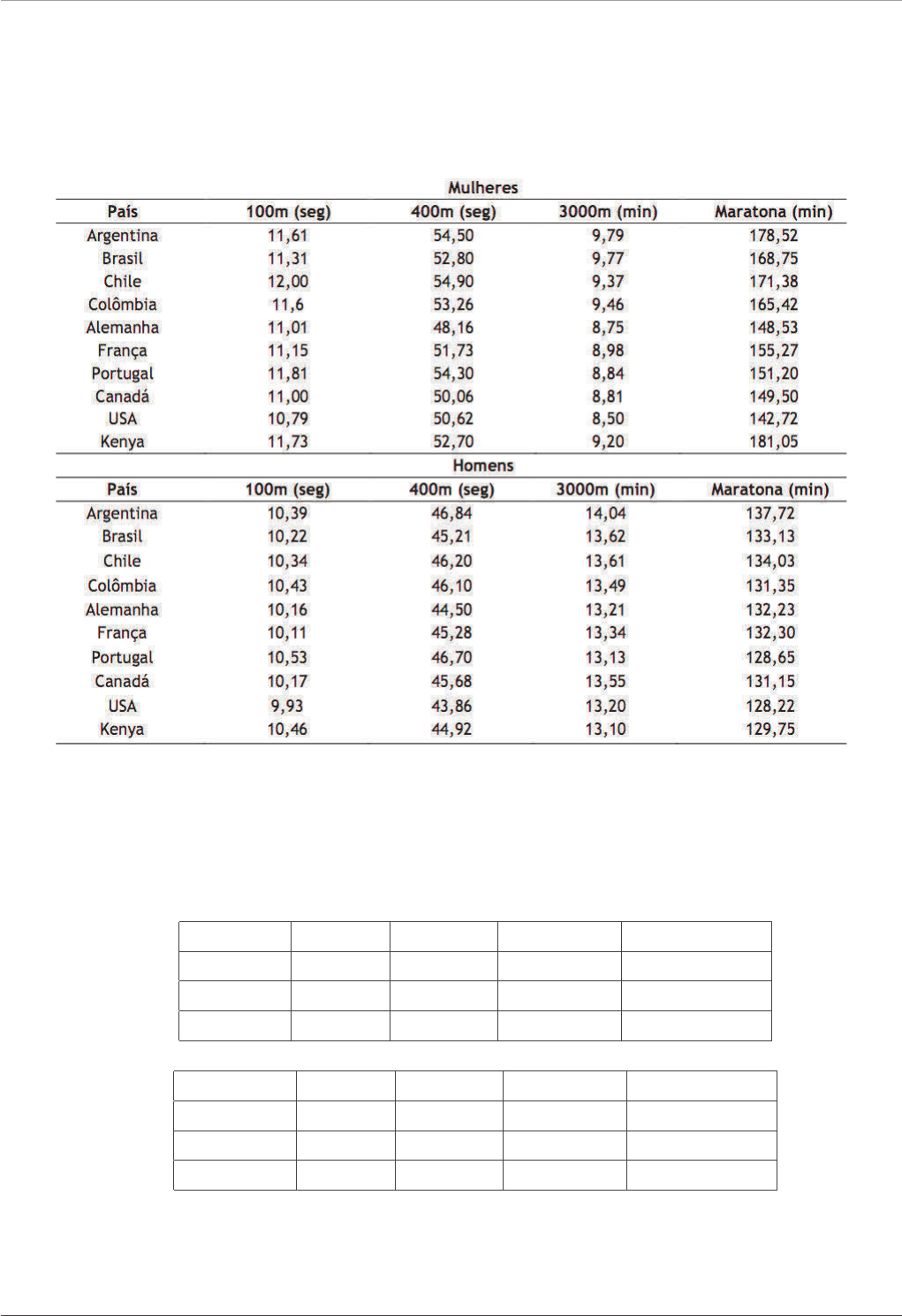 MAE116 – Noções de Estatística Farmácia - Noturno - 2o semestre de 2017 Lista de exercícios 2 - Estatística Descritiva II - C A S A (gabarito) Exercício 2. Os dados a seguir correspondem aos recordes de atletas de 10 países na Olimpíada de Los Angeles em 1984 em algumas provas de atletismo. Figura 3: Recordes de atletas. a. Para cada gênero e modalidade, calcule a média, mediana e desvio padrão dos recordes. Resposta: Nas seguintes tabelas apresentamos as medidas para cada gênero: MUJERES 10m(seg) 400m(seg) 3000m(min) Maratona(min) Média 11,40 52,30 9,15 161,23 Mediana 11,45 52,75 9,09 160,34 D.P 0,40 2,16 0,44 13,52 HOMBRES 10m(seg) 400m(seg) 3000m(min) Maratona(min) Média 10,27 45,53 13,43 131,85 Mediana 10,28 45,48 13,41 131,79 D.P 0,18 0,96 0,29 2,78 b. Compare os resultados em a). Em qual modalidade as diferenças quanto ao gênero são maiores? E em qual são menores? Resposta: Observando nas tabelas podemos dizer que as diferenças são 3 MAE116 – Noções de Estatística Farmácia - Noturno - 2o semestre de 2017 Lista de exercícios 2 - Estatística Descritiva II - C A S A (gabarito) maiores nas modalidades de 400m, 3000m e Maratona, sendo as medidas nos homens menores em 400m e Maratona e maior na modalidade de 3000m. Enquanto na modalidade de 100m, as médias e medianas são similares com valores no desvio padrão baixos. c. Utilizando gráficos boxplot faça uma comparação do desempenho entre os sexos nas quatro modali- dades. Comente. Resposta: Na seguinte figura apresenta-se os boxplots dos recordes de homens e mulheres por mo- dalidade. Figura 4: Boxplots por modalidade. • Recordes 100m : Se observa que o tempo dos homens é menor que o tempos das mulheres, mos- trando uma variabilidade maior nas mulheres. • Recordes 400m : A distribución dos dados apresenta comportamento similar aos recordes de 100m. • Recordes 3000m : Observamos um tempo menor nas mulheres que nos homens; além disso a vari- abilidade nos recordes é baixa. • Recordes Maratona : Notemos que o tempo dos homens é menor que o tempos das mulheres, também vemos uma variabilidade significativamente maior nas mulheres. 4 MAE116 – Noções de Estatística Farmácia - Noturno - 2o semestre de 2017 Lista de exercícios 2 - Estatística Descritiva II - C A S A (gabarito) Exercício 3. Os dados a seguir representam indivíduos que foram contaminados pelo veneno de um certo tipo de inseto e submetidos a três tipos de tratamentos. As variáveis são: Idade: idade do paciente no momento de admissão, em anos; Diag: tempo, em horas, gasto entre o contato com o inseto e administração do tratamento; Recup: tempo, em horas, entre a administração do tratamento e recuperação; Tratam: tipo do tratamento administrado; Coag: presença de coágulos no momento de admissão. Figura 5: Dados de indivíduos contaminados. a. Classifique cada uma das variáveis; Resposta: Idade: quantitativa contínua Diag: quantitativa contínua Recup: quantitativa contínua Tratam: qualitativa nominal Coag: qualitativa nominal 5 MAE116 – Noções de Estatística Farmácia - Noturno - 2o semestre de 2017 Lista de exercícios 2 - Estatística Descritiva II - C A S A (gabarito) b. Através de representações gráficas adequadas, compare os três tratamentos com relação à idade dos pacientes. Resposta: Primeiramente tem-se que carregar os dados. O boxplot pode ser obtido como segue. Figura 6 Na Figura 7 apresenta–se o gráfico de boxplot para os três tratamentos com relação à Idade. Nesta figura observa-se que, • o tratamento III apresentou–se a maior variabilidade, • as distribuições dos tratamentos parecem ser assimétricas, • a mediana e demais quartis da variável idade são diferentes nos três tratamentos, • os pacientes submetidos ao tratamento I são os mais jovens, seguidos dos pacientes submetidos ao tratamento II e em seguida do III, • em nenhum dos tratamentos há dados discrepantes. Figura 7: Boxplots da Idade segundo Tratamento. 6 MAE116 – Noções de Estatística Farmácia - Noturno - 2o semestre de 2017 Lista de exercícios 2 - Estatística Descritiva II - C A S A (gabarito) c. Repita o item (b) para a variável Coag. Suponha que ao invés de trabalhar com a variável Idade, cria- se uma nova variável denominada Etário, assumindo valor 0 se Idade for menor que 29 anos e 1 caso contrário. Resposta: O procedimento para realizar o boxplot é similar ao feito no item (b), neste caso escolhe- mos a opção Gráfico por Coag. Na Figura 8 apresenta-se o gráfico de boxplot da variável Coag com relação a Idade. Pode-se ver claramente que: • a presença de coágulos no momento de admissão apresentou maior variabilidade que a não pre- sença, • nas duas categorias da variável Coag a distribuição da idade parece levemente ser assimétrica, • a mediana e demais quartis da variável idade são maiores para os pacientes que apresenta-ram coágulo, • há uma observação discrepante entre o grupo de pessoas que não tinha coágulo. Figura 8: Boxplots da Idade segundo a variável Coag. Para criar a variável Etário deve-se realizar os seguintes passos: Passo1: Escolher as opções Figura 9 Passo2: Escolhemos a variável de interesse (Idade), escrevemos o nome da nova variável (Etário) e indicamos a expressão para computar: as.numeric(Idade >= 29), 7 MAE116 – Noções de Estatística Farmácia - Noturno - 2o semestre de 2017 Lista de exercícios 2 - Estatística Descritiva II - C A S A (gabarito) Figura 10 Clicamos em ver conjunto de dados, e vemos que na última coluna da base de dados encontra-se a variável Etário. Note que todas as idades que são menores a 29 anos estão codificadas com o número zero, e as maiores com o número 1. Figura 11 8 MAE116 – Noções de Estatística Farmácia - Noturno - 2o semestre de 2017 Lista de exercícios 2 - Estatística Descritiva II - C A S A (gabarito) d. Construa um boxplot para a variável Recup, para cada grupo de 