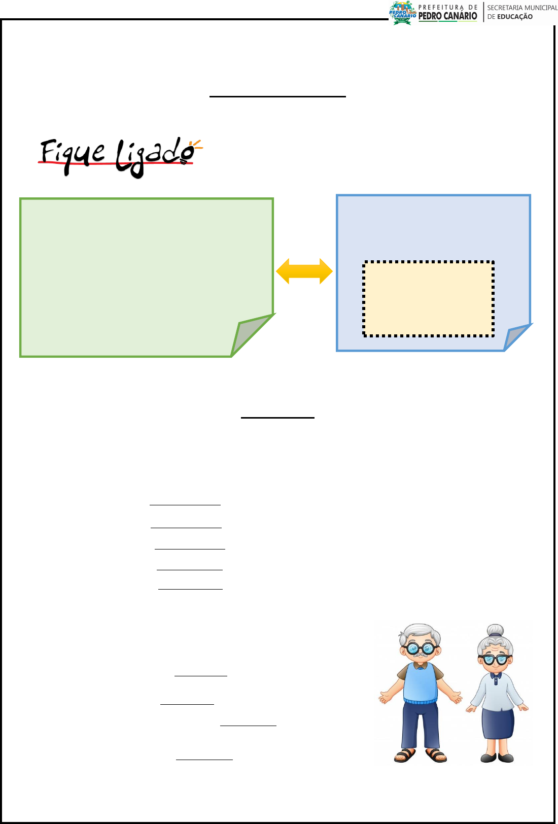 ESCOLA _________________________________________________________________ ALUNO ___________________________________________________________________ LÍNGUA PORTUGUESA ATIVIDADES 1) Complete as frases com uma das palavras dos parênteses. a) A moça é humorada. (bom – bem) b) A moça é humorada. (mau – mal) c) Tenho um coração. (bom – bem) d) João é um jogador. (bom – bem) e) João é um jogador. mau – mal) 2) Complete as frases com Mau ou Mal. a) Este garoto foi nas provas. b) Que menina educada! c) Vou viajar mesmo com o tempo. d) Até agora só vi exemplo. O lobo não é bom; ele é mau. Assim diz a história infantil. Mas veja bem: Ele não é bom, ele é mau. Ele não é do bem; ele é do mal. Para tirar a dúvida é só trocar pelo antônimo. MAU = BOM MAL=BEM MATEMÁTICA 1) De acordo com o calendário, escreva no quadro abaixo os meses do ano de acordo com o número de dias. Agora some os dias dos meses e responda ao que se pede: a) Total de dias do 1° quadro: b) Total de dias do 2° quadro: c) Total de dias do 3° quadro: d) Total da soma de 1°, do 2° e do 3° quadro: e) Esse período de 365 dias corresponde ao: MÊS DE 28 OU 29 DIAS MESES DE 30 DIAS MESES DE 31 DIAS Você precisará de um calendário anual para responder as atividades abaixo. EDUCAÇÃO FÍSICA RESPONDA AS PERGUNTAS E COMPLETE A CRUZADINHA. 1) SOU REDONDA E POSSO SER FEITA DE COURO, PLÁSTICO OU DE PANO. QUEM SOU? 2) DOIS CARTÕES SÃO USADOS NA COBRANÇA DE FALTAS, E UM DELES É O? 3) PENALIDADE CONTRA O JOGADOR? 4) PESSOA RESPONSÁVEL PELO TREINAMENTO DOS JOGADORES? 5) SÉRIE DE TOQUES NA BOLA, SEM QUE O JOGADOR E A BOLA TOQUE O CHÃO? 6) O JUIZ USA PARA ASSIONAR UM FALTA? 7) É JOGADO EM CAMPO, OU NA AREIA, DE QUAL ESPORTE ESTOU FALANDO? 8) JOGADOR CUJA SUA PRINCIPAL IMPORTÂNCIA É A TOTAL DEFESA DO TIME? 9) É OBRIGATORIO O GOLEIRO USAR, PARA DEFENDER A BOLA? 10) OBJETO USADO PARA FAZER O GOL? EI TURMA, ESTA SEMANA VAMOS FAZER UMA REVISÃO DE CONTEÚDO ARTE . VAMOS PRECISAR: VEJA ALGUNS MODELOS ABAIXO: NÓS PODEMOS APROVEITAR MUITAS COISAS, USANDO MATERIAL RECICLADO. VAMOS APRENDER UMA ATIVIDADE COM REVISTA VELHA. VOCÊ PODERÁ CRIAR E INVENTAR COISAS LINDAS.VAMOS LÁ? ESCOLHA UM MODELO OU CRIE A SUA FIGURA, RECORTANDO DA REVISTA UMA FIGURA DE SUA PREFERÊNCIA. COMECE A COLAR EM SEU CADERNO, MODIFICANDO A IMAGEM (PODE DEIXAR ESPAÇOS ENTRE OS PEDAÇOS OU TIRAS E COMPLETAR O DESENHO). *REVISTAS VELHAS, TESOURA, COLA E CADERNO DE ARTE.