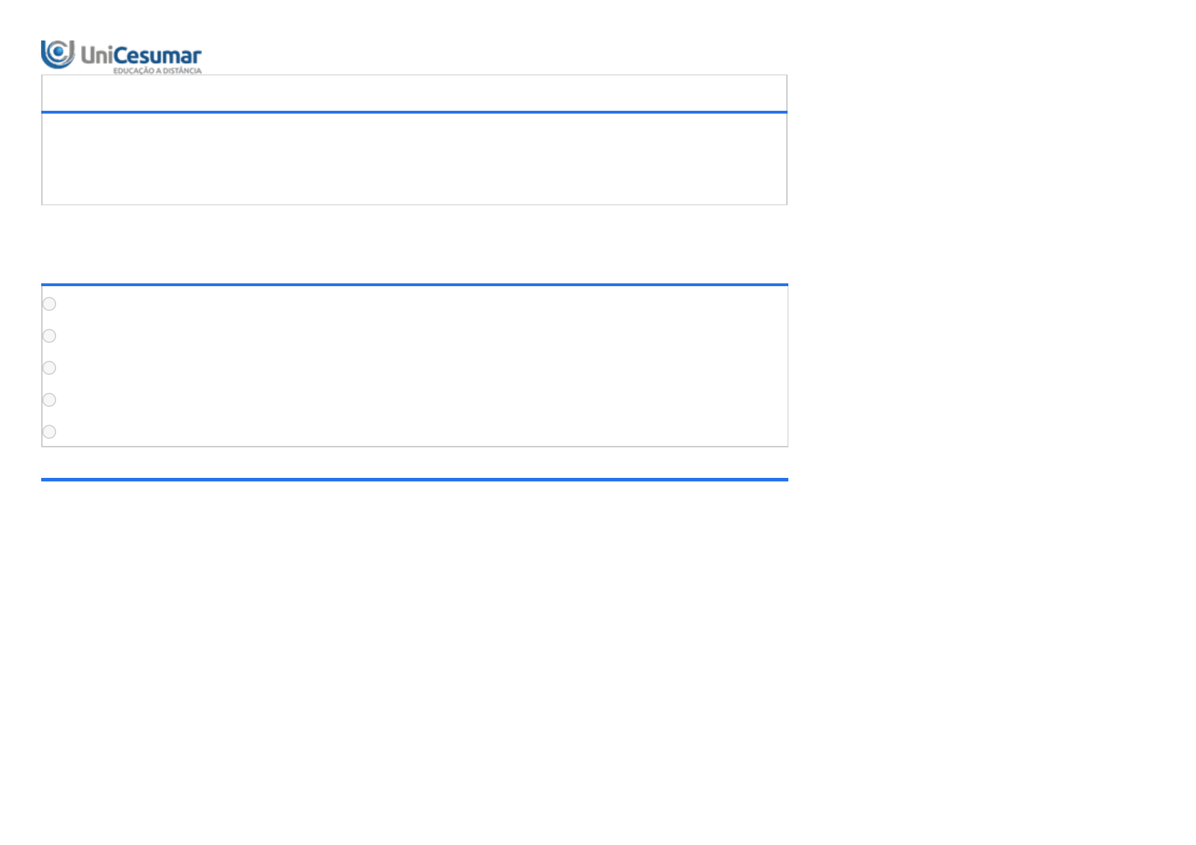 22/11/2022 21:02 Unicesumar - Ensino a Distância about:blank 1/10 ATIVIDADE - SEMANA DE CONHECIMENTOS GERAIS - 54/2022 Período:17/10/2022 08:00 a 20/11/2022 23:59 (Horário de Brasília) Status:ENCERRADO Nota máxima:1,00 Gabarito:Gabarito será liberado no dia 21/11/2022 00:00 (Horário de Brasília) Nota obtida:1,00 Atenção! Questão anulada. ALTERNATIVAS I, apenas. II, apenas. III, apenas. I e II, apenas. I, II e III. 2ª QUESTÃO 22/11/2022 21:02 Unicesumar - Ensino a Distância about:blank 2/10 “Frente uma real Revolução Industrial tecnológica, as empresas estão tendo que se adequar há uma transformação em seus processos estruturais e profissionais. Levando o nome de Indústria 4.0, o impacto dessa revolução vai além da simples digitalização, passando por uma forma cada vez mais complexa de inovação baseada na combinação de várias tecnologias que exigirão das empresas uma nova forma de gerir os seus negócios e processos, introduzindo novos produtos, ajustando as ações de marketing e de distribuição”. MATA, Vanessa et al. Indústria 4.0: a Revolução 4.0 e o Impacto na Mão de Obra. Revista de Ciências Exatas e Tecnologia, v. 13, n. 13, p. 17-22, 2018. Considerando as informações acima, avalie as asserções a seguir e a relação proposta entre elas. I. A revolução 4.0 afeta as relações de trabalho, tanto do aspecto econômico como do aspecto social. O que justifica isso é a adoção de inteligências artificiais, como robôs, que invadiram ambientes de trabalho. Apesar disso, com o advento da revolução 4.0, não há risco de extinguir-se cargos e funções de trabalho. PORQUE II. Na revolução 4.0, apesar de ocorrer a substituição do trabalho humano pelo trabalho de inteligência artificial, o trabalho humano possui uma maior relação custo benefício, ou seja, mais eficácia, produtividade e menor custo se comparado com o trabalho de inteligência artificial. A respeito dessas asserções, assinale a opção correta. ALTERNATIVAS As asserções I e II são proposições verdadeiras, mas a II não é uma justificativa correta da I. As asserções I e II são proposições verdadeiras e a II é uma justificativa correta da I. A asserção I é uma proposição falsa e a II é uma proposição verdadeira. A asserção I é uma proposição verdadeira e a II é uma proposição falsa. As asserções I e II são proposições falsas. 3ª QUESTÃO 22/11/2022 21:02 Unicesumar - Ensino a Distância about:blank 3/10 A telemedicina é um processo avançado para monitoramento de pacientes, troca de informações médicas e análise de resultados de diferentes exames, os quais são avaliados e entregues de forma digital, dando apoio para a medicina tradicional. Embora a telemedicina seja um segmento que já estava em crescimento, pela sua acessibilidade e praticidade atrelado a tecnologia que envolve esse segmento e o elevado número de pessoas que utilizam o celular e os outros meios para a resolução de situações simples do cotidiano, a pandemia do coronavírus alavancou esse setor de forma significativa, levando em consideração o período de isolamento e quarentena propostos pelos governos estaduais. LIMA, I. S.; OLIVEIRA, E. C.; CARRARO, N. C.; ENTELMANN, F. A. Avanço da telemedicina no Brasil no período de pandemia da COVID-19: uma revisão sistemática da literatura. Brazilian Journal of Health Review, Curitiba, v. 5, n.3, p.10505-10525, 2022. DOI:10.34119/bjhrv5n3-214. https://brazilianjournals.com/ojs/index.php/BJHR/article/view/48741 Tendo em vista o tema apresentado, analise as afirmações a seguir: I. A telemedicina tem sido uma ferramenta bem-sucedida, principal inovação tecnológica de amplo alcance implementada durante a pandemia e não se tem a insegurança jurídica sobre o tema entre os profissionais de saúde e as instituições envolvidas, pois devido a pandemia a legislação já está estabelecida em todo o país. II. A literatura tem apontado para um avanço do segmento da telemedicina no país. Em contraponto, nota- se que esse segmento já apresentava evolução e crescimento, fato que pode ser sustentado pela ampliação do acesso a tecnologias por parte da população. Não obstante, a pandemia de Covid-19 impulsionou o processo de aceitação das práticas de atendimento remoto, fato constatado pela regulamentação jurídico- legal. III. Segundo pesquisadores, até o ano 2000, o governo brasileiro adotou apenas medidas tímidas e pontuais em relação a telemedicina no país; os próprios profissionais diretamente ligados ao setor mostravam-se céticos com relação a essa nova configuração. Não obstante, o cenário apresentava-se favorável com fortes indicadores de que haveria avanços nesse setor num futuro próximo, pelas instituições públicas, privadas, parcerias público-privadas, especialmente no estado de São Paulo. É correto o que se afirma em: 22/11/2022 21:02 Unicesumar - Ensino a Distância about:blank 4/10 ALTERNATIVAS I, apenas. III, apenas. I e II, apenas II e III, apenas. I, II e III. 4ª QUESTÃO Os 17 Objetivos de Desenvolvimento Sustentável divulgados a partir da Agenda 2030 são uma indispensável ferramenta de inclusão sustentável da sociedade, posto que estabelecem diretrizes claras que favorecem a erradicação da pobreza e a promoção de uma vida digna para todos os habitantes do planeta. MACHADO. F. V. A mutação da empresa e do mundo do trabalho sob o enfoque do trabalho decente e do crescimento econômico: uma abordagem sobre o trabalho na Economia de Plataforma. Rev. Esc. Jud. TRT4, Porto Alegre, v. 3, n. 6, p. 187-212, jul./dez. 2021. (Adaptado) Diante desse contexto, analise as afirmativas abaixo e identifique as que representam alguns desses objetivos. I. Fome Zero e Agricultura Sustentável, incluindo a segurança alimentar e melhoria da nutrição. II. Igualdade de Gênero, inclusive empoderando o feminino. III. Redução de Desigualdades, em todos os países e ent