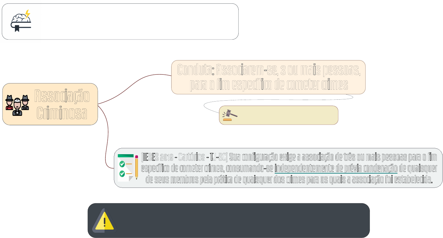 DECORANDO A LEI SECA Direito Penal - Crimes em Espécie - Associação Criminosa - Art. 288, CP Reclusão de 1 a 3 anos Conduta: Associarem-se, 3 ou mais pessoas, para o fim específico de cometer crimes A pena aumenta-se até a metade se a associação é armada ou se houver a participação de criança ou adolescente (IESES 2019 - Cartórios - TJ-SC) Sua configuração exige a associação de três ou mais pessoas para o fim específico de cometer crimes, consumando-se independentemente de prévia condenação de quaisquer de seus membros pela prática de quaisquer dos crimes para os quais a associação foi estabelecida. Associação Criminosa Jerusa ELIEZER SANTOS PEREIRA jerusa1@gmail.com 01760000116 Jerusa ELIEZER SANTOS PEREIRA jerusa1@gmail.com 01760000116 DECORANDO A LEI SECA Direito Penal - Crimes em Espécie - Associação Criminosa - Art. 299, CP omitir, em documento público ou particular, declaração que dele devia constar, ou nele inserir ou fazer inserir declaração falsa ou diversa da que devia ser escrita, com o fim de prejudicar direito, criar obrigação ou alterar a verdade sobre fato juridicamente relevante. se o agente é funcionário público, e comete o crime prevalecendo-se do cargo, ou se a falsificação ou alteração é de assentamento de registro civil, aumenta-se a pena de sexta parte Falsidade Ideológica 5 anos, e multa se o documento é público 3 anos, e multa se o documento é particular Reclusão de 1 a (FCC 2018) Pratica o crime de falsidade ideológica aquele que omite, em documento particular, declaração que dele devia constar com o fim de criar uma obrigação. Jerusa ELIEZER SANTOS PEREIRA jerusa1@gmail.com 01760000116