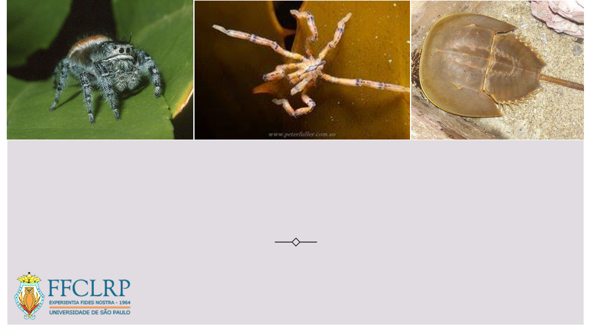 FILO ARTHROPODA Subfilo Chelicerata Zoologia II Docentes: Felipe B. Ribeiro e Régis A. Pescinelli file:///D:/Photos/19phidippus14.jpg file:///D:/Photos/19phidippus14.jpg Chelicerata Cerca de 113.000 espécies descritas; Origem: mares do Cambriano Divisão do corpo: Cefalotórax ou prossoma. Abdome ou opistossoma. Antenas ausentes (deutocérebro ausente). file:///D:/Photos/19broadmite02.jpg file:///D:/Photos/19broadmite02.jpg Prossoma Acron + 7 segmentos. Com 6 pares de apêndices unirramados: 1º par: QUELÍCERAS (2º segmento) com 2 ou 3 artículos, os dois distais formam uma quela ou pinça. 2º par: PEDIPALPOS (3º segmento) com várias funções, inclusive sensoriais. + 4 pares de pernas locomotores. Hierarquia Filogenética dos Chelicerata: Chelicerata Pycnogonida Euchelicerata Xiphosura Arachnida PYCNOGONIDA Pycnogonida ou Pantopoda • (Grego: pyknós = grosso, nodoso; góny = joelhos); • Cerca de 1.368 espécies marinhas, conhecidas como aranhas-do- mar. Pelo menos 65 spp. já registradas para o Brasil. (Lucena & Christorffessen, 2017). Pycnogonida • Em todos os oceanos, do Ártico até a Antártida, desde a faixa entemarés até 7.000 metros de profundidade; • Maioria bentônicos, alguns pelágicos, poucos intersticiais. • Algumas formas parasitas ou comensais. Pycnogonida • Em todos os oceanos, do Ártico até a Antártida, desde a faixa entemarés até 7.000 metros de profundidade; • Maioria bentônicos, alguns pelágicos, poucos intersticiais; • De 1 mm até 70 cm; • Algumas formas parasitas ou comensais; • Um par de quelíceras ou quelíforos queladas para manipulação do alimento; • Um par de pedipalpos (palpos) (às vezes ausentes) utilizados como apêndices sensoriais, na alimentação e na limpeza. Apêndices • Um par de pernas ovígeras utilizadas na limpeza, manejo de alimento, corte, acasalamento e, no macho, para transportar (incubar) os ovos. Apresentam-se pouco desenvolvidas ou ausentes nas fêmeas de algumas espécies. Apêndices 9 artículos Pendurar e afundar Locomoção Proboscide: sucção Intestino: cecos que penetram nas pernas Alimentação e Digestão Alimentação e Digestão • Gonocóricos (Fêmeas com pernas ovígeras vestigiais ou ausentes); • Fertilização externa; • Gônadas no tronco, com ramificações para às pernas; • Múltiplas aberturas reprodutivas nos lados ventrais das coxas do 2 e 4 pares de pernas (machos) todas as pernas (fêmeas). Reprodução - Dióicos; Dimorfismo sexual • ♂ Pernas ovígeras • ♀ Fêmures ampliados - Larva protonymphon: adição de segmentos e artículos nas ecdises; Reprodução • Estrutura do cérebro, natureza dos órgãos sensoriais, presença de quelíceras e pedipalpos, ausência de antena e sistema hemal – justificativas para agrupar os pycnogonidas entre os quelicerados; • Mas o relacionamento exato com os aracnídeos e os xifosuros é incerto – Presença de múltiplos gonóporos, pernas ovígeras, tronco segmentado e pares adicionais de pernas locomotoras não tem equivalentes nas outras classes. Filogenia Xiphosura Marinhos. Ocupam águas costeiras rasas de fundo mole. Desde o Cambriano: muito abundantes durante o Siluriano e Devoniano. Xiphosura Xiphosura Caranguejos-ferradura “Horseshoe crabs” 4 ou 5 espécies, todos da família Limulidae. Até 75 cm. Distribuição geográfica das espécies de Xiphosura viventes: Cefalotórax Vista Dorsal: Carapaça lisa e convexa na parte superior, com os ângulos laterais posteriores prolongados para trás, até quase a metade do comprimento do abdome. Um par de cristas laterais, cada uma com um olho composto grande. Uma crista mediana com um olho simples em cada lado. Xiphosura Vista Ventral: 6 pares de apêndices: 1º) Quelíceras. 2º) Pedipalpos. 3º, 4º e 5º) Apêndices quelados. 6º) Apêndices não quelados. Quilários. Cefalotórax Pedipalpos Quelados. Iguais aos três seguintes pares de apêndices nas fêmeas. Modificado para segurar as fêmeas nos machos (com ganchos). Xiphosura macho Xiphosura fêmea Onívoros: moluscos, poliquetas, algas bentônicas, etc. Ingerem alimento sólido (exceção entre os Chelicerata viventes). Alimentação Machos, menores que as fêmeas, sobem sobre estas em áreas rasas de baías e estuários. As fêmeas liberam de 2.000 à 30.000 ovos que são fertilizados externamente durante deposição. Reprodução - Larva trilobita - Maturidade sexual alcançada após 9 a 12 anos; - Longevidade pode ser de 19 anos. Reprodução Curiosidades - Os tecidos dos xifosuros são potencialmente letais para seus predadores; - Altas concentrações de saxitoxinas. Curiosidades - Sangue azul e rico em Cobre e com um agente coagulante especial (Limulus amebocyte lysate). E U RY P T E R I D A - F Ó S S E I S Eurypterida - Fósseis Origem marinha; depois ocuparam água salobra e doce e talvez tenham existido formas anfíbias. Predadores Eurypterida - Fósseis Maiores artrópodos de todos os tempos (3m); Alguns autores consideram como subclasse de Merostomata. Eurypterida - Fósseis Eurypterida - Fósseis Corpo composto de 2 tagmas: Cefalotórax e abdome; Cefalotórax com 6 pares de apêndices: - primeiro uma pequena quelícera; - último um par de grandes remos ou pernas locomotoras em algumas espécies. ARACHNIDA ARACHNIDA Maior grupo de Chelicerata: mais de 100.000 espécies já descritas (+ de 1 milhão no total?). ARACHNIDA Único táxon terrestre de Chelicerata (alguns retornaram secundariamente ao ambiente aquático). ARACHNIDA Adaptações ao ambiente terrestre: • Impermeabilização da cutícula; • Transformação das brânquias foliáceas em pulmões foliáceos ou traquéias; • Desenvolvimento de túbulos de Malpighi; • Apêndices adaptados a locomoção terrestre; • Órgãos sensoriais para recepção de estímulos no ar; • Fertilização interna, etc. Morfologia Externa Arachnida Cefalotórax (prossoma) + abdome (opistossoma) (fundidos nos Acarina). Prossoma e Opistossoma pod