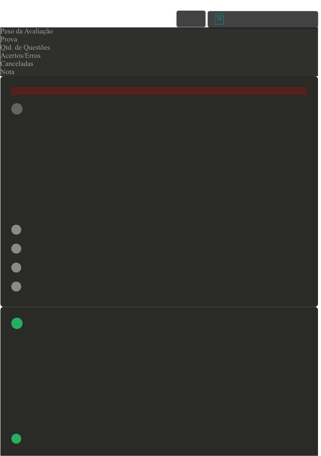 Prova Impressa GABARITO | Avaliação I - Individual (Cod.:824073) Peso da Avaliação 1,50 Prova 62216326 Qtd. de Questões 10 Acertos/Erros 7/2 Canceladas 1 Nota 8,00 Atenção: Esta questão foi cancelada, porém a pontuação foi considerada. A paracoccidioidomicose é uma micose sistêmica originária da América Latina, sendo a maior incidência registrada em países da América do Sul. No Brasil, a maioria dos casos tem sido relatado nas regiões Sul, Sudeste e Centro-Oeste. A paracoccidioidomicose tem caráter endêmico entre as populações da zona rural, acometendo principalmente indivíduos do sexo masculino. Sobre a paracoccidioidomicose, classifique V para as sentenças verdadeiras e F para as falsas: ( ) O agente etiológico da doença paracoccidioidomicose é o fungo Paracoccidioides brasiliensis. ( ) No Brasil estão registrados mais de 3.000 casos de paracoccidioidomicose. ( ) Por apresentar um caráter endêmico entre a população da zona rural, é caracterizada como uma doença relacionada ao trabalho. ( ) A infecção dá-se por inalação de conídios em poeiras, ambientes úmidos e quentes, com formação de foco primário pulmonar (assintomático). Assinale a alternativa que apresenta a sequência CORRETA: A V - F - F - F. B V - V - V - F. C V - F - V - V. D F - F - V - V. A silicose é uma doença típica de ambiente de trabalho insalubre, causada pela inalação de partículas finas de sílica e caracterizada por causar lesões no pulmão. Diante dessa afirmativa, analise as sentenças a seguir: I- As consequências da inalação dessa substância causam limite da capacidade respiratória. II- A silicose não é tóxica para o organismo humano. III- Essa doença geralmente atinge mineiros que trabalham nos túneis e galerias de minas. IV- Esta doença acarreta prejuízos de saúde somente ao pulmão, não sobrecarregando outras funções orgânicas. Agora, assinale a alternativa CORRETA: A As sentenças I e II estão corretas. B As sentenças I e III estão corretas. VOLTAR A+ Alterar modo de visualização 1 2 29/05/24, 14:11 Avaliação I - Individual about:blank 1/6 C As sentenças III e IV estão corretas. D As sentenças II e III estão corretas. Trabalho é a atividade fundamental do ser humano e determina, junto a outros fatores, os níveis de saúde e os tipos de doenças a que cada um está sujeito. Dessa forma, sobre a denominação de doenças relacionadas ao trabalho, assinale a alternativa CORRETA: A Doenças crônicas. B Doenças infecciosas. C Doenças ocupacionais. D Doenças genéticas. Doença febril causada pelo flavivírus com quadro clínico variável, desde formas inaparentes até as graves e fatais. Sua transmissão ocorre pela picada dos mosquitos infectados. Período de incubação de três a seis dias, após a picada do mosquito infectado. Assinale a alternativa CORRETA que apresenta uma doença com tais características: A Leptospirose. B Febre amarela. C Malária. D Dengue. 3 4 29/05/24, 14:11 Avaliação I - Individual about:blank 2/6 Biossegurança pode ser definida como o conjunto de ações voltado para a prevenção, proteção do trabalhador, com o intuito de minimizar riscos em segmentos ambientais e biotecnológicos. Sobre as competências estabelecidas pela Resolução RDC nº 1, da Agência Nacional de Saúde, classifique V para as sentenças verdadeiras e F para as falsas: ( ) Estabelecer critérios de aferição e controle da qualidade dos serviços oferecidos pelas operadoras de planos privados de assistência à saúde, sejam eles próprios, referenciados, contratados ou conveniados. ( ) Expedir normas e padrões para o envio de informações de natureza econômico–financeira pelas operadoras, com vistas à homologação de reajustes e revisões. ( ) Proceder a integração de informações com os bancos de dados do SUS. ( ) Requisitar o fornecimento de quaisquer informações das operadoras de planos privados de assistência à saúde, bem como da rede prestadora de serviços a elas credenciados. Agora, assinale a alternativa que apresenta a sequência CORRETA: A V - V - F - F. B F - V - F - V. C V - V - V - V. D V - F - F - F. Doenças relacionadas ao trabalho podem ser consideradas um conjunto de danos ou agravos que incidem sobre a saúde dos trabalhadores, causados, desencadeados ou agravados por fatores de risco presentes nos locais de trabalho. Assim sendo, quanto aos grupos de doenças relacionadas ao trabalho, associe os itens, utilizando o código a seguir: I- Grupo I. 5 Revisar Conteúdo do Livro 6 29/05/24, 14:11 Avaliação I - Individual about:blank 3/6 II- Grupo II. III- Grupo III. ( ) Intoxicação por chumbo; silicose. ( ) Doença coronariana; doença do aparelho locomotor; varizes nos membros inferiores. ( ) Bronquite crônica; dermatite de contato alérgica; asma; doenças mentais. Agora, assinale a alternativa que apresenta a sequência CORRETA: A I - II - III. B III - I - II. C III - II - I. D I - III - II. Muitos trabalhadores adoecem ou morrem por motivos relacionados ao trabalho, alguns trabalham sob condições insalubres, outros trabalham desrespeitando as normas e não utilizam EPI nem EPC. As doenças relacionadas ao trabalho são conhecidas por doenças ocupacionais e estão aumentando. Com relação às doenças ocupacionais, analise as sentenças a seguir: I- Surgem devido ao risco que determinadas atividades oferecem ao trabalhador. II- Podem ocasionar afastamentos temporários, repetitivos e definitivos. III- Não representam riscos à carreira do trabalhador. IV- São moléstias que muitas vezes aparecem de forma lenta e progressiva. Agora, assinale a alternativa CORRETA: A As sentenças III e IV estão corretas. B As sentenças I, II e IV estão corretas. C As sentenças I, II e III estão corretas. D As sentenças II, III e IV estão corretas. 7 29/05/24, 14:11 Avaliação I - Individual about:blank 4/6 Em 2002, foi criada a Comissão de Biossegurança em Saúde (CBS) vinculada ao Mi