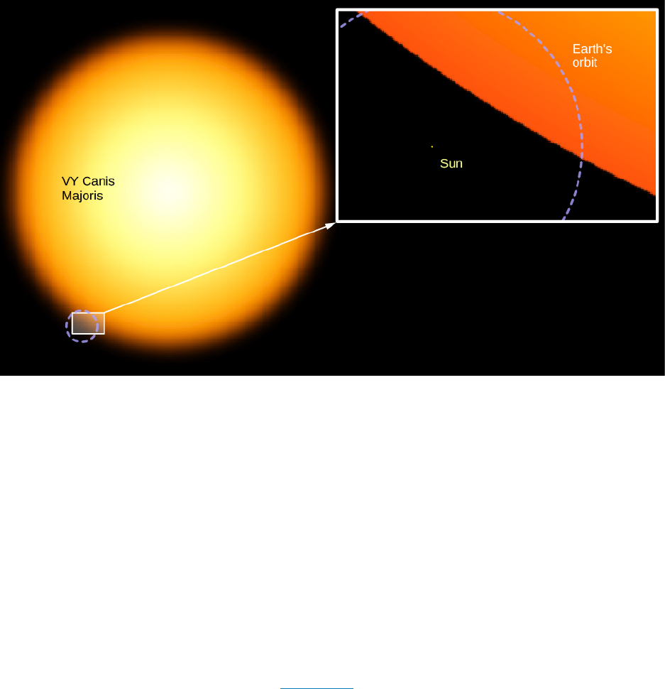 Figure 18.16 The Sun and a Supergiant. Here you see how small the Sun looks in comparison to one of the largest known stars: VY Canis Majoris, a supergiant. In contrast, the very common red, cool, low-luminosity stars at the lower end of the main sequence are much smaller and more compact than the Sun. An example of such a red dwarf is Ross 614B, with a surface temperature of 2700 K and only 1/2000 of the Sun’s luminosity. We call such a star a dwarf because its diameter is only 1/10 that of the Sun. A star with such a low luminosity also has a low mass (about 1/12 that of the Sun). This combination of mass and diameter means that it is so compressed that the star has an average density about 80 times that of the Sun. Its density must be higher, in fact, than that of any known solid found on the surface of Earth. (Despite this, the star is made of gas throughout because its center is so hot.) The faint, red, main-sequence stars are not the stars of the most extreme densities, however. The white dwarfs, at the lower-left corner of the H–R diagram, have densities many times greater still. The White Dwarfs The first white dwarf star was detected in 1862. Called Sirius B, it forms a binary system with Sirius A, the brightest-appearing star in the sky. It eluded discovery and analysis for a long time because its faint light tends to be lost in the glare of nearby Sirius A (Figure 18.17). (Since Sirius is often called the Dog Star—being the brightest star in the constellation of Canis Major, the big dog—Sirius B is sometimes nicknamed the Pup.) 608 18 • The Stars: A Celestial Census Access for free at openstax.org Figure 18.17 Two Views of Sirius and Its White Dwarf Companion. (a) The (visible light) image, taken with the Hubble Space Telescope, shows bright Sirius A, and, below it and off to its left, faint Sirius B. (b) This image of the Sirius star system was taken with the Chandra X-Ray Telescope. Now, the bright object is the white dwarf companion, Sirius B. Sirius A is the faint object above it; what we are seeing from Sirius is probably not actually X-ray radiation but rather ultraviolet light that has leaked into the detector. Note that the ultraviolet intensities of these two objects are completely reversed from the situation in visible light because Sirius B is hotter and emits more higher-frequency radiation. (credit a: modification of work by NASA, H.E. Bond and E. Nelan (Space Telescope Science Institute), M. Barstow and M. Burleigh (University of Leicester) and J.B. Holberg (University of Arizona); credit b: modification of work by NASA/SAO/CXC) We have now found thousands of white dwarfs. Table 18.1 shows that about 7% of the true stars (spectral types O–M) in our local neighborhood are white dwarfs. A good example of a typical white dwarf is the nearby star 40 Eridani B. Its surface temperature is a relatively hot 12,000 K, but its luminosity is only 1/275 LSun. Calculations show that its radius is only 1.4% of the Sun’s, or about the same as that of Earth, and its volume is 2.5 × 10–6 that of the Sun. Its mass, however, is 0.57 times the Sun’s mass, just a little more than half. To fit such a substantial mass into so tiny a volume, the star’s density must be about 210,000 times the density of the Sun, or more than 300,000 g/cm3. A teaspoonful of this material would have a mass of some 1.6 tons! At such enormous densities, matter cannot exist in its usual state; we will examine the particular behavior of this type of matter in The Death of Stars. For now, we just note that white dwarfs are dying stars, reaching the end of their productive lives and ready for their stories to be over. The British astrophysicist (and science popularizer) Arthur Eddington (1882–1944) described the first known white dwarf this way: The message of the companion of Sirius, when decoded, ran: “I am composed of material three thousand times denser than anything you’ve ever come across. A ton of my material would be a little nugget you could put in a matchbox.” What reply could one make to something like that? Well, the reply most of us made in 1914 was, “Shut up; don’t talk nonsense.” Today, however, astronomers not only accept that stars as dense as white dwarfs exist but (as we will see) have found even denser and stranger objects in their quest to understand the evolution of different types of stars. Use this interactive H-R diagram (https://openstax.org/l/30interhr) to explore the sizes of stars based on their placement. Overlay the closest stars and the brightest stars, and consider where they lie on the figure. How many stars are among both the closest and brightest stars? LINK TO LEARNING 18.4 • The H–R Diagram 609 https://openstax.org/l/30interhr Key Terms binary stars two stars that revolve about each other brown dwarf an object intermediate in size between a planet and a star; the approximate mass range is from about 1/100 of the mass of the Sun up to the lower mass limit for self-sustaining nuclear reactions, which is about 1/12 the mass of the Sun eclipsing binary a binary star in which the plane of revolution of the two stars is nearly edge-on to our line of sight, so that the light of one star is periodically diminished by the other passing in front of it H–R diagram (Hertzsprung–Russell diagram) a plot of luminosity against surface temperature (or spectral type) for a group of stars main sequence a sequence of stars on the Hertzsprung–Russell diagram, containing the majority of stars, that runs diagonally from the upper left to the lower right mass-luminosity relation the observed relation between the masses and luminosities of many (90% of all) stars selection effect the selection of sample data in a nonrandom way, causing the sample data to be unrepresentative of the entire data set spectroscopic binary a binary star in which the components are not resolved but whose binary nature is indicated by periodic variations in radial velocity, indic