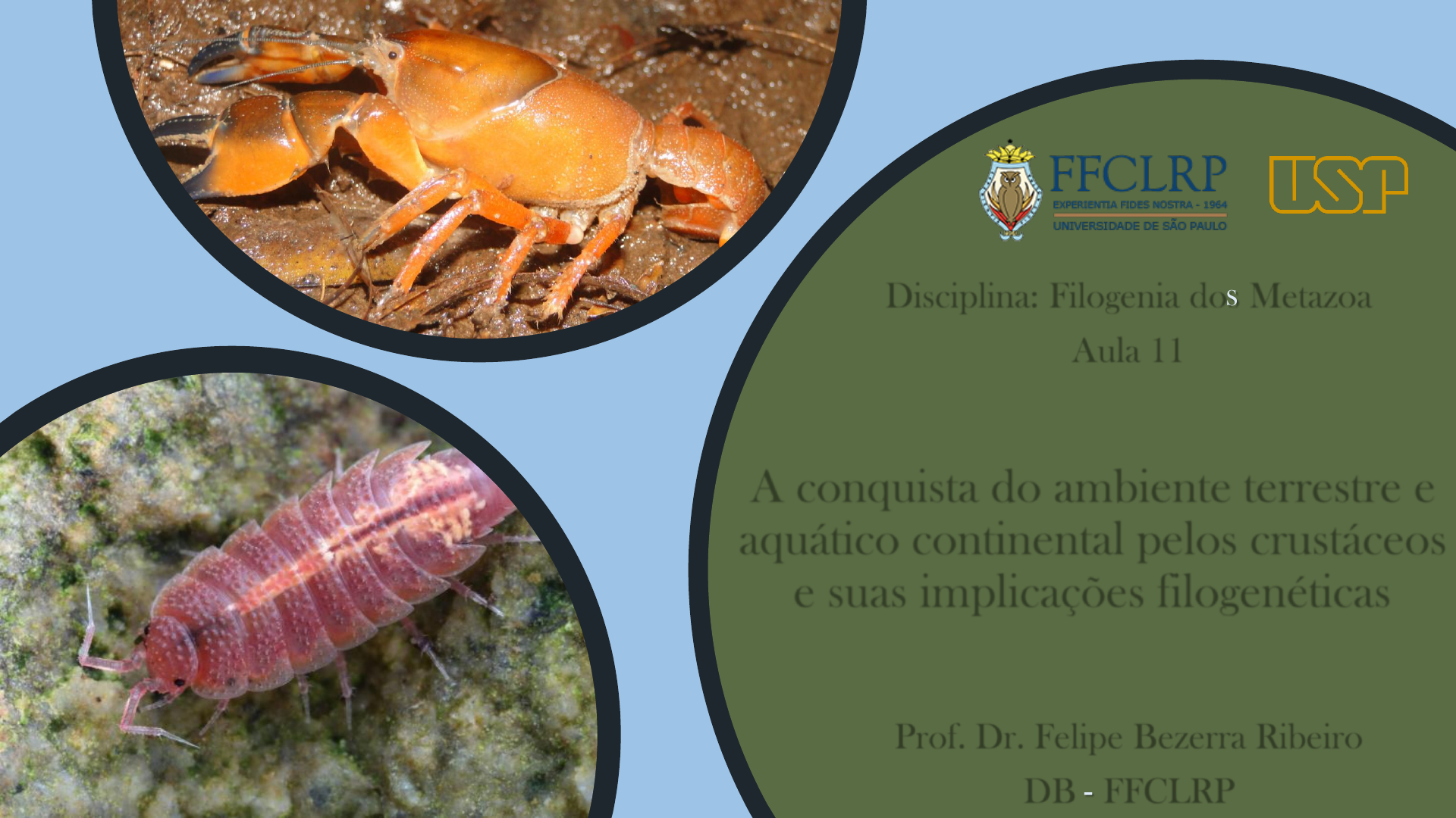 A conquista do ambiente terrestre e aquático continental pelos crustáceos e suas implicações filogenéticas Disciplina: Filogenia dos Metazoa Aula 11 Prof. Dr. Felipe Bezerra Ribeiro DB - FFCLRP Habitats O ambiente dulcícola Hyalella azteca (Amphipoda) Parastacus (Astacidea) Macrobrachium (Caridea) A maioria das espécies de eglídeos vivem nos leitos de arroios, rios e lagos, sob pedras no substrato, em águas límpidas e bem oxigenadas. Também podem ser encontrados em cavernas e ambientes límnicos de altitude O ambiente terrestre Decapoda 5 Amphipoda Isopoda Talitridae Oniscidea Anomura Astacidea Brachyura Um pouco de história... • Único grupo de artrópodes no mar, onde sua radiação foi tão extensiva como a dos outros grupos de artrópodes terrestres; • Anfípodos marinhos x insetos; • Colonização terrestre mais recente que os outros grupos de artrópodos; • Nenhum fóssil de crustáceo terrestre foi encontrado datando de antes do Terciário (60Mia); (Hay, 1987; Alastair & Araujo, 2015) Um pouco de história ... • Embora aproximadamente 85% de todos os crustáceos sejam marinhos, muitos outros são adaptados a viver completamente em habitats dulcícolas ou ambientes de transição; • Esse processo de adaptação de crustáceos a habitats aquáticos continentais já dura cerca de 65 milhões anos (Babcock et al. 1998); • O que levou a essas diversas espécies não marinhas a se adaptarem a novas condições ambientais? • A ascensão das Angiospermas no Cretáceo (100 Mia) e o desenvolvimento subsequente de folhas decíduas e largas podem ter fornecido as condições necessárias para a sobrevivência de crustáceos (e moluscos) na terra, fornecendo um substrato no qual minerais, especialmente cálcio, são depositados na superfície do solo pela queda de folhas. Escala de adaptações ao ambiente terrestre em crustáceos T1 Midlittoral T2 T3 T5T4 Powers & Bliss (1983) Richardson & Araujo (2015) High Littoral Supralittoral Extralittoral Terrestrial Rotas para a terra • Evolução a partir de ancestrais litorâneos (Oniscidea e Talitridae e alguns decápodos); • Evolução a partir de ambientes dulcícolas: decápodos (lagostins) • Hábito tipicamente criptozóico; • Modificadores de substrato ou não- modificadores de substrato; Habitats e micro-habitats Metopaulias depressus caranguejo das bromélias Kingsleya attenboroughi – caranguejo do semi-árido Ligia Tylos Atlantoscia Porcellio Armadillidium Hemilepistus "And the winner is..." Courtesy of the Invertebrate Zoology Multimedia Lab Assistant, 3-disc CD-ROM set on invertebrates developed by T. Carefoot and C. Young at the Department of Zoology, University of British Columbia http://www.uni-kiel.de/zoologie/institut/limnologie/isopoda.htm Habitat e hábitos escavadores - Lagostins Riachos Banhados Áreas temporariamente inundadas Matas Paludosas K.M. Gomes Ribeiro et al. (2016) Vegas ou Hualves Rudolph (2015) Ribeiro et al. (2016) Planícies de inundação Habitat e hábitos escavadores Noro & Buckup (2010) K.M. Gomes Ribeiro et al. (2017) Ribeiro et al. (2020) Abouessa et al. (2015) Estação seca Estação chuvosa • Implicações na morfologia das espécies: “Open water species” Euastacus “Semi-terrestrial burrowing crayfish” Parastacus defossus Engaewa Engaeus Habitat e hábitos escavadores Adaptações morfológicas • Redução e modificações de pleópodos e brânquias; • Redução de antenas; • Fortalecimento geral da cutícula; • Desenvolvimento de estruturas e estratégias para obter e conservar água e mudanças em direção à eficiência reprodutiva. PULMÕES PLEOPODAIS - TATUZINHOS invaginações ramificadas e revestidas por cutícula fina Atlantoscia Balloniscus Periscyphis BRÂNQUIAS COXAIS - ANFÍPODOS Orchestia MODIFICAÇÕES NA CÂMARA BRANQUIAL + estruturas acessórias - DECÁPODOS Cardisoma Gecarcinus Saco pericárdico médio Saco pericárdico grande e epitélio altamente vascularizado Saco pericárdico pequeno, necessita dos tufos de cerdas Ocypode Scopimera Discos membranosos: trocas gasosas ANTENA 1 ANTENA 2 Alimentação • Amplamente detritívoros e depositívoros; • Carnívoros, herbívoros, filtradores; • Bactérias endossimbiontes; • Moinho gástrico em decápodos; • Coprofagia em tatuzinhos; Lagostins • Onívoros oportunistas “Dieta da sopa” • A dieta consiste principalmente de detritos de origem vegetal • Peças bucais + Pereiópodos. Noro (2007) Foram analisados conteúdo estomacal de 175 indivíduos de P. defossus. Noro (2007) Verão Outono Inverno Primavera Origem animal 6,09% 0,63% 1,21% 1,42% Origem vegetal 36,68% 48,7% 55,58% 48,33% MOINHO GÁSTRICO: MACERAÇÃO DO ALIMENTO NO ESTÔMAGO Estômag o pilórico Estômago pilórico Estômago cardíaco elementos esqueléticos calcificados + conjunto de músculos estriados quebrar e moer grandes partículas de alimento (Lima-Gomes, 2013). (Loureiro et al., 2019). (Cassel et al. In prep). Grupos ecomorfológicos Grupos ecomorfológicos dos isópodos terrestres proposto por Schmallfuss (1984) Runners Creepers Clingers Rollers Spiny forms Foto: Gustavo Graciolli Locomoção http://en.wikibooks.org/wiki/Image:Armadillidium_vulgare_001.jpg http://en.wikibooks.org/wiki/Image:Armadillidium_vulgare_001.jpg Flexão do abdome: “Tail-flip” Fisiologia • Água e balanço iônico - Sistema condutor de água: anfípodos talitrídeos e tatuzinhos; - Presença de cera na cutícula; - Capacidade volvacional; - Decápodos com tegumento relativamente impermeável; Fisiologia • Muda - Dependência do cálcio; - Mecanismos de armazenamento de cálcio: gastrólitos, placas de cálcio e concreções nos cecos digestivos; - Consumo da exúvia; Ainda no estágio de pré-muda... Reaborção dos nutrientes do exoesquelo Placas de cálcio Gastrólitos Armazenamento de Cálcio MUDA EM DUAS ETAPAS Porcellio scaber Indicativo de muda: placas de cálcio Balloniscus sellowii Fisiologia • Excreção de Ni