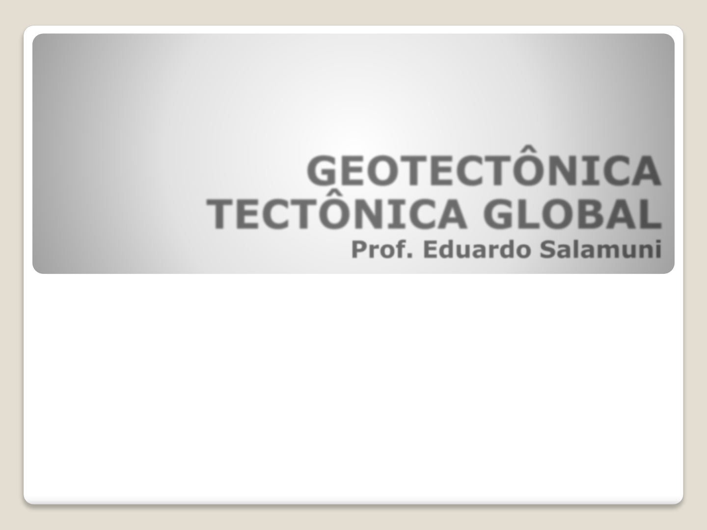 AULA 3: O INTERIOR DA TERRA E A LITOSFERA GEOTECTÔNICA TECTÔNICA GLOBAL Prof. Eduardo Salamuni SUMÁRIO SUBDIVISÃO DO PLANETA ELEMENTOS DA CROSTA OCEÂNICA ELEMENTOS DA CROSTA CONTINENTAL MOVIMENTOS TECTÔNICOS GLOBAIS CICLOS TECTÔNICOS SUBDIVISÃO DO PLANETA O interior da Terra é dividido da seguinte forma: (a) Núcleo: interno (sólido) e núcleo externo (líquido), ambos compostos por Fe-Ni. (b) Manto: sólido, composto por silicatos de Fe-Mg. O núcleo externo e o manto inferior estão separados pela Descontinuidade de Gutenberg. (c) Litosfera: capa rígida consolidada da Terra composta pela crosta (Continental e Oceânica) e parte do manto superior, apresenta viscosidade da ordem da 1020-21 Pa.s e não transmite calor por convecção sendo fria. Obs: Crosta: faz parte da litosfera, é composta por rochas ígneas basálticas até graníticas, rochas sedimentares e/ou os equivalentes metamórficos destes dois conjuntos (em grande parte são alumino-silicatos sódicos, potássicos e cálcicos). (d) Astenosfera: situa-se abaixo da litosfera, inclui parte do manto superior e da zona de transição (entre mantos superior e inferior), apresenta comportamento plástico e transmite calor por convecção (e) Tectosfera: parte da Terra envolvida nos processos tectônicos, inclui a litosfera e parte superior da astenosfera. Estrutura interna da Terra: modelo clássico em camadas concêntricas, obtido por meio de velocidades de ondas sísmicas. Detalhes a respeito do Manto • Embora não existam diferenças marcantes nem descontinuidades óbvias no seu interior, o manto pode ser dividido em duas camadas: (a) manto superior → da descontinuidade de Moho até 650 km de profundidade. O Manto Superior é marcado pelo comportamento dúctil-rúptil indicado pela sismicidade e por poucos refletores na sísmica de reflexão. (b) manto inferior → de 650 km de profundidade até a descontinuidade de Gutenberg (limite externo do núcleo, entre 2.700 e 2.890 km de profundidade). Descontinuidade de Conrad Descontinuidade de Wiechert-Lehmann-Jeffreys Composição do Manto Superior (% em peso) Elemento Teor Composto Teor O 44,8 Si 21,5 SiO2 46 Mg 22,8 MgO 37,8 Fe 5,8 FeO 7,5 Al 2,2 Al2O3 4,2 Ca 2,3 CaO 3,2 Na 0,3 Na2O 0,4 K 0,03 K2O 0,04 Total 99,7 Total 99,1 • O incremento do gradiente geotérmico na crosta é de 20 a 30oC/Km (nas partes mais internas do Planeta este incremento é mais baixo). Há, no entanto, fontes de calor de diferentes naturezas. • O fluxo térmico resulta em aumento de temperatura e envolve o ciclo convectivo de materiais no núcleo externo e no manto sólido. • A convecção no núcleo pode transportar calor até o manto inferior, onde é levado até a superfície em um diferenciado sistema mantélico de convecção. • O calor escapa da litosfera pela migração de fluidos, como rochas ígneas em forma de magma. As principais fontes de calor são: (a) Residual gerado durante a acresção original para a formação do planeta há 4,5 Ga (b) Gerado pelo decaimento radiométrico espontâneo (c) Gerado pela cristalização lenta da solidificação do líquido no núcleo externo (d) Gerado pela dissipação de energia no atrito entre as diversas camadas terrestres, que apresentam velocidades diferentes frente à rotação da Terra (e) Gerado pela dissipação da energia tidal (marés terrestres e oceânicas) a partir da interação gravitacional entre a Terra, a Lua e o Sol. Detalhes sobre a Litosfera Inclui a crosta oceânica, a crosta continental e o manto litosférico (porção superficial do manto externo). A espessura da litosfera depende do comportamento das isotermas: onde estas se elevam (p. ex., por ação de correntes de convecção ascendentes) a litosfera se adelgaça; onde as isotermas sofrem subsidência ela se espessa. A base da litosfera (manto superior) situa-se a profundidades variáveis, sendo da ordem de 100-300 Km nas dorsais oceânicas. Nas zonas de subducção, pode descer a 700 Km. A litosfera acha-se fragmentada em diversas porções, que caracterizam as Placas Litosféricas ou, simplesmente, Placas, as quais se movimentam continuamente. As placas não são rígidas e indeformadas, porém há menor deformação no interior das placas em relação aos cinturões orogênicos (bordas convergentes), os quais apresentam formas mais ou menos lineares e onde há a maior parte deformação. Detalhes sobre a Crosta • As características da crosta da Terra resultam direta ou indiretamente dos movimentos da litosfera. • As terras acima do nível do mar são predominantemente crostas continentais, com exceção das ilhas, como a Islândia. • A divisão aproximada é de cerca de 29,2% de terras emersas e 70,8% de submersas. No entanto, 34,7% constituem crosta continental e 65,3% crosta oceânica. Crosta superior: características • (a) comportamento mais rígido • (b) distribuição da grande maioria dos hipocentros • (c) presença de poucos refletores na prospecção sísmica de reflexão. Descontinuidade de Conrad • A passagem entre a crosta superior e inferior • Possui limites tênues detectado pela sísmica • Localiza-se a profundidades variáveis, entre 10 e 25 Km nos continentes, ou entre 50 e 70 Km sob cinturões orogênicos Crosta Inferior: característica • (a) velocidade sísmica Vp de 6,4 Km/s • (b) maior densidade que a da crosta superior • (c) maior produtividade de calor • (d) maior condutividade elétrica • (e) viscosidade menor que as da crosta superior (acima) e do manto superior (abaixo) • (f) comportamento mais plástico, configurando o chamado modelo sanduíche da litosfera A base da crosta (oceânica e/ou continental) corresponde à Descontinuidade de Mohorovicic (ou Moho). A sísmica de reflexão indica que a crosta inferior é marcada por estrutura lamelar e de baixos mergulhos ou horizontais, em contraste com a crosta superior e com o manto superior. A profundidade da crosta inferior é variável: 30 a 40 Km no