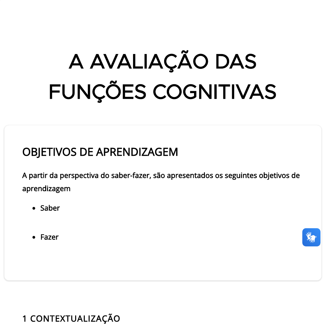 30/05/2024 21:37 Livro Digital - FUNÇÕES COGNITIVAS https://livrodigital.uniasselvi.com.br/pos/funcoes_cognitivas/conteudo.html?capitulo=2 1/33 A AVALIAÇÃO DAS FUNÇÕES COGNITIVAS OBJETIVOS DE APRENDIZAGEM Saber: Compreender a formação das funções cognitivas, sabendo observar e avaliar o processo de desenvolvimento de tais habilidades. Fazer: Observar como são formadas as funções cognitivas desde o nascimento do bebê, conseguindo avaliar as habilidades humanas que propiciam a autonomia intelectual, social e emocional. A partir da perspectiva do saber-fazer, são apresentados os seguintes objetivos de aprendizagem: 1 CONTEXTUALIZAÇÃO Neste capítulo nos destinaremos a avaliar as principais funções cognitivas. Desse modo, dividimos esse capítulo em três partes: funções cognitivas elementares, processamento sensorial e funções cognitivas superiores. O objetivo desse capítulo será de possibilitar que você possa identi�car os atrasos ou avanços no desenvolvimento cognitivo humano. Ao avaliar tais condições podemos estimular as habilidades em busca de um desenvolvimento integral humano. Na primeira parte, denominadas funções cognitivas elementares, identi�caremos a importância dos re�exos do bebê. Os re�exos são respostas neurológicas que demonstram que tudo está ocorrendo bem na parte funcional do cérebro de um Capítulo 2 30/05/2024 21:37 Livro Digital - FUNÇÕES COGNITIVAS https://livrodigital.uniasselvi.com.br/pos/funcoes_cognitivas/conteudo.html?capitulo=2 2/33 recém-nascido. Crianças que nascem com lesões neurológicas não correspondem bem aos re�exos e nesses casos há a necessidade de estimulação precoce. Nos desenvolvemos com a interação social, com as experiências que vivenciamos no mundo, com os objetos e pessoas que nos cercam. Recebemos as informações do mundo pelas vias sensoriais: tato cinestésico, olfato, paladar, visão, audição, vestibular e proprioceptivo. Ao processarmos as informações sensoriais que nosso cérebro se modi�ca e aprende, por isso, na segunda parte desse capítulo nos destinamos a explicar sobre o processamento sensorial sob a perspectiva de avaliar se o sujeito responde corretamente aos estímulos sensoriais. Um bom desenvolvimento no processamento sensorial é um pressuposto de um bom desenvolvimento cognitivo. Por �m, encerraremos esse capítulo tentando identi�car e avaliar as funções cognitivas superiores, destacando a percepção, atenção, memória, linguagem e funções executivas. As funções cognitivas superiores são as que nos identi�cam enquanto seres racionais, ou seja, seres capazes de re�etir, planejar e executar uma ação. As funções cognitivas superiores são o re�exo do nosso desenvolvimento intelectual. Saber avaliar tais condições é essencial para todos aqueles que lidam com o desenvolvimento e aprendizagem humana. Como podemos perceber, neste capítulo nos destinamos a avaliar as funções cognitivas desde o nascimento do ser humano, não no intuito de rotular um sujeito, mas na perspectiva de estimular suas habilidades e proporcionar sempre seu desenvolvimento integral. Saber avaliar é o primeiro passo para que possamos realizar uma intervenção adequada diante da necessidade de cada pessoa. Temos um cérebro plástico, moldável, portanto, todo estímulo, se bem realizado, é capaz de possibilitar um desenvolvimento amplo e integral para cada sujeito. 2 A AVALIAÇÃO DAS FUNÇÕES COGNITIVAS Avaliar as funções cognitivas é o primeiro passo para que possamos intervir e possibilitar novas aprendizagens. Saber como foi o desenvolvimento da pessoa desde seu nascimento, se teve integridade no desenvolvimento neurológico ou se teve alguma lesão nos possibilitará saber o foco da intervenção. O objetivo de uma avaliação nunca será para delimitar o desenvolvimento de alguém, mas sim, de possibilitar um olhar para um planejamento de intervenções que desenvolvam as Capítulo 2 30/05/2024 21:37 Livro Digital - FUNÇÕES COGNITIVAS https://livrodigital.uniasselvi.com.br/pos/funcoes_cognitivas/conteudo.html?capitulo=2 3/33 habilidades necessárias para cada um. Neste capítulo, pontuaremos as principais características no desenvolvimento cognitivo humano, desde o nascimento até as habilidades mais aprimoradas que podemos ter, visando possibilitar novos olhares perante o desenvolvimento humano. 3 FUNÇÕES COGNITIVAS ELEMENTARES Como visto no Capítulo 1, as funções cognitivas são desenvolvidas conforme os estímulos sociais e culturais que temos contato. Segundo Vigotski (2009) a criança nasce apenas com funções cognitivas elementares que se referem ao desenvolvimento biológico. Em contato com os estímulos sociais começa a se desenvolver as funções cognitivas superiores, que são as ações conscientes e voluntárias. É válido pontuar que o termo utilizado por Vigotski (2009) é de funções psicológicas e não cognitivas, no entanto, nesse contexto os termos são equivalentes. Primeiramente vamos falar das funções cognitivas elementares. Basicamente a estrutura mental biológica se refere aos re�exos com que o bebê nasce, sendo os mais conhecidos: re�exos de busca, esse re�exo ajuda o recémnascido a encontrar o seio, a começar a amamentação. Ao tocar qualquer região em torno da boca, ele vira o rosto para o lado estimulado. Re�exo de sucção é referente à quando o bebê abre a boca e suga o que aparece à sua frente. Re�exo de preensão palmar, quando há um estímulo perto dos dedos dos pés, estes se fecham e agarram o que tocou. Re�exo de preensão plantar, assim como o palmar, a partir de um estímulo perto dos dedos dos pés, se fecham e agarram o que tocou. Re�exo de Moro ocorre quando o recém-nascido se desloca do centro de gravidade se sentindo assustado ou desequilibrado. O bebê joga a cabeça para trás, estica as pernas, abre os braços e os fecha depois. Re�exo de Babinsk, a partir de um est