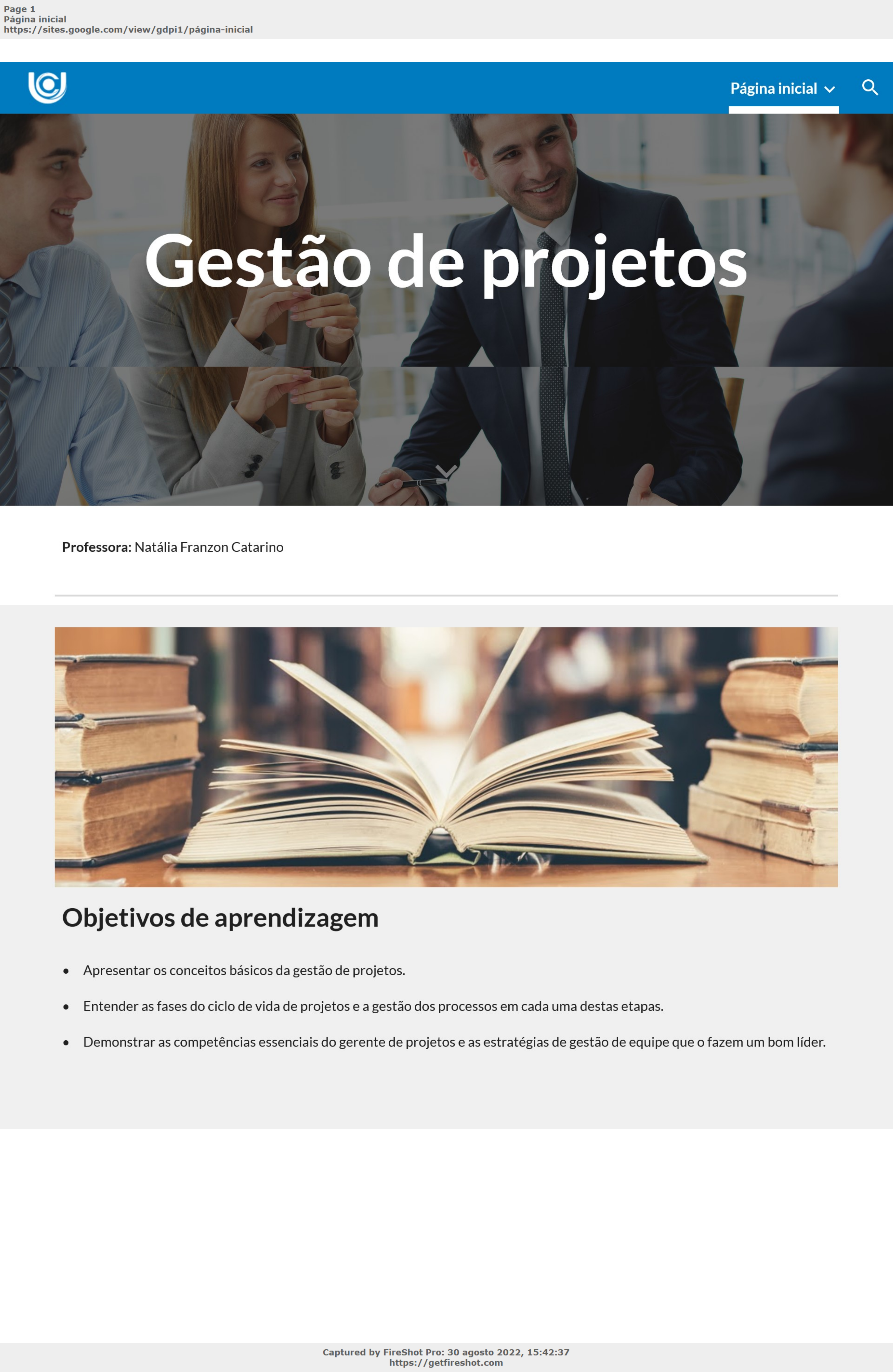 Página inicial Pular para o conteúdo principal Pular para a navegação Gestão de projetos Professora: Natália Franzon Catarino Objetivos de aprendizagem • Apresentar os conceitos básicos da gestão de projetos. • Entender as fases do ciclo de vida de projetos e a gestão dos processos em cada uma destas etapas. • Demonstrar as competências essenciais do gerente de projetos e as estratégias de gestão de equipe que o fazem um bom líder. https://sites.google.com/view/gdpi1/p�gina-inicial https://getfireshot.com https://sites.google.com/view/gdpi1/p%C3%A1gina-inicial https://sites.google.com/view/gdpi1/p%C3%A1gina-inicial Plano de estudo A seguir, apresentam-se os tópicos que você estudará nesta unidade: • Conceitos básicos da gestão de projetos • Ciclo de vida dos projetos e gestão de processos • O gerente de projetos: liderança e gestão de equipes Introdução Olá, aluno(a)! Seja bem-vindo(a) ao universo da gestão de projetos! Iniciaremos o nosso mergulho molhando os pés, a cada passo nos aprofundaremos mais e mais nos desafios encontrados, durante a execução bem-sucedida de um projeto. No curso deste estudo, você aprenderá os fundamentos do gerenciamento de projetos. Iniciaremos com os conceitos básicos que consolidaram a disciplina ao longo de sua aplicação nos mais diversos campos de atuação, para então compreendermos a estrutura essencial de gestão de projetos, abordando seu ciclo de vida e o gerenciamento dos processos que garantem o bom andamento das atividades em relação ao cronograma e custos estabelecidos. Desse modo, entenderemos bem a aplicação das técnicas tradicionais de gerenciamento de projetos, conhecimento essencial para quem quer se tornar um bom profissional desta disciplina. Então, surge a necessidade de falar sobre os tempos atuais, sobre a quantidade de projetos que fracassam por darem ênfase ao cumprimento das fases técnicas do projeto, mas se esquecerem da instabilidade relacionada aos novos desafios do mercado. Novos tempos, novos modelos de negócios, uma nova economia. As competências de um gerente de projetos e o ritmo da gestão são outros, desta forma, precisamos entender o que é esperado desse profissional nos novos tempos e as melhores práticas para se aplicar o gerenciamento de projetos, entendendo as incertezas de se trabalhar em busca de uma cultura de inovação. Aliás, a única forma de se inovar é por meio de projetos, por isso neste estudo, vamos juntos construir o conhecimento necessário para gerenciar projetos com excelência. Apresentaremos conceitos e técnicas aplicados em casos reais, com dicas mercadológicas e curiosidades. Assim, ao longo da leitura, você conseguirá entender não somente a teoria, mas a aplicação prática desta disciplina no dia a dia das corporações. https://sites.google.com/view/gdpi1/p�gina-inicial https://getfireshot.com Preparado(a)? Então, vamos lá! Avançar DOWNLOAD PDF UNICESUMAR | UNIVERSO EAD https://sites.google.com/view/gdpi1/p�gina-inicial https://getfireshot.com https://sites.google.com/view/gdpi1/p%C3%A1gina-inicial/unidade-1 https://drive.google.com/file/d/14D5h5PrIB7-XZ4ikfyBikwCzi7zD7GX5/view?usp=sharing Página inicial Pular para o conteúdo principal Pular para a navegação Conceitos Básicos da Gestão de Projetos O que é Projeto? Você já parou para pensar que a nossa vida é feita de projetos? Desde os tempos mais primórdios, o homem se organiza em grupos em que cada indivíduo emprega esforço durante um tempo determinado para realização de um objetivo em comum. Foi assim na construção das pirâmides do Egito, na realização da Copa do Mundo no Brasil e até na organização da festa de casamento da sua amiga. Projetos podem ter proporções e complexidades diferentes, mas têm uma estrutura em comum, como definido por Kerzner (2006, p. 15): "[...] trata-se de um empreendimento com objetivo bem definido, que consome recursos e opera sob pressões de prazos, custos e qualidade”. Atributos Essenciais de um Projeto Comecemos por elencar os atributos essenciais de um projeto. A principal referência para estudos sobre gestão de projetos é o Guia do Conjunto de Conhecimentos em Gerenciamento de Projetos (Guia PMBOK®) organizado pelo PMI – Project Management Institute, a maior associação mundial para profissionais de gerenciamento de projetos. Mais à frente, veremos outras abordagens que surgiram como uma necessidade de inovação para complementar o modelo tradicional sugerido pelo Guia, mas, para inovar, precisamos, primeiramente, dominar os conceitos básicos da disciplina. Em meados dos anos 50, a disciplina de Gerenciamento de Projetos começou a se consolidar com o surgimento das primeiras associações normatizadoras da área. Na quarta edição do Guia PMBOK® (2008, p. 5), encontramos a seguinte definição de projeto: https://sites.google.com/view/gdpi1/p�gina-inicial/unidade-1 https://getfireshot.com https://sites.google.com/view/gdpi1/p%C3%A1gina-inicial https://sites.google.com/view/gdpi1/p%C3%A1gina-inicial [...] um projeto é um esforço temporário empreendido para criar um produto, serviço ou resultado exclusivo. A sua natureza temporária indica um início e um término definidos. O término é alcançado quando os objetivos tiverem sido atingidos ou quando se concluir que esses objetivos não serão ou não poderão ser atingidos e o projeto for encerrado, ou quando o mesmo não for mais necessário. Até então, foram enfatizadas três características principais que determinam um projeto: uma entrega exclusiva de um novo produto ou serviço, que é resultado de um trabalho realizado em um tempo determinado, por um custo definido. Essas três variáveis caminham juntas e determinam se um projeto será bem-sucedido ou não. Mas, então, o que diferencia projeto das operações rotineiras de uma empresa? Podemos dividir as atividades de uma empresa em duas categorias: operações e projetos. As op