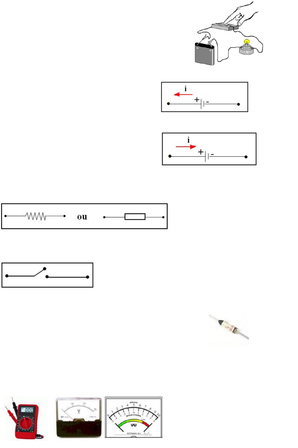 Elementos de um Circuito Elétrico Circuito elétrico é um conjunto formado por um gerador elétrico, um condutor em circuito fechado e um elemento capaz de utilizar a energia produzida pelo gerador. Gerador Elétrico É o aparelho capaz de transformar qualquer tipo de energia em energia elétrica. Sua principal função é fornecer energia para as cargas que o atravessam, como, por exemplo, pilhas, baterias e usinas hidrelétricas. Sua representação é dada por: Receptor Elétrico É o aparelho responsável por transformar energia elétrica em outras formas de energia, não sendo exclusivamente a energia térmica. Em nosso cotidiano, o melhor exemplo de receptor é o motor elétrico, que transforma energia elétrica em energia mecânica. Segue sua representação: Resistor Elemento responsável por consumir energia elétrica, e convertê-la em calor, ou seja, energia térmica. Esse fenômeno é chamado efeito Joule. Ex: chuveiro elétrico, lâmpadas comuns, fios condutores, ferro elétrico. Dispositivos de Manobra São os responsáveis por desligar ou acionar o funcionamento do circuito elétrico, como, por exemplo, os interruptores e as chaves. Dispositivos de Segurança Responsáveis pela interrupção da passagem da corrente elétrica, quando uma grande intensidade elétrica, maior que o suportável pelo aparelho, é atravessada. Os mais comuns são os fusíveis e os disjuntores. Fusível Dispositivos de controle Medem ou identificam a corrente elétrica ou a diferença de potencial entre dois pontos. Ex: Amperímetro: Mede a intensidade da corrente elétrica. Voltímetro: Mede a ddp entre dois pontos. Galvanômetro: Identifica a passagem de corrente elétrica ou a existência de ddp. Dispositivos de Controle: Amperímetro, voltímetro e galvanômetro image1.jpeg image2.jpeg image3.jpeg image4.jpeg image5.jpeg image6.jpeg image7.jpeg