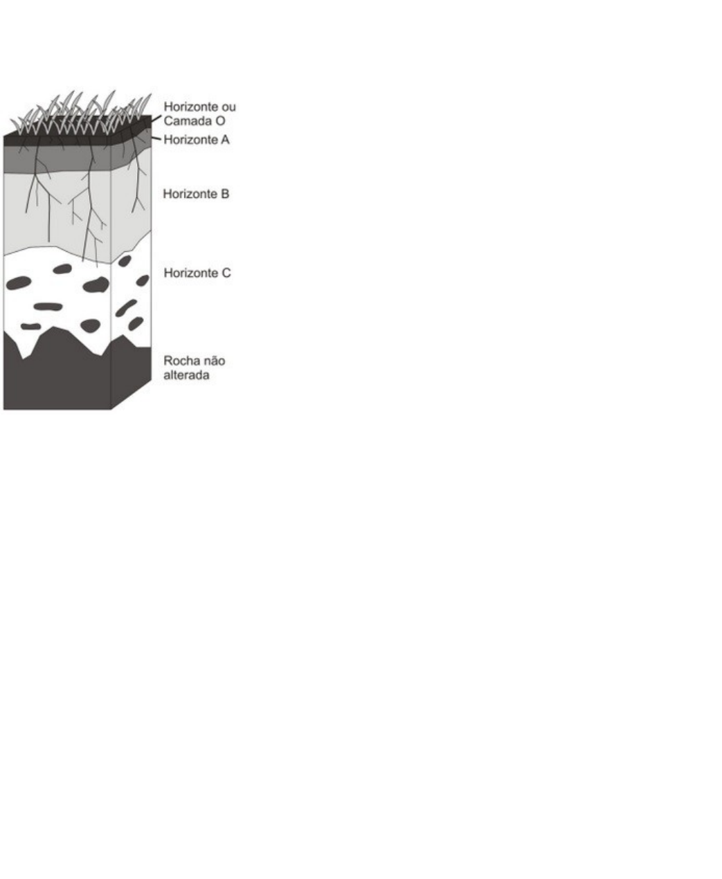 O solo e os seres humanos 1- Solo é a camada superior da superfície terrestre, onde se fixam as plantas, que dependem de seu suporte físico, água e nutrientes. Um perfil de solo é representado na figura abaixo. Sobre o perfil apresentado é correto afirmar que: Modelo de perfil do solo a) O horizonte (ou camada) O corresponde ao acúmulo de material orgânico que é gradualmente decomposto e incorporado aos horizontes inferiores, acumulando-se nos horizontes B e C. b) O horizonte A apresenta muitos minerais não alterados da rocha que deu origem ao solo, sendo normalmente o horizonte menos fértil do perfil. c) O horizonte C corresponde à transição entre solo e rocha, apresentando, normalmente, em seu interior, fragmentos de rocha não alterados. d) O horizonte B apresenta baixo desenvolvimento do solo, sendo um dos primeiros horizontes a se formar e o horizonte com a menor fertilidade em relação aos outros horizontes. 2- “A região sudoeste do Rio Grande do Sul, na fronteira com a Argentina e o Uruguai, apresenta extensa faixa de solos arenosos suscetíveis à erosão, com locais severamente degradados. Esses solos apresentam reduzido conteúdo de argila e de matéria orgânica, baixos níveis de fertilidade e baixo grau de agregação – características relacionadas ao material geológico e aos processos de evolução das superfícies geomórficas e de retrabalhamento de sedimentos […]. O fator preponderante que propicia o estabelecimento dos processos de degradação é a perda da cobertura vegetal, expondo o material arenoso à incidência dos agentes erosivos”. O uso do solo de forma inadequada, associado à suscetibilidade natural dos solos na área apresentada pelo texto, ocasiona problemas referentes à: a) desertificação b) salinização c) contaminação d) arenização e) hidromorfia 3- Complete a) __________________________consiste no processo de degradação e esgotamento dos solos que ocorre em regiões de clima árido, semiárido e subúmido, onde a pluviosidade não é maior do que 1400mm anuais e, portanto, a evaporação é maior do que a infiltração. Recebe esse nome porque provoca uma mudança da paisagem para algo próximo à paisagem de um deserto, embora não necessariamente a área formada possa ser considerada como tal. b) _____________________________é um dos mais conhecidos tipos de degradação do solos. Trata-se de um processo natural que pode ser intensificado pelas práticas humanas e que consiste no desgaste dos solos e das rochas com posterior transporte e deposição do material sedimentar que é produzido. c) Os processos erosivos, além de alterarem a forma do relevo formando crateras que podem ocupar grandes áreas, também são responsáveis pela retirada de nutrientes dos solos. Em alguns casos, a lavagem excessiva da camada superficial pela água das chuvas – processo chamado _________________________ torna os solos mais ácidos ou improdutivos. Além disso, as erosões também estão associadas a problemas de movimentação de massas e desabamento de encostas. 4) Escreva o nome correspondente a imagem. a) b) c) d) e) image1.jpeg image2.jpeg image3.jpeg image4.jpeg image5.jpeg image6.jpeg