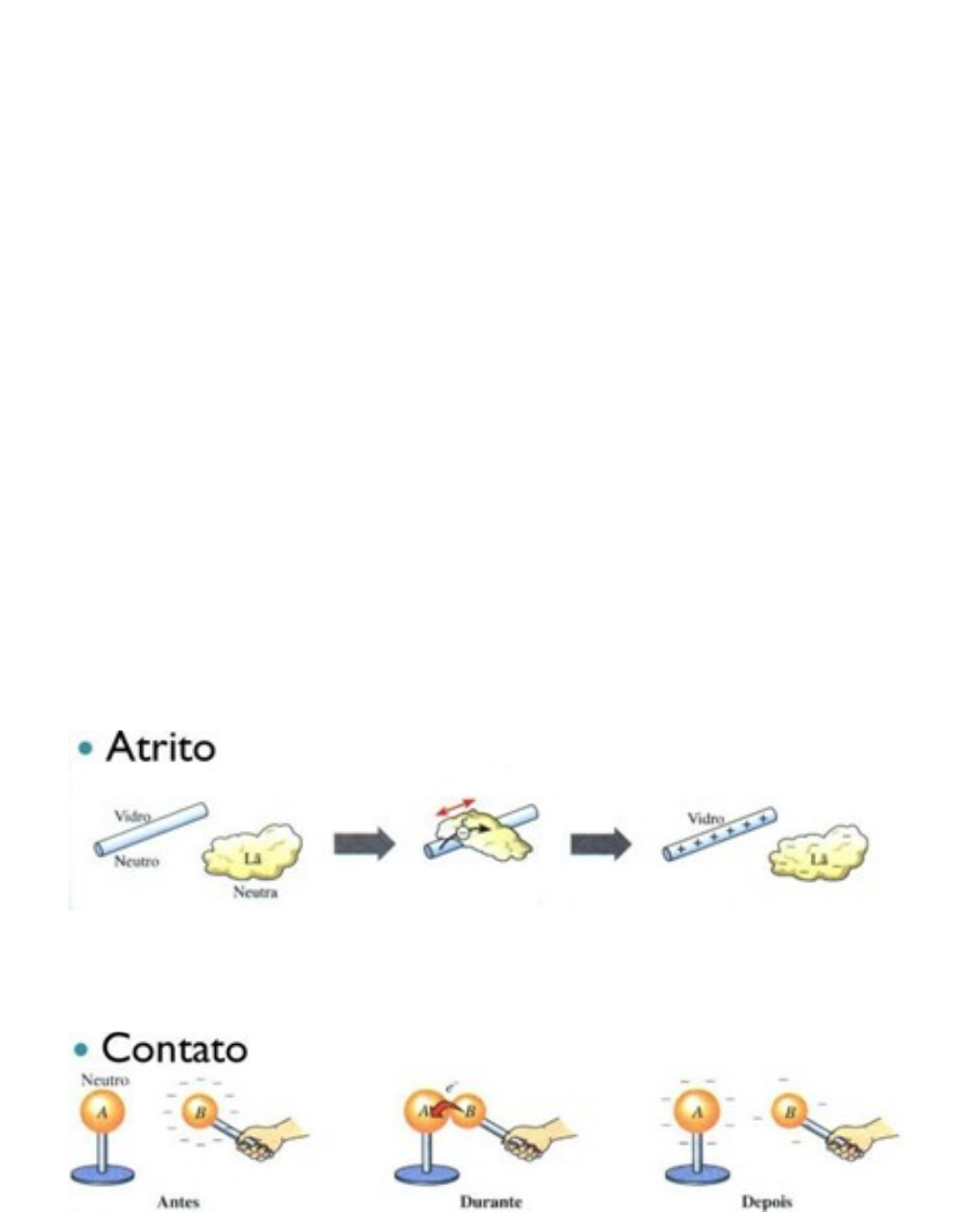 Processos de Eletrização Considera-se um corpo eletrizado quando este tiver número diferente de prótons e elétrons, ou seja, quando não estiver neutro. O processo de retirar ou acrescentar elétrons a um corpo neutro para que ele fique eletrizado é chamado de eletrização. O estudo da eletricidade originou-se de observações que, aparentemente, foram feitas pela primeira vez pelos gregos. Na realidade, é possível que outros povos tenham também observado esses fenômenos, mas os relatos mais antigos de que temos registro são dos gregos. Por essa razão, atribui-se a eles a primazia desse feito. A primeira observação foi feita com um material denominado âmbar. Semelhante ao plástico, resulta do endurecimento da seiva de árvores de uma espécie extinta. Tales de Mileto, o primeiro filósofo do qual temos conhecimento, parece ter sido também o primeiro a chamar atenção para o fato de que o âmbar, após ser atritado com lã ou pelo de animal, adquire a propriedade de atrair objetos “leves”, como penas, fios de algodão, papel picado etc. Após algum tempo e alguns estudos sobre o âmbar, foi constatado que a eletricidade não era exatamente uma propriedade exclusiva do âmbar, mas tratava-se de um fenômeno generalizado e que podia ser observado em diversas substâncias. Hoje sabemos que estamos rodeados de uma série de fenômenos elétricos e de suas incontáveis aplicações práticas: rádio, transmissão via satélite, internet, chapinha, chuveiro elétrico etc. Em alguns momentos do nosso cotidiano, deparamo-nos com situações um “pouco estranhas”, nas quais tomamos choques em maçanetas de portas, na tela da TV ou até mesmo quando encostamos em outra pessoa. Esses pequenos choques ocorrem em razão da eletricidade estática que adquirimos diariamente. Essas cargas são adquiridas por alguns processos de eletrização conhecidos há séculos. São três os processos de eletrização: eletrização por atrito, eletrização por contato e eletrização por indução. · Eletrização por atrito Como o próprio nome diz, atritando-se, ou melhor, colocando-se dois corpos constituídos de substâncias diferentes e, inicialmente, neutros em contato, um deles cede elétrons, enquanto o outro recebe. Ao final, os dois corpos estarão eletrizados e com cargas elétricas opostas. · Eletrização por contato Dizemos que a eletrização por contato é o processo em que um corpo eletrizado é colocado em contato com um corpo neutro. De preferência, devem ser usados dois corpos condutores de eletricidade. · Eletrização por indução Dizemos que a indução eletrostática é o fenômeno de separação de cargas elétricas de sinais contrários em um mesmo corpo. Portanto, esse tipo de eletrização pode ocorrer apenas pela aproximação entre um corpo eletrizado e um corpo neutro, sem que entre eles aconteça qualquer tipo de contato. Para obter no induzido uma eletrização com cargas de um só sinal, basta ligá-lo à terra na presença do indutor. Você já levou choque ao abrir a porta de um carro ou ao descer do veículo? Como citado anteriormente, algumas vezes, ao abrirmos a porta do carro, levamos um pequeno choque. Esse choque é proveniente do processo de eletrização por atrito, pois, ao se movimentarem, os automóveis e outros veículos eletrizam-se em virtude do atrito com o ar. Isso é mais notado em locais de clima seco. É muito comum um passageiro levar um choque quando o ônibus chega à parada: basta ele se encostar a qualquer uma das partes metálicas do veículo. Nesse caso, o passageiro faz o papel de fio terra. Muitas vezes, também, é possível levar um choque quando se desce de um automóvel. Geralmente, o veículo está eletrizado por atrito com o ar e, ao descer do carro, a pessoa estabelece um contato entre a carcaça metálica eletrizada do carro e a terra. Eis uma das causas de choque elétrico. No entanto, existe outra razão para ocorrer o choque elétrico ao se descer de um carro: o passageiro, por ficar sentado no banco, causa atrito entre o tecido de sua roupa e o tecido do banco do veículo. Assim, a pessoa fica eletrizada e, ao descer do carro, carrega essas cargas elétricas espalhadas em seu corpo. Quando, então, toca em um metal (carro), este faz escoar as cargas para a terra, ocasionando o choque elétrico.