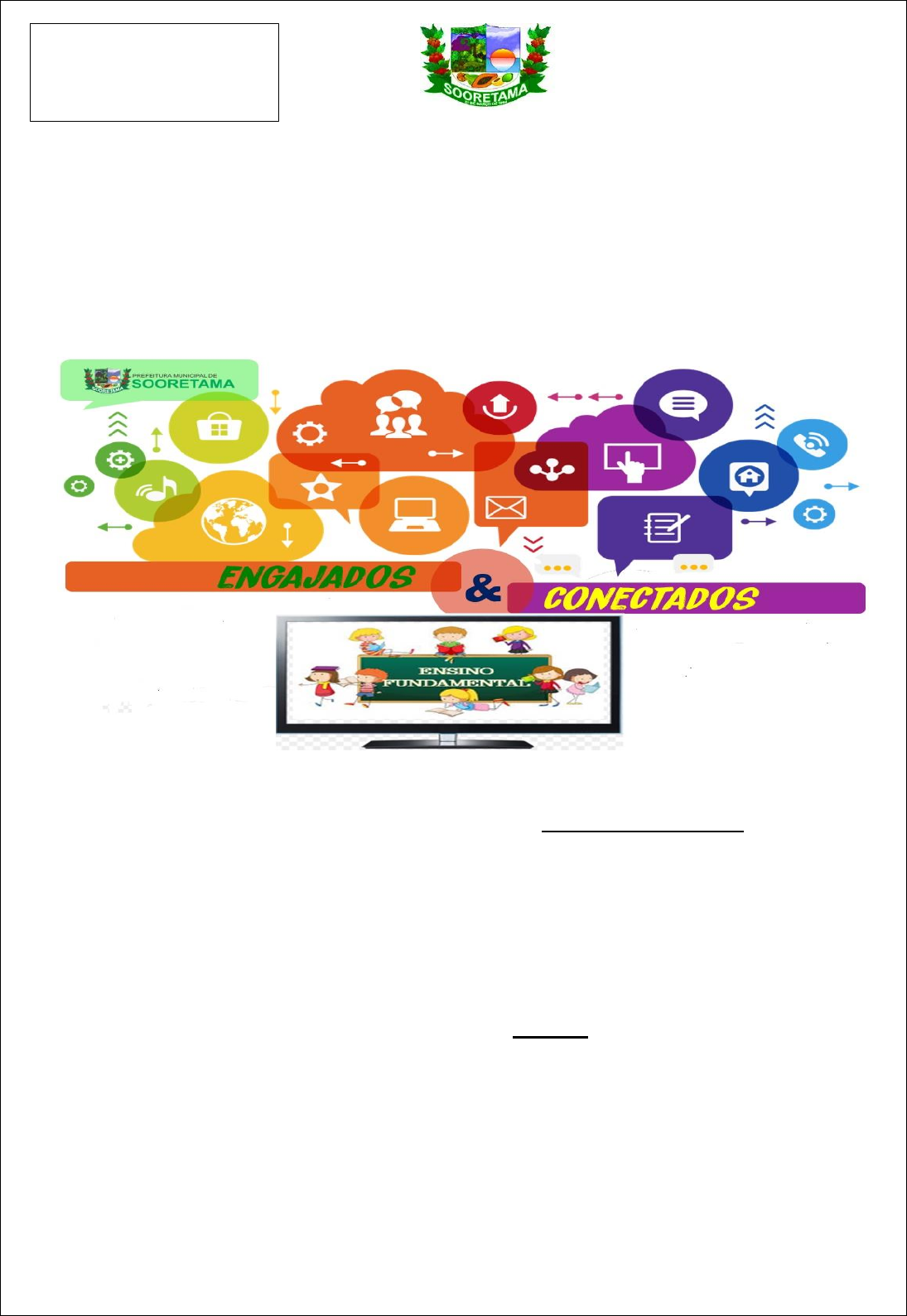 SECRETARIA MUNICIPAL DE EDUCAÇÃO 4ª ETAPA DE ESTUDOS - ENSINO FUNDAMENTAL ANOS INICIAIS ATIVIDADES NÃO PRESENCIAIS ESCOLA:_________________________________________________________________________ ALUNO(A):________________________________________________________________________ PROFESSOR(A): _______________________________ TURMA:____________TURNO:________________ SENHORES PAIS E/OU RESPONSÁVEIS A APOSTILA DE ATIVIDADES FOI PRODUZIDA POR PROFESSORES DO 4º ANO, CONTENDO ATIVIDADES DIRECIONADAS ÀS CRIANÇAS QUE CONTARÃO COM A COLABORAÇÃO DA FAMÍLIA POR MEIO DA COMUNICAÇÃO TECNOLÓGICA E OUTROS, POR ONDE AS DÚVIDAS PODERÃO SER SANADAS, DESTA MANEIRA OCORRERÁ A AVALIAÇÃO MEDIANTE A TROCA DE INFORMAÇÕES ENTRE A FAMÍLIA E PROFESSORES E POSTERIORMENTE COM O RETORNO DAS AULAS PRESENCIAIS. AS ATIVIDADES TERÃO TEMPO ESTIPULADO EM 30 DIAS PARA SEREM CONCLUÍDAS. VALE LEMBRAR QUE AS ATIVIDADES COMPLEMENTARES NÃO SUBSTITUEM O APRENDIZADO ESCOLAR, NO ENTANTO CONTAMOS COM A COLABORAÇÃO DA FAMÍLIA NA ORGANIZAÇÃO DE UMA ROTINA DE ESTUDOS PARA MELHOR AJUDAR AS CRIANÇAS. SOORETAMA-ES 2021 4º ANO Atenciosamente, Equipe Pedagógica! A escolha do local de estudo é muito importante: Opte por lugares bem iluminados e arejados; Escolha um lugar onde não haja muito trânsito de pessoas; Elimine as distrações como celular, televisão e rádio, etc. Defina um horário diário de estudos, de preferência no mesmo horário em que a criança frequenta a escola. Faça intervalos. CRIANDO BONS HÁBITOS DE ESTUDO EM CASA Sem Interrupções! Respeite o horário de estudos de seu filho! Ele deve se concentrar e para isso evite interromper ou interferir desnecessariamente. Deixe outras atividades para depois dos estudos. Auxilie nas atividades A sua participação é muito importante para o bom andamento das atividades. Esclareça dúvidas e incentive o estudo. Mas lembre que quem deve realizar a atividade é a criança. Não resolva por ela! Ofereça os meios para que ela mesma consiga realizar. LÍNGUA PORTUGUESA 1- Faça a leitura da tirinha abaixo com bastante atenção! Agora é hora de interpretar! a) O que o Cebolinha iria fazer? _________________________________________________________ b) O que o Marcelinho disse sobre a embalagem do copo? ____________________________________________________________________________________ ______________________________________________________________________________ c) A preocupação do Marcelinho é com o quê? A- ( ) O copo cair fora da lixeira. C- ( ) O copo ser jogado na lixeira errada. B- ( ) Marcelinho queria o copo para ele. D- ( ) O copo era da Mônica. d) A fala do Marcelinho e o símbolo na lixeira significa que o copo... A- ( ) Não terá nenhuma utilidade. C- ( ) Será reciclado. B- ( ) Vai continuar na lixeira D- ( ) Vai para o lixão. e) Portanto, é possível entender que o símbolo da lixeira é importante para... A- ( ) O meio ambiente C- ( ) A saúde B- ( ) Ganhar dinheiro D- ( ) Evitar desperdício f) Por que, no último quadrinho, a Mônica disse que o mundo estava mesmo precisando de um super- herói como o Marcelinho? Escreva a sua opinião. ____________________________________________________________________________________ ____________________________________________________________________________________ g) O Cebolinha tem um jeito todo diferente de falar as palavras que contém R. Veja quais palavras que o Cebolinha falou diferente na tirinha e escreva-as da forma como você fala. ____________________________________________________________________________________ Saiba mais: A reciclagem é um processo por meio do qual objetos já utilizados são transformados em matéria-prima para a criação de um novo produto, ocasionando um impacto muito positivo no meio ambiente. ESCOLA: EMEF PEDRO BALBINO DE MENEZES TURMA: PROFESSOR (A): NOME DO ALUNO: ATIVIDADE NÃO PRESENCIAL 1º DIA Data: Agora é hora da gramática! 1) Volte à tirinha e retire: a) 1 palavra monossílaba - _________________ b) 1 palavra dissílaba - ________________________ c) 1 palavra trissílaba - ___________________ d) 1 palavra polissílaba - ______________________ 2) Vamos relembrar os sinais de pontuação. 3) Observe as cenas abaixo e de acordo com o que se vê, forme 2 frases para cada sinal de pontuação que aparece. MATEMÁTICA LEIA A NOTÍCIA: CARIACICA É A CIDADE DA GRANDE VITÓRIA COM MAIS ÁREAS DE PRESERVAÇÃO UNIDADES DE CONSERVAÇÃO OCUPAM QUASE 20% DO TERRITÓRIO DO MUNICÍPIO. LEVANTAMENTO É DA FUNDAÇÃO SOS MATA ATLÂNTICA, DE 2014 E 2015. UM ESTUDO FEITO PELA FUNDAÇÃO SOS MATA ATLÂNTICA APONTOU CARIACICA COMO O MUNICÍPIO DA GRANDE VITÓRIA QUE MAIS PRESERVOU MATA ATLÂNTICA ENTRE OS ANOS DE 2014 E 2015. A CIDADE POSSUI RESERVA ESTADUAL E ÁREAS DE PRESERVAÇÃO MUNICIPAIS, QUE, JUNTAS, OCUPAM QUASE 20% DO TERRITÓRIO DO MUNICÍPIO. A RESERVA DE DUAS BOCAS, EM CARIACICA, TEM QUASE TRÊS MIL HECTARES DE ÁREA VERDE E ABRIGA ESPÉCIES NATIVAS DA MATA ATLÂNTICA. PARTE DA VEGETAÇÃO SE ESTENDE ATÉ O MESTRE ÁLVARO, NA SERRA, FORMANDO O CHAMADO 'CORREDOR ECOLÓGICO'. “O CORREDOR, NA VERDADE, FAZ UMA CONEXÃO COM ESSA VEGETAÇÃO QUE CHEGA AO MUNICÍPIO DA SERRA. ISSO POSSIBILITA O INCREMENTO DA BIODIVERSIDADE, A MOVIMENTAÇÃO DE FAUNA. ENTÃO, VOCÊ POSSIBILITA QUE ESPÉCIES POSSAM TRANSITAR PARA OUTROS MUNICÍPIOS TAMBÉM, NESSAS ÁREAS QUE SÃO PRESERVADAS”, FALOU A DIRETORA-PRESIDENTE DO IEMA ANDREIA CARVALHO. http://g1.globo.com/espirito-santo/noticia/2017/03/cariacica-e-cidade-da-grande-vitoria-com-mais-areas-de-preservaca https://iema.es.gov.br/Not%C3%ADcia/duas-bocas-entre-os-destaques-de-cariacica 1) APÓS LEITURA ATENTA DA NOTÍCIA ACIMA, CIRCULE TODOS OS NUMERAIS (EM ALGARISMOS OU POR EXTENSO) QUE APARECEM ESCRITOS NO TEXTO. 2)ESCREVA NA PRIMEIRA COLUNA DA TABELA ABAIXO TODOS OS NÚMEROS EM ALGARISMOS QUE VOCÊ CIRCULOU NO TEXTO, DEPOIS, FAÇA A ESCRITA DELES TAMBÉM POR EXTENSO NA 2ª COLUNA. FORMA NUMERICA POR EXTEN