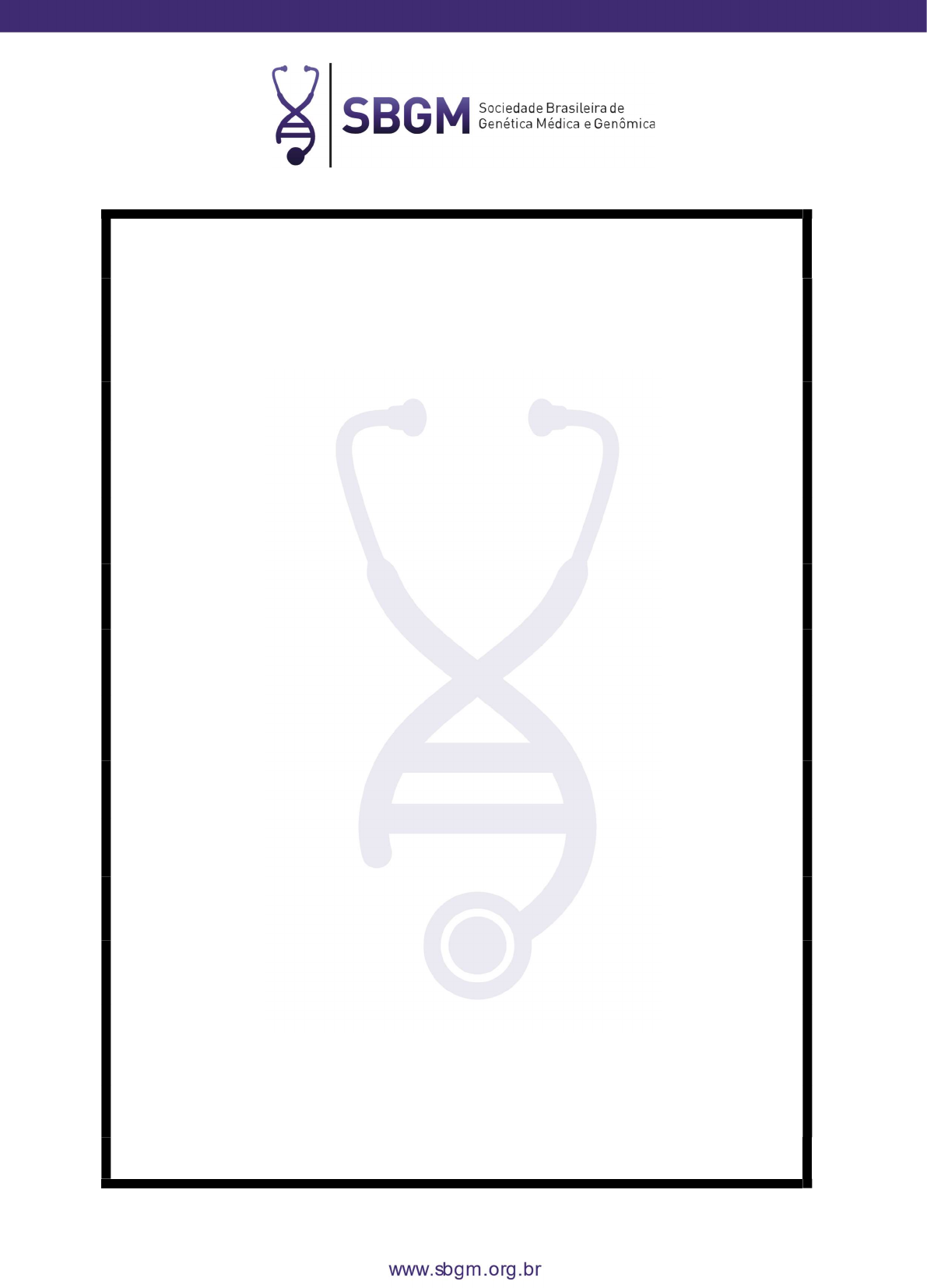 Rua São Manoel, 456 cj 303, Porto Alegre, RS 90620-110 Concurso para obtenção do Título de Especialista em Genética Médica – 2022 Sociedade Brasileira de Genética Médica e Genômica PROVA TEÓRICA (1ª Fase) Campinas, 12 de novembro de 2022. CANDIDATO: _________________________ Rua São Manoel, 456 cj 303, Porto Alegre, RS 90620-110 INSTRUÇÕES Trata-se da prova teórica: composta de 80 (oitenta) questões de múltipla escolha, com 05 (cinco) alternativas cada, abordando temas de Genética Básica e Genética Clínica. A nota da prova teórica da 1ª fase será calculada com base na pontuação total de acertos obtidos e convertida para a escala de 0,00 a 10,00 (zero a dez). Serão eliminados na primeira fase os candidatos que não alcançarem 60% (sessenta e cinco por cento) de acertos na prova teórica. Somente poderão realizar a segunda fase os candidatos aprovados com pelo menos 60% de acertos na primeira fase, ou seja, nota na prova teórica igual ou maior do que 6,0 (seis). Esta prova é composta de 80 (oitenta) questões de múltipla escolha com cinco alternativas cada. Existe apenas uma alternativa correta para cada questão. Utilize os espaços do caderno de questões para as anotações e rasuras que achar necessário. A prova será corrigida pela folha de respostas (gabarito) e não serão aceitas rasuras ou uso de corretivo. O gabarito deve ser preenchido com caneta preta ou azul, assinalando apenas UMA alternativa e preenchendo totalmente o campo conforme orientação abaixo: Marcação em X, preenchimento parcial ou preenchimento de mais do que uma alternativa anula a questão respondida dessa forma, portanto, preste atenção para evitar tais erros. O gabarito é único e não será substituído em caso de erros de preenchimento. Devem ser devolvidos tanto o caderno de questões quanto o seu gabarito. Boa prova. Rua São Manoel, 456 cj 303, Porto Alegre, RS 90620-110 1. Geneticista avaliou lactente de oito meses, encaminhado por alterações em genitália e síndrome nefrótica resistente a corticoide. Ao exame da genitália externa, foram evidenciados hipospadia, micropênis e criptorquidia. Exames prévios realizados incluíram: cariótipo (46,XY); ultrassonografia de abdome total (presença de refluxo vésico-ureteral, de útero e de tubas uterinas); avaliação oftalmológica com exame de lâmpada de fenda (normal) e biopsia renal (esclerose mesangial difusa). Considerando o quadro clínico do paciente, assinale a alternativa correta. a. O quadro clínico é sugestivo de síndrome nefrótica resistente a esteroide por alteração nos genes NPHS1 ou NPHS2, que também se associa a alterações genitais. b. O quadro clínico é sugestivo de distúrbio relacionado ao gene WT1. c. O quadro clínico é sugestivo de síndrome WAGR e se deve à alteração no gene PAX6. d. A hipótese mais provável é de distúrbio do desenvolvimento testicular, relacionado aos genes MAP3K1 e NR5A1, que também pode causar acometimento renal. e. A hipótese mais provável é de síndrome de insensibilidade androgênica parcial associada à síndrome nefrótica de causa não genética. Para avaliação dessa hipótese, está indicada a realização de dosagens hormonais (testosterona, dihidrotestosterona, LH, FSH). 2. Assinale a alternativa na qual as condições listadas estão associadas à craniossinostose. a. Hipofosfatasia, síndrome de Shprintzen-Goldberg. b. Hipocondroplasia, síndrome de Loeys-Dietz. c. Displasia tanatofórica tipo II, síndrome da microdeleção 22q13. d. Displasia campomélica, síndrome de Antley-Bixler. e. Pseudoacondroplasia, síndrome de Muenke. 3. Adolescente do sexo masculino, 15 anos de idade, encaminhado ao médico geneticista por deficiência intelectual. Havia descrição de atraso no neurodesenvolvimento e de lesões intestinais, diagnosticadas como pólipos hamartomatosos. Não havia relato de quadro semelhante em sua história familiar. Ao exame físico, foram identificados macrocefalia e lipomas. Considerando as informações acima, assinale a alternativa correta. a. Considerando que a principal hipótese é a síndrome do X frágil, há indicação de PCR para avaliação das repetições CGG na região 5´UTR do gene FMR1. b. O quadro clínico é inespecífico e está indicado o exame de CGH array para iniciar a investigação. Rua São Manoel, 456 cj 303, Porto Alegre, RS 90620-110 c. O quadro clínico sugere a presença de duas condições geneticamente distintas, uma relacionada aos pólipos intestinais e outra relacionada ao restante do fenótipo. d. O quadro clínico sugere condição monogênica associada a risco aumentado para tumores malignos, incluindo câncer da tireoide. e. A presença de pólipos intestinais hamartomatosos em idade jovem sugere quadro de predisposição hereditária a câncer e o gene APC é o principal candidato relacionado às lesões intestinais do paciente. 4. A respeito dos distúrbios relacionados ao gene MECP2, é correto afirmar: a. O fenótipo em indivíduos do sexo masculino é variável, podendo estar associado a quadro malformativo com óbito intrauterino. b. Em indivíduos do sexo feminino, as manifestações neurológicas típicas relacionadas à síndrome de Rett clássica se iniciam antes dos seis meses de vida. c. A síndrome de duplicação do MECP2 é um transtorno do neurodesenvolvimento que afeta principalmente indivíduos do sexo feminino. d. Deficiência intelectual, sinais piramidais e macroorquidismo podem ser observados em indivíduos afetados do sexo masculino. e. Na variante da síndrome de Rett, o fenótipo é mais leve do que na síndrome de Rett clássica e as manifestações se iniciam na adolescência. 5. Em relação à osteogênese imperfeita (OI), é correto afirmar: a. Diante da suspeita de uma forma leve/não deformante de OI, a hipótese mais provável é de OI de herança autossômica recessiva, uma vez que os genes relacionados às formas recessivas usualmente causam um