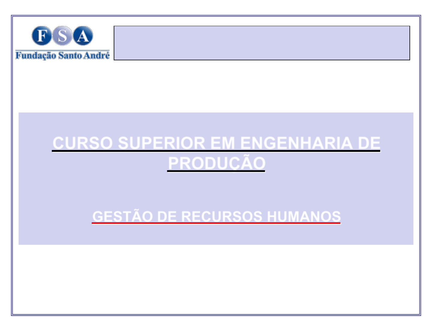 APRESENTAÇÃO DA DISCIPLINA CURSO SUPERIOR EM ENGENHARIA DE PRODUÇÃO GESTÃO DE RECURSOS HUMANOS Prof. Roberto Nobrega http://www.fsa.br/ Gestão de Recursos Humanos Há muito, a motivação humana vem sendo pesquisada diante da constante indagação a respeito do porquê as pessoas fazem aquilo que fazem. A motivação para o trabalho, então, é considerada por executivos e administradores um problema. Caso se aprofunde o conhecimento dos problemas que mais frequentemente afligem as pessoas no trabalho, a resposta será: falta de motivação. ➔Motivação nas organizações... Gestão de Recursos Humanos A organização é um sistema de atividades conscientemente coordenadas de duas ou mais pessoas. A cooperação entre elas é essencial para a existência da organização. Uma organização somente existe quando: 1. Há pessoas capazes de se comunicarem entre si e que 2. Estão dispostas a participar e a contribuir com ação conjunta, 3. A fim de alcançarem um objetivo comum. Gestão de Recursos Humanos O homem é um animal social com uma irreprimível tendência à vida em sociedade. Ele vive em organizações e em ambientes cada vez mais complexos e dinâmicos. Assim, “organizações são pessoas, organizações são grupos; e organizações são organizações. ➔ A variabilidade humana... Gestão de Recursos Humanos Contudo, as organizações não dispõem ainda de tratamento de dados ou meios para compreender os seus membros em sua total integridade e complexidade, apesar do big data e das análises preditivas. As tecnologias emergentes deverão fazer diferença incrível nesse aspecto. ➔ Pessoas... Gestão de Recursos Humanos Gestão de Recursos Humanos Usamos muitas expressões para descrever quanto as pessoas são importantes para as empresas. Os termos recursos humanos, capital humano, capital intelectual, gestão de talentos sugerem que são as pessoas que direcionam o desempenho de suas organizações (juntamente com outros recursos, como capital, materiais e informação). ➔ Gestão de Recursos Humanos... Gestão de Recursos Humanos A ideia de que as empresas “competem por meio das pessoas” dá ênfase ao fato de que o sucesso depende cada vez mais da capacidade empresarial de gerenciar o talento, ou o capital humano. A expressão capital humano diz respei‐to ao valor econômico do conhecimento, das habilidades e das aptidões dos funcionários de uma empresa. ➔ Gestão de Recursos Humanos... Gestão de Recursos Humanos Capital humano: conhecimento, habilidades e aptidões dos indivíduos que têm valor econômico para uma organização. ➔ Gestão de Recursos Humanos... Gestão de Recursos Humanos Selecionar, formar, integrar e aperfeiçoar um grupo de pessoas para trabalhar em uma empresa como uma verdadeira equipe, com objetivos definidos, fazendo com que cada membro conheça seu papel, coopere com os demais e “vista a camisa” para produzir resultados é a responsabilidade mais importante dos gestores. ➔ O papel da Gestão de Recursos Humanos... Gestão de Recursos Humanos A função que tem esse papel na organização recebe o nome de gestão de recursos humanos. A função gestão de recursos humanos em uma organização tem como propósitos: •dimensionar e planejar quantitativa e qualitativamente as necessidades da organização, de forma a atender as especificidades do negócio e permitir‐lhe alcançar seus objetivos estratégicos; ➔ Gestão de Recursos Humanos... Gestão de Recursos Humanos • Atuar como designer organizacional, desenhando uma estrutura organizacional moderna e flexível que possibilite que a organização alcance seus objetivos e possa se adaptar rapidamente às necessidades impostas por um mercado competitivo; • suprir a organização de pessoas qualificadas; • desenvolver o potencial das pessoas; ➔ Gestão de Recursos Humanos... Gestão de Recursos Humanos • reconhecer a importância do trabalho e o desempenho de cada pessoa na organização, oferecendo uma remuneração justa; • criar um ambiente de trabalho física e socialmente saudável e facilitar o relacionamento das pessoas com a organização. ➔ Gestão de Recursos Humanos... Gestão de Recursos Humanos • reconhecer a importância do trabalho e o desempenho de cada pessoa na organização, oferecendo uma remuneração justa; • criar um ambiente de trabalho física e socialmente saudável e facilitar o relacionamento das pessoas com a organização. ➔ Gestão de Recursos Humanos... Gestão de Recursos Humanos Selecionar, formar, integrar e aperfeiçoar um grupo de pessoas para trabalhar em uma empresa como uma verdadeira equipe, com objetivos definidos, fazendo com que cada membro conheça seu papel, coopere com os demais e “vista a camisa” para produzir resultados é a responsabilidade mais importante dos gestores. ➔ Gestão de Recursos Humanos... Gestão de Recursos Humanos As organizações já se deram conta da importância das pessoas e da forma como são administradas, diferentemente do que ocorria no passado, quando o foco recaía apenas na tecnologia do produto ou do processo, nos mercados protegidos ou regulamentados, no acesso a recursos financeiros e economias de escala. ➔ Gestão de Recursos Humanos... Slide 1 Slide 2 Slide 3 Slide 4 Slide 5 Slide 6 Slide 7 Slide 8 Slide 9 Slide 10 Slide 11 Slide 12 Slide 13 Slide 14 Slide 15 Slide 16