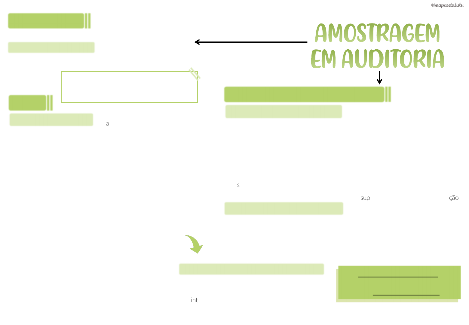 de que a distorção tolerável não supere a distorção real na população amostragem em auditoria OBJETIVO DO AUDITOR: ASPECTOS GERAIS RISCO DE AMOSTRAGEM RISCOS FATORES COM RELAÇÃO DIRETA INFLUENCIAM O TAMANHO DA AMOSTRA FATORES COM RELAÇÃO INVERSA RISCO NÃO RESULTANTE DE AMOSTRAGEM )Mesmo se o auditor usasse a população inteira, chegaria a uma conclusão errônea( )A "culpa” é da amostragem( )de que a taxa tolerável de desvio não supere a taxa real na população( )( ● NBC TA 530 : Amostragem em Auditoria Proporcionar uma base razoável para o auditor concluir sobre a população. Anomalia: Distorção/desvio comprovadamente não representativo da distorção/desvio na população. Testes de detalhes ● Avaliação de risco de distorção relevante ● Distorção que o auditor espera encontrar ● Nível de segurança desejado A quantidade de unidades de amostragem na população tem efeito negligenciável. Testes de controle ● Taxa tolerável de desvios ● Risco de que a conclusão do auditor com base em amostra pudesse ser diferente se toda a população fosse testada. ● Leva a conclusões errôneas: ● Afeta a eficácia da auditoria: (pode levar a uma conclusão errônea) ● Teste de controles: considerados mais eficazes do que realmente são. ● Teste de detalhes: não identifica distorção relevante que existe. ● Afeta a eficiência da auditoria: (leva um trabalho adicional) ● Teste de controles: considerados menos eficazes do que realmente são. ● Teste de detalhes: identifica distorção relevante que não existe. Testes de controle ● Avaliação de riscos considera os controles relevantes ● Taxa esperada de desvios ● Nível de segurança desejado ● Resultante de qualquer outra razão. Testes de detalhes ● Distorção tolerável ● Outros procedimentos substantivos ● Estratificação da população Cada uma sendo um grupo de unidades com características semelhantes ● Objetivo: Reduzir a variabilidade dos itens de cada estrato permite a redução do tamanho da amostra sem aumentar o risco de amostragem. ● A distorção é projetada para cada estrato separadamente e então combinada. O auditor seleciona a amostra sem seguir uma técnica estruturada. (Ex.: Seleciona as unidades de posição múltiplo de 50) TAXA TOLERÁVEL DE DESVIOS ESTRATIFICAÇÃO DISTORÇÃO TOLERÁVEL CONCEITOS IMPORTANTES = (homogêneas) )Ex.: Tabela de números aleatórios( )Tamanho/seleção/avaliação da amostra resultam em uma conclusão em valores monetários( )Geralmente não pode ser usada em auditoria: Itens de sequência são semelhantes, mas diferentes do restante da população ( )mas evita qualquer tendenciosidade ou previsibilidade consciente( Processo de dividir uma população em subpopulações. ● Valor monetário definido pelo auditor para obter um nível apropriado de segurança de que esse valor não seja excedido pela distorção real. Seleção de um ou mais blocos de itens contíguos da população. Não é apropriada quando se usa amostragem estatística. ● Taxa de desvio dos procedimentos de controle interno previstos definida pelo auditor para obter um nível apropriado de segurança de que essa taxa não seja excedida pela taxa real. Seleção Sistemática MÉTODOS DE SELEÇÃO DE AMOSTRA Tamanho da amostra Intervalo de amostragem Seleção Aleatória ___________________________________________ Amostragem de Unidade Monetária DEFINIÇÃO Unidades de amostragem na população Por meio de geradores de números aleatórios. DECORE! = Seleção com base em valores. Seleção ao Acaso Seleção de Bloco amostragem em auditoria Não é apropriada quando se usa amostragem estatística)(