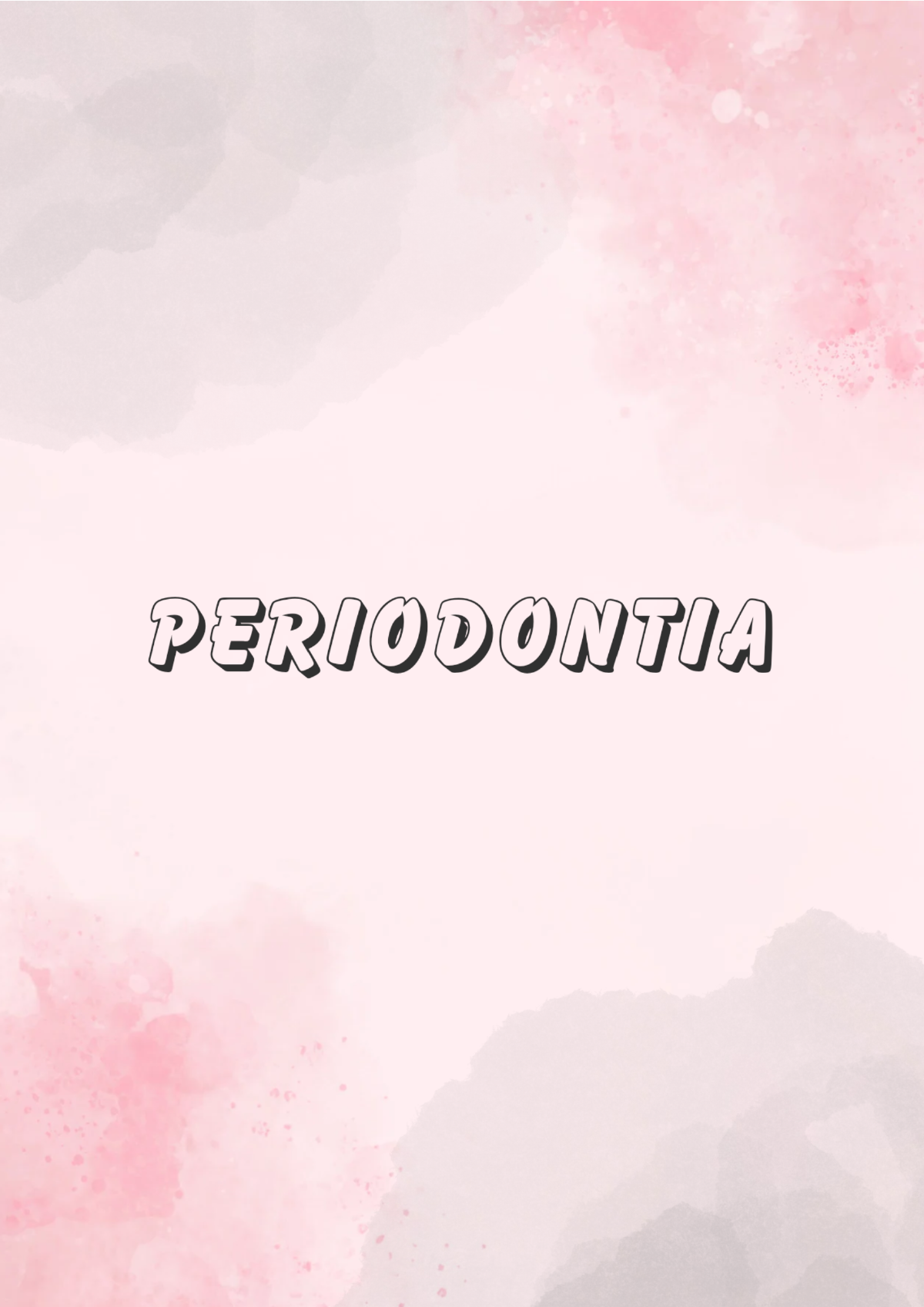 Periodonto: É uma estrutura dinâmica composta por tecidos que apoiam e envolvem os dentes *Estudar a imagem da estrutura/anatomia do periodonto (cai na prova) Principal função: Inserir os dentes no tecido ósseo dos maxilares e manter a integridade superficial da mucosa mastigatória da cavidade oral. Divisão: Periodonto de proteção: é o que vemos clinicamente Tecido gengival: Gengiva marginal○ Gengiva inserida○ Gengiva interdentária ○ • 1. Periodonto de sustentação: Cemento• Osso alveolar• Ligamento periodontal• 2. TECIDO GENGIVAL: A gengiva compreende a parte da mucosa mastigatória que recobre o processo alveolar e circunda a porção cervical dos dentes. • Gengiva marginal livre: Cor rósea• Superfície opaca• Consistência firme• Contorno parabólico• Largura de aproximadamente 1mm• Em 50% dos casos está separada da gengiva inserida adjacente por uma depressão linear denominada "ranhura gengival livre" • *A sonda periodontal é o instrumento mais utilizado na perio *Gengiva marginal livre: Pode ser separada do dente por uma sonda. Se tiver inflamação vai sangrar *Sulco Gengival: É o espaço entre a gengiva e o dente Espaço raso que se localiza coronalmente à aderência do epitélio juncional e está limitado de um lado pelo dente e do outro pelo epitélio sulcular → Mucosa alveolar: * Tecido móvel * Altamente vascularizado * Coloração vermelho escuro * Ligação frouxa com o osso adjacente * Predominância de fibras elásticas Gengiva marginal livre: lisa1. Gengiva inserida: espessa, fica bem próxima ao osso (aderida), tem pontilhados 2. Mucosa oral: mais vascularizado, tecido mais fino3. Papilas interdental: cor, tamanho e volume dizem muito sobre a saúde da gengiva 4. *Brilho na gengiva está associado a inflamação, a gengiva saudável é mais opaca. Gengiva inserida: Corresponde a faixa de tecido entre a gengiva marginal e a mucosa alveolar. → Gengiva inserida mais fina pode causar mais dor no paciente na hora da escovação → Firmemente inserida ao periósteo: comparativamente imóvel em relação à mucosa alveolar → Aspecto pontilhado: Stippling ou "casca de laranja" (cerca de 40% dos casos) → Cor rósea com tonalidade variável (pode ser pigmentada) → Largura variável (varia de 1 a 9 mm) Vestibular: Mais larga nos incisivos○ Mais estreita no 1º dente distal ao canino○ → Lingual: Mais estreita nos incisivos○ Mais larga nos molares○ → 1. ANATOMIA DO PERIODONTO sábado, 10 de fevereiro de 2024 18:37 Página 1 de PERIO Papila interdental: É a porção do tecido gengival que ocupa a ameia gengival, que é o espaço interproximal situado abaixo do ponto de contato; Determinada pela relação de contato entre os dentes, largura da superfície proximal e anatomia da ICE; → - Forma: Dentes anteriores: piramidal • Dentes posteriores: sela ou "col" (depressão em forma de vale que une as papilas vestibulares e linguais) • Diastemas: superfície lisa e arredondada• TECIDO GENGINAL: Características clínicas de normalidade: Cor, volume, contorno, forma, consistência, textura superficial e posição. → *Quando o paciente fuma começa a ter pigmentação no lado em que fica o cigarro, coloração acinzentada 1. Cor: Rósea coral ou pálido • Suprimento sanguíneo• Espessura e grau de queratinização do epitélio• Presença de células contendo pigmentos (melanina)• 2. Volume: Corresponde à soma do volume dos elementos celulares e intercelulares e seu suprimento vascular. Alteração volumétricas: característica de doença gengival→ *Em alguns casos quando o paciente toma alguns medicamentos pode causar inchaço na gengiva *Gengivite também causa o aumento de volume na gengiva devido as bactérias 3. Contorno: Variações dependem de:• Forma dos dentes• Alinhamento dos dentes no arco• Localização e tamanho da área de contato• Dimensões das ameias gengivais• *Diastemas: Espaços grandes entre os dentes sem gengiva Se a gengiva estiver saudável com um tratamento ortodôntico resolve e a papila volta ai normal → 4. Consistência: A consistência firme da gengiva inserida é determinada pela natureza colágena da lâmina própria e sua contiguidade com o periósteo do osso alveolar. • Exceção da margem gengival: presença fibras dento- gengivais • 4. Textura superficial: Gengiva inserida = pontilhada• Gengiva livre = lisa• Papila interdental = mista• *Pontilhado de casca de laranja: Apenas a gengiva inserida• Varia com a Idade• Alternância entre depressões e protuberâncias• Não serve como parâmetro para diagnóstico• *Quando a gengiva tem muita inflamação começa a ficar mais lisa e causa edema 5. Posição: Nível ao qual a gengiva marginal está aderida ao dente. • Após processo de erupção completa a margem gengival está localizada aproximadamente 2mm • Aspectos histológicos: 1. Epitélio Oral: Reveste a crista e a superficie externa da gengiva marginal e inserida; • Pavimentoso estratificado orto/Paraqueratinizado• Sulco gengival: Características de normalidade: Profundidade: 0.5 - 2.0mm;• Sem dor;• Sem exsudato;• Sem sangramento• 2. Epitélio do sulco: Epitélio juncional - margem gengival• Epitélio escamoso fino• Não queratinizado• Potencial para queratinização• Em contato mas não aderido ao dente• 3. Epitélio juncional: Não queratinizado• Constante renovação• Aderência da gengiva ao dente• Hemidesmossomos• Maior largura região de coroa• Mais estreito próximo a JCE• Faixa em forma de colar, composto por epitélio escamoso, estratificado, não-queratinizado. • Esta aderido à superficie dentária (aderência epitelial) por meio de lamina basal. • BARREIRA NATURAL CONTRA INVASÃO BACTERIANA• Tecido Conjuntivo: Matriz extracelular: Meio no qual as células estão embutidas• Produzido por fibroblastos, com alguns componentes derivados de mastócitos, macrófagos ou componentes deriva