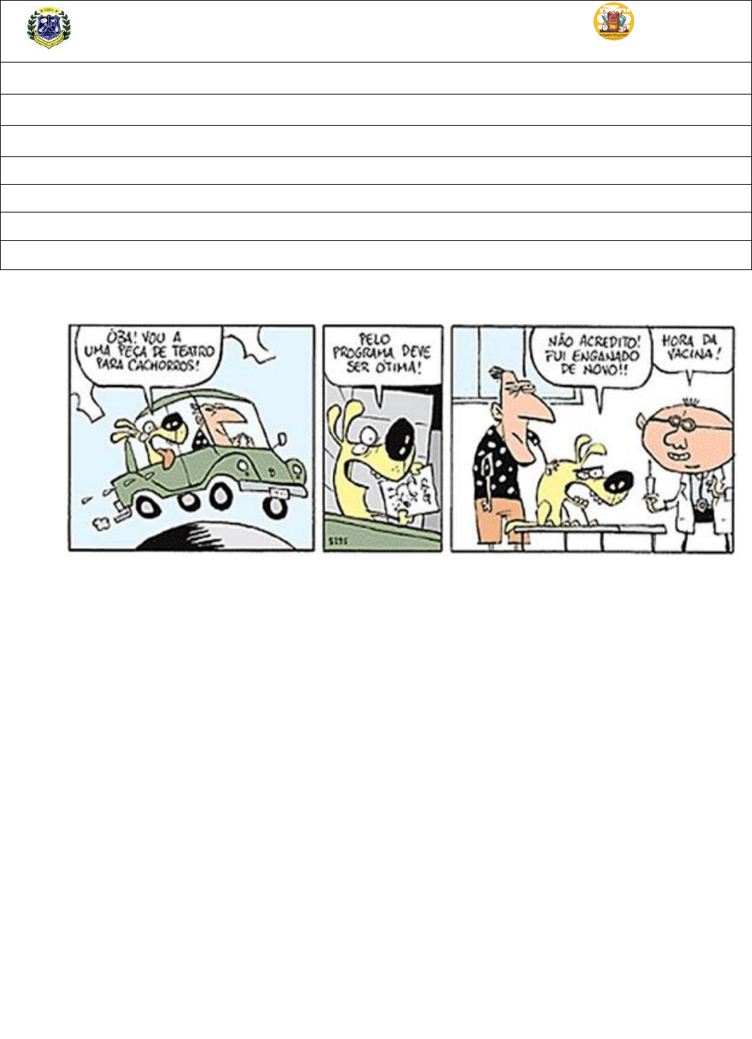 Leia a tirinha para responder às questões 1 - 4: google.com/search?q=frase+motivacional 1. A finalidade do texto é: a) Provocar uma crítica. b) Narrar um fato cômico. c) Descrever um acontecimento. d) Convencer o leitor. 2. No primeiro quadrinho é possível concluir que o cão está: a) Pensativo. b) Pachorrento. c) Entusiasmado. d) Consternado. 3. A palavra "ótima", no segundo quadrinho, é uma característica (adjetivo) da palavra: a) Peça. b) Teatro. c) Vacina. d) Programa. 4. O texto causa humor porque há: a) Uma continuidade da expectativa inicial. b) Uma hegemonia do pensamento do cão. ATIVIDADES NÃO PRESENCIAIS SEMANA 13 PERÍODO: 17 A 21 DE MAIO DE 2021 ESCOLA: PROFESSORA: ALUNO: TURMA: 7º ANO DISCIPLINA: Língua Portuguesa AULAS POR SEMANA: 04 horas/aulas CONTEÚDO: Gênero textual - Tirinha (Interpretação); Adjetivo e Linguagem informal. OBS: Atividades organizadas pelas professoras Lucinéia Teixeira Narlim e Fernanda Delorence. https://1.bp.blogspot.com/-JcEoNuIQfNA/X7qnaFI2TBI/AAAAAAAAqQQ/KRgRGeasSRgg0Gd5suLdvD6Y8peaYPVngCLcBGAsYHQ/s727/1.jpg c) Um anseio de o leitor encontrar algo engraçado. d) Uma quebra de expectativa na história. Leia o texto para resolver às questões 5 - 7: google.com/search?q=frase+motivacional 5. A pergunta da cigarra no último quadrinho justifica-se porque: a) O cupim não é amigo da cigarra. b) A cigarra não gosta de emprestar nada. c) O cupim não devolveria seu violão inteiro porque iria devorá-lo. d) A cigarra não é a verdadeira dona do violão. 6. O humor da tirinha é provocado porque: a) A cigarra não empresta seu violão. b) O cupim desistiu de pedir emprestado. c) A cigarra faz uma pergunta ao leitor. d) A cigarra e o cupim não chegaram a um acordo. 7. Há uma linguagem informal no trecho: a) "Cigarra!" b) "Me empresta..." c) "Só um pouquinho!" d) "Não!" Leia o texto e resolva à questão 8: google.com/search?q=frase+motivacional https://1.bp.blogspot.com/-lh49CQkDYd4/X7qq-yZEEaI/AAAAAAAAqQc/yx7YCGEUlI4ZvB3Arl38kFeq2-eaRpouwCLcBGAsYHQ/s732/1.jpg https://1.bp.blogspot.com/-y4fv-UjqvUQ/X7qt8XADbyI/AAAAAAAAqQo/E5GZniRKRZEJnysnxMGn7o3kYSNSo83jACLcBGAsYHQ/s589/1.jpg 8. A tirinha é engraçada porque: a) O cozinheiro não sabe fazer refeições elaboradas. b) O sargento se satisfaz com qualquer tipo e qualidade de alimento. c) O cozinheiro enganou o sargento. d) O sargento ficou feliz com o alimento preparado pelo cozinheiro. Leia e resolva às questões 9 e 10: google.com/search?q=frase+motivacional 9. Há uma linguagem coloquial no trecho: a) "O que tem pro jantar, Helga?" b) "... em um delicioso molho de queijo." c) "... mingau de aveia frio." d) "Esqueci nosso aniversário..." 10. O traço de humor na tirinha está em: a) “O que tem para o jantar, Helga?” b) “Eu vou comer faisão com batatas gratinadas...” c) “Você vai comer mingau de aveia frio.” d) “Esqueci nosso aniversário de casamento de novo, né?” Fonte de Pesquisa: https://www.tudosaladeaula.com/2020/11/atividade-simulado-de-portugues- de.html. Acesso em 05 de maio de 2021 às 16h. google.com/search?q=frase+motivacional https://www.tudosaladeaula.com/2020/11/atividade-simulado-de-portugues-de.html https://www.tudosaladeaula.com/2020/11/atividade-simulado-de-portugues-de.html https://1.bp.blogspot.com/-y_KKSxZmBQM/X7qupgFF3UI/AAAAAAAAqQw/4URwZgRlXNEEx_sNWozyP9mqCN9tsNCsgCLcBGAsYHQ/s812/1.jpg A QUADRA DE HANDEBOL OFICIAL: TAMANHO, LINHAS E MEDIDAS Quanto mede a Quadra de Handebol? A quadra de Handebol oficial é um retângulo com dimensões de 40 metros de comprimento e 20 metros de largura. Em cada lado da quadra há uma Área de Gol. Os lados maiores são chamados de linhas laterais e os lados menores são chamados de linhas de fundo (em ambos os lados das traves). Espaço de Segurança Deve haver um espaço de segurança ao redor da quadra de Handebol, com largura mínima de 1 metro ao longo das duas linhas laterais e 2 metros atrás das duas linhas de fundo. Qual Tamanho das Traves na Quadra de Handebol? A trave ou baliza na quadra de handebol oficial é colocada no centro de cada linha de fundo. As traves devem ser fixadas ao solo ou nas paredes atrás delas. As traves de Handebol medem 2 metros de altura e de 3 metros de largura. Outras medidas das traves de Handebol • Os postes e o travessão devem ser quadrados e medirem 8 centímetros • as faces das traves que ficam voltadas para dentro da quadra devem ser pintadas com faixas alternadas em duas cores diferentes com bom contraste • As redes das traves devem ser fixadas de modo que a bola for arremessada e entrar no gol permaneça dentro do gol naturalmente. ATIVIDADES NÃO PRESENCIAIS SEMANA 13 PERÍODO DE 17 Á 21 DE MAIO DE 2021 ESCOLA: PROFESSOR: ALUNO: TURMA: 7ª ano DISCIPLINA: Educação Física AULAS POR SEMANA: 2hs/aulas CONTEÚDO: Esporte de Invasão (Quadra Handebol) Professor Responsavel: José Wiliam B. Ventura https://www.dicaseducacaofisica.info/esportes/tudo-sobre-handebol/ As Linhas da Quadra de Handebol Todas as linhas da quadra fazem parte da área por ela delimitada. As linhas de gol devem ter 8 centímetros de largura entre os postes das traves, enquanto todas as outras linhas medirão 5 centímetros de largura. As linhas da Área de Gol podem ser trocada por uma pintura completa das áreas, desde que a cor da área contraste com a cor do resto da quadra de jogo. A Área de Gol da Quadra de Handebol Em frente de cada trave, há uma área de gol. A área de gol é definida por uma linha de área de gol, marcada como na imagem abaixo: https://www.dicaseducacaofisica.info/wp-content/uploads/2017/05/quadra-handebol.png https://www.dicaseducacaofisica.info/wp-content/uploads/2017/05/area-gol-handebol.png https://www.dicaseducacaofisica.info/wp-content/uploads/2017/05/area-gol-handebol.png https://www.dicaseducacaofisica.info/wp-content/uploads/2017/05/quadra-handebol.png • Uma linha de 3 metros é marcada diretamente em frente à trave; esta linha fica paralela