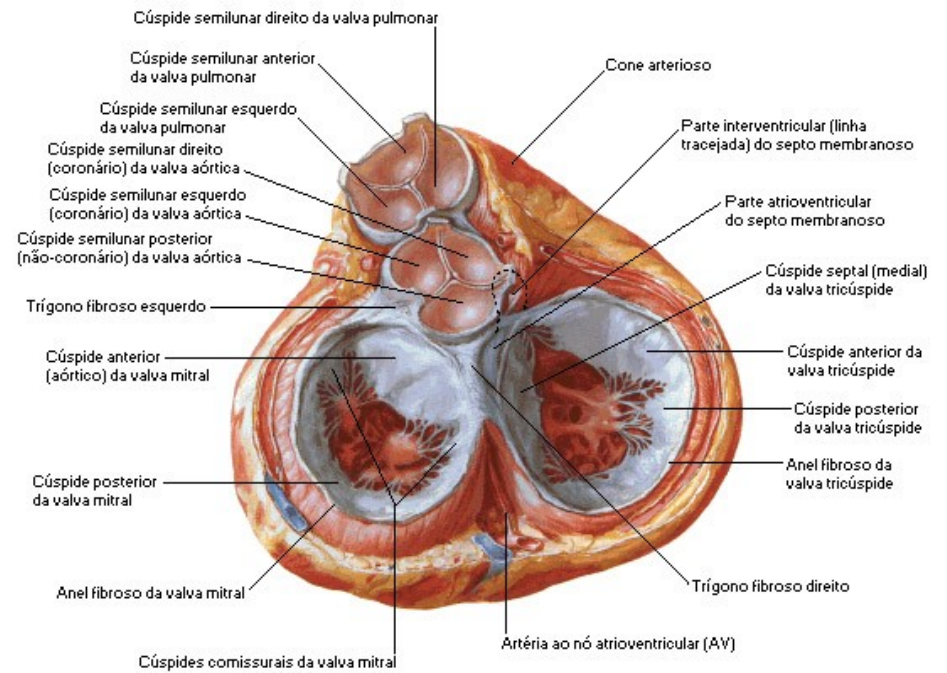 Noções de anatomia e fisiologia Localização: · O coração está localizado no mediastino médio, repousa sobre o diafragma e é coberto pelo saco pericárdico; · Saco pericárdico: membrana composta por duas lâminas - o pericárdio visceral e o pericárdio parietal, que contém de 10 a 20 mL de líquido entre os seus folhetos de modo a diminuir o atrito do entre eles. Lembrando: · O coração cresce desde o nascimento até o final da adolescência e o início da idade adulta; · A conformação do coração se altera de acordo com a fase da respiração, por exemplo, na inspiração profunda o coração fica mais verticalizado e na expiração forçada, mais horizontalizado; · O coração varia de posicionamento conforme o biotipo, apresentando uma conformação mais verticalizada nos indivíduos longilíneos e mais horizontalizada nos indivíduos brevilíneos. Aparelhos valvares: · No lado esquerdo do coração separando o átrio do ventrículo, temos a valva mitral, e no lado direito temos a valva tricúspide; · Partindo do ventrículo direito temos a valva pulmonar e partindo do ventrículo esquerdo, a valva da aorta. Irrigação: · Artéria coronária direita: irriga principalmente o ventrículo direito e a parede inferior do coração esquerdo, na maioria das vezes é a nossa artéria dominante (em cerca de 70% das pessoas). · Chamamos de dominante artéria que ultrapassa a crux cordis, na região posterior do coração, e emite os ramos finais (o ramo descendente posterior e o ramo ventricular posterior); · Artéria coronária esquerda: se divide na artéria descendente anterior que irriga a porção anterior do ventrículo esquerdo, e na artéria circunflexa que caminha pelo sulco atrioventricular irrigando principalmente a parede lateral do coração. Inervação: · Lembrar que o coração é um órgão muito influenciado pelo sistema nervoso simpático e parassimpático; · Nervo vago. Sistema de condução do coração: · O nó sinusal (no teto do átrio direito) dispara estímulos e potenciais de ação de maneira automática e espontânea no sentido do tecido de condução; · Do nó sinusal esses estímulos são conduzidos pelos feixes internodais até o nó atrioventricular, onde sofrem um atraso e seguem em direção ao feixe de His e seus ramos; · Os estímulos atingem a fibra miocárdica através da rede de Purkinje. Propriedades fundamentais do coração: · Automatismo ou automaticidade: capacidade que o nó sinusal tem de gerar estímulos espontaneamente para a formação de potenciais de ação; · Batmotropismo ou excitabilidade: capacidade de transformar o estímulo advindo do nó sinusal em potencial de ação; · Dromotropismo ou condutibilidade: capacidade de conduzir o estímulo gerado no nó sinusal, o distribuindo para todas as fibras musculares cardíacas; · Inotropismo ou contratilidade: capacidade de transformar o estímulo elétrico em atividade mecânica. Ciclo cardíaco: · Divisão simplificada em sístole e diástole, sendo que, entende-se por sístole o período no qual o coração se encontra em contração, e diástole o período no qual o coração se encontra em relaxamento; · Etapas do ciclo cardíaco: 1. Abertura das valvas atrioventriculares; 2. Enchimento ventricular rápido: pela grande diferença de pressão entre átrio e ventrículo; 3. Enchimento ventricular lento: ocorre até que as pressões no átrio e no ventrículo igualem; 4. Contração atrial: finaliza o enchimento ventricular; 5. Fechamento das valvas atrioventriculares; 6. Contração isovolumétrica: ocorre de modo que a pressão nos ventrículos supere a pressão na valva aórtica e na valva pulmonar; 7. Abertura das valvas semilunares; 8. Ejeção ventricular rápida; 9. Ejeção ventricular lenta; 10. Fechamento das valvas semilunares; 11. Dilatação isovolumétrica: com as valvas fechadas os ventrículos cardíacos dilatam até que a pressão no ventrículos seja menor do que a do que a pressão nos átrios, o que permite a abertura das valvas atrioventriculares. · Gráfico do ciclo cardíaco (lado esquerdo): Secreção hormonal do coração: · Fator atrial natriurético (FAN): aumento do volume sanguíneo no átrio; estiramento da parede atrial; secreção do FAN - natriurético; aumenta a secreção de sódio; inibe aldosterona e renina; manutenção de volume sanguíneo adequado. Distribuição do sangue pelo organismo: Exame clínico: anamnese, sintomas e sinais Anamnese: · Idade: crianças e jovens - anomalias congênitas e moléstias reumáticas (secundárias a infecções por Streptococcus pyogenes); 20 a 50 anos - Chagas e HAS; acima dos 50 anos - DAC (angina/IAM); · Sexo: mulheres - estenose e prolapso de valva mitral; homens - aterosclerose coronária (a partir de 45 anos); · Raça: negros: anemia falciforme, HAS em idades precoces e mais grave; · Naturalidade e residência: Chagas (principalmente norte de Minas e região nordeste); · Antecedentes pessoais: infecção estreptocócica - valvulopatia reumática; dieta hiperlipídica - aterosclerose; lesão renal - HAS; ansiedade/depressão - emocional; · Antecedentes familiares: HAS e cardiopatia isquêmica (principalmente em parentes de primeiro grau); · Hábitos de vida: tabagismo, alcoolismo, sedentarismo - HAS, aterosclerose; · Condições socioeconômicas e culturais: doença reumática - má alimentação e não tratamento; condição de moradia - endemia de Chagas. DOR TORÁCICA: · 7 dimensões: 1. Localização; 2. Caráter ou qualidade; 3. Intensidade; 4. Duração; 5. Irradiação; 6. Fatores desencadeantes ou agravantes/fatores atenuantes (na dor de origem cardíaca é importante perguntar se a dor vem após esforço ou estresse emocional; se a dor alivia com repouso ou após medicação); 7. Sintomas associados; · Diagnósticos diferenciais: · Dor isquêmica: · Ocorre na presença de uma obstrução parcial de artéria coronária levando a isquemia do miocárdio; · Do