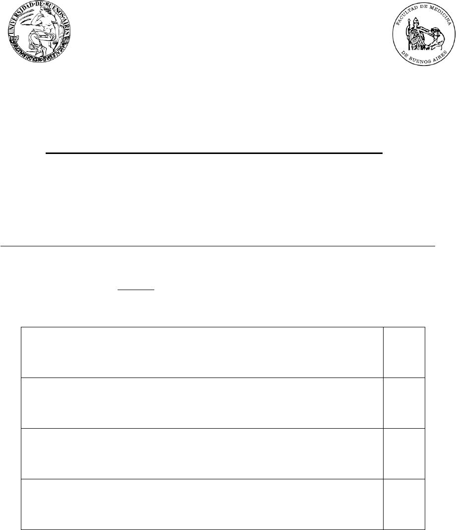 Universidad de Buenos Aires Facultad de Medicina III Cátedra de Anatomía Prof. Dr. José Luis Ciucci ACTIVIDAD TRABAJO PRACTICO N.º 3 Trabajo práctico N°13: mediastino-corazón-pericardio-esófago-cortes de tórax. Auxiliar docente: Rocío Becerra Supervisión JTP: Lorena Rey 1) El mediastino es un espacio que se encuentra entre las dos regiones pleuropulmonares, derecha e izquierda. Los límites de este espacio son (indique la opción correcta): Hacia anterior el esternón, hacia posterior columna vertebral, hacia los laterales las regiones pleuropulmonares, hacia superior la abertura superior del tórax y hacia inferior la cara superior del hígado. Hacia anterior el esternón, hacia posterior columna vertebral, hacia los laterales las regiones pleuropulmonares, hacia superior la abertura superior del tórax y hacia inferior la cara superior del diafragma. Hacia anterior el esternón, hacia posterior el esófago, hacia los laterales las regiones pleuropulmonares, hacia superior la abertura superior del tórax y hacia inferior la cara superior del diafragma. Hacia anterior el pericardio, hacia posterior columna vertebral, hacia los laterales las regiones pleuropulmonares, hacia superior la abertura superior del tórax y hacia inferior la cara superior del hígado. 2) Completar el siguiente texto: El espacio así delimitado como Mediastino, se divide a su vez en dos partes: un mediastino superior y un mediastino inferior, por una línea horizontal que pasa por la cara inferior de _______________________________________________________________. A su vez, el mediastino inferior se divide en tres espacios: el mediastino anterior, que queda comprendido entre el esternón y el______________; el mediastino medio, entre las dos hojas del pericardio y la _____________ hacia posterior; y el mediastino posterior entre_____________________________ y la columna vertebral hacia posterior. 3) I- Marcar con una cruz las estructuras que se encuentren comprendidas en el mediastino inferior y posterior: Esófago y nervios vagos, derecho e izquierdo Tráquea Corazón Aorta ascendente Aorta descendente Nervios esplácnicos mayor y menor Timo Conducto torácico Venas pulmonares Vena ácigos y hemiácigos II- Marcar con una cruz las estructuras que NO pertenezcan al mediastino superior Arteria subclavia derecha Arteria subclavia izquierda Arteria carótida común derecha Arteria carótida común izquierda Nervios vagos Esófago Tráquea Nervio laríngeo recurrente derecho Nervio laríngeo recurrente izquierdo 4) Indicar la opción correcta según corresponda en la siguiente imagen: Fig. 1: vista anterior del corazón I. ¿Qué cara del corazón podemos observar en esta imagen? Indicar con una cruz la opción correcta Cara esternocostal del corazón Cara diafragmática de corazón Base del corazón II. ¿Qué cámaras del corazón podemos ver en esta imagen? Ventrículo derecho (cruz verde), ventrículo izquierdo (cruz celeste), aurícula derecha (cruz rosa) Ventrículo derecho (cruz celeste), ventrículo izquierdo (cruz verde), prolongación de la aurícula derecha que corresponde a la orejuela derecha (cruz rosa) Ventrículo izquierdo (cruz celeste), ventrículo derecho (cruz rosa), orejuela derecha (cruz verde) Aurícula izquierda (cruz verde), aurícula derecha (cruz celeste), orejuela derecha (cruz celeste) III. ¿Qué grandes vasos están marcados en la imagen? El tilde verde en la imagen indica vena pulmonar, el amarillo la aorta, y el naranja la vena cava inferior El tilde verde en la imagen indica arteria pulmonar, el amarillo la aorta, y el naranja la vena cava superior El tilde verde en la imagen indica arteria pulmonar, el amarillo la aorta, y el naranja la vena pulmonar superior 5) Indicar la opción correcta según corresponda: Fig. 2: cara posteroinferior del corazón. I. ¿Qué caras podemos ver en esta imagen? Cara diafragmática y base Cara esternocostal y base Cara diafragmática y cara esternocostal II. ¿Qué cámaras del corazón están marcadas con cruces en la imagen? Cruz amarilla ventrículo izquierdo, cruz verde ventrículo derecho Cruz verde ventrículo izquierdo, cruz amarilla ventrículo derecho Cruz verde aurícula izquierda, cruz amarilla aurícula izquierda 6) El pericardio es un saco fibroseroso que envuelve al corazón y al origen de los grandes vasos que de él salen (o entran). Está formado por un saco fibroso, o pericardio fibroso y una envoltura serosa, o pericardio seroso. El pericardio seroso, como toda serosa, consta de dos hojas, una visceral y una parietal, aplicadas una contra la otra y que delimitan una cavidad virtual. El pericardio seroso además de envolver al corazón envaina a las arterias que de él salen y las venas que a él llegan, formando dos vainas; la vaina del pedículo arterial y la vaina del pedículo venoso. La vaina del pedículo venoso es muy irregular, porque se hunde en los espacios que separan entre sí los vasos de dicho pedículo, formando depresiones en fondo de saco. Uno de estos fondos de saco (el más ancho y profundo) es el seno oblicuo del pericardio. I- El seno oblicuo está limitado por (indicar la opción correcta): La cara posterior de la aurícula derecha y entre las dos venas pulmonares izquierdas por un lado y las venas pulmonares derechas por otro lado. La cara posterior de la aurícula izquierda y entre las dos venas pulmonares izquierdas por un lado y las venas pulmonares derechas por otro lado. La cara posterior del ventrículo izquierdo y entre las dos venas pulmonares izquierdas por un lado y las venas pulmonares derechas por otro lado. La vaina del pedículo venoso está separada de la vaina del pedículo arterias por una prolongación de la cavidad pericárdica en forma de conducto, que corresponde al seno transverso del pericardio. II- El seno transverso del pericardio está limitado por (indique la opción correcta): La cara posterior del pedículo arterial, hacia anterior; la cara posterior de las aurículas y l