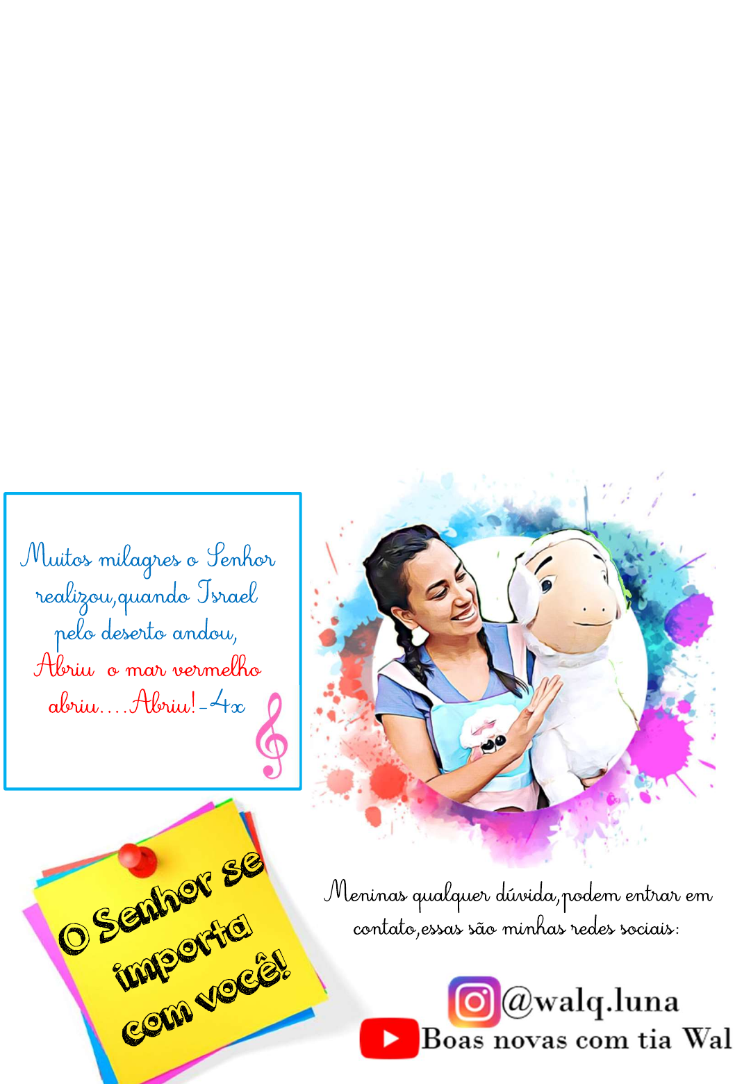 ESPAÇO DO LOUVOR:, Milagres no deserto- Minha vida é uma viagem Paz do Senhor! Como nosso Deus é maravilhoso...cuida da gente nos mínimos detalhes e hoje vamos falar sobre isso hoje , no espaço para os alvos a lição nos sugere ensinar a criança : Que a criança creia que temos um Deus que supre todas as nossas necessidades. Vamos continuar no mesmo tema da semana passda:CONFIANÇA!!!! Precisamos aprender a confiar neste Deus que nos surpreende e que cuida,pode ter certeza ELE SE IMPORTA COM VOCÊ! Confia! Boa aula,!Tia Wal
