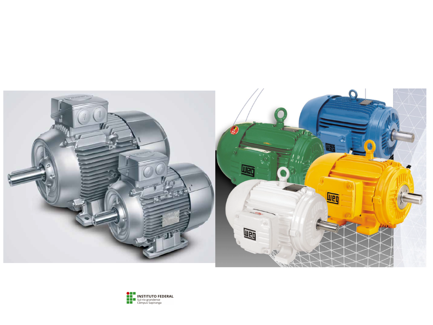 Motores de Indução Assíncronos Trifásicos Também comumente chamados: •MIT (Motor de Indução Trifásico) •Motor Rotor de Gaiola de Esquilo Prof. Eng. Paulo Lindenmeyer Características construtivas: Prof. Eng. Paulo Lindenmeyer •É construído por finas chapas de aço com alta permeabilidade magnética e pelo enrolamento de campo, cujas bobinas são colocadas em ranhuras. O enrolamento de campo, pode ter muitas configurações diferentes. A maneira como esse enrolamento é construído determina o número de polos do motor, se é mono ou trifásico e os diferentes níveis de tensão aos quais pode ser ligado. Suas pontas (terminais) são estendidas até uma caixa de terminais, onde é feita a conexão com a rede elétrica de alimentação. Estator : Estator completo com bobinas do enrolamento de campo Prof. Eng. Paulo Lindenmeyer Núcleo do Estator Carcaça •No caso mais comum, o rotor é do tipo Gaiola ou Gaiola de Esquilo. O rotor é constituído de condutores retilíneos interligados nas duas extremidades por anéis de curto-circuito, tendo o volume central preenchido por chapas de aço com alta permeabilidade magnética. Existe um outro tipo de rotor, dito bobinado, que possui bobinas de fio de cobre e estas tem seus terminais ligados a anéis deslizantes coletores, permitindo a inserção de elementos que auxiliem na partida do motor. Rotor : O rotor tipo Gaiola de Esquilo (Squirrel Cage), tem este nome devido sua semelhança de formato com rodas de exercício utilizadas para esquilos e hammsters de estimação mantidos em gaiolas. Prof. Eng. Paulo Lindenmeyer Rotor tipo Gaiola com condutores de alumínio Rotor tipo Gaiola com condutores de cobre Rotores tipo bobinado com anéis coletores (pouco comuns, não serão aqui abordados) Características Principais: ● Extrema robustez ● Baixa manutenção ● Baixo custo de aquisição e manutenção ● Alto torque de partida ● Disponível em uma grande faixa de potência (de 0,25 a 30.000 CV) ● Pode ser utilizado em muitas aplicações industriais ● Necessitam de dispositivos eletrônicos complexos (Inversores de Frequência) para controle de sua rotação ● Alto pico de corrente na partida ● Alto rendimento (eficiência) quando utilizado nas condições adequadas ● Baixo fator de potência (FP) – Desvantagem ● É tipo de motor mais utilizado na indústria, tanto numericamente quanto em potência instalada. ● Não produzem faíscas como motores CC Prof. Eng. Paulo Lindenmeyer A figura abaixo mostra os campos magnéticos formados pela alimentação trifásica em um motor de indução trifásico. O campo magnético de cada fase é representado por vetores (vermelho, azul claro e verde) e a soma vetorial destes gera o campo resultante (azul escuro). Observa-se que o campo resultante tem um efeito semelhante ao de um ímã girando dentro do rotor, produzindo um Campo Magnético Girante. A velocidade com que esse campo girante opera é chamada rotação síncrona (ns). Prof. Eng. Paulo Lindenmeyer ns= 120×f P A rotação síncrona nS é definida pela: ● Frequência da rede f , (60 Hz ou 50 Hz dependendo do país) ● Pela quantidade de polos P do enrolamento de campo do estator. A quantidade de polos de um motor é sempre par e é uma característica construtiva do motor Portanto a rotação síncrona nS de um motor de indução depende da frequência da rede alternada na qual o motor é ligado e do número de polos deste motor. A rotação síncrona irá também definir a rotação nominal de um motor nN (ou n ) como veremos adiante. A rotação nominal é a rotação do eixo do motor sob determinadas condições. [rpm] , (Rotações por Minuto) ns=(120×60)/2=3600rpm ns=(120×60)/6=1200rpm ns=(120×60)/4=1800rpm ns=(120×60)/8=900rpm ns=(120×60)/10=720rpm O número de polos (P) do motor depende da forma de execução dos enrolamentos do estator. Assim, pode-se teoricamente, construir motores com qualquer quantidade par de polos, porém comercialmente encontra-se apenas motores de 2, 4, 6, 8 ou 10 polos. Prof. Eng. Paulo Lindenmeyer A rotação do eixo do motor um motor de indução assíncrono sempre será menor que a rotação síncrona ( n < nS ). Esta diferença é denominada Escorregamento e é expressa em % da rotação síncrona ( nS )conforme a expressão abaixo: s= ns−n ns ×100 [%] , (porcento) Onde: nS é a rotação síncrona em rpm n é a rotação do eixo do motor em rpm O Escorregamento ( s ) sempre existirá e é inerente ao funcionamento do motor assíncrono (Rotação do eixo e do campo magnético do estator não síncronos). O escorregamento tipicamente é um valor entre 2% e 6% com carga mecânica nominal conectada ao eixo do motor. Pode chegar a valores muito baixos (0,5%) quando o motor estiver sem carga acoplada ao eixo. A rotação nominal deste motor é 1760 rpm. Como esta é sempre um pouco menor que a rotação síncrona concluímos que nS = 1800 rpm e que é um motor de 4 polos. s=1800−1760 1800 ×100=2,22% Placa de dados de um MIT Prof. Eng. Paulo Lindenmeyer A potência nominal de um motor de indução é a potência mecânica que este motor é capaz de entregar continuamente em seu eixo para a carga quando alimentado com tensão e frequência nominais. Por se tratar da potência na saída do motor e sendo do tipo mecânica, é muitas vezes expressa em CV ou HP. Estas unidades porém não fazem parte do S.I. ( Sist. Intern. de Unidades) sendo o correto expressar potência em W (Watt). Potência do MIT: 1 CV = 736 W = 0,736 kW 1 HP = 746 W = 0,746 kW Muitos fabricantes de motores, por simplificação, fazem em a seguinte aproximação: 1 CV = 1 HP = 750 W = 0,75 kW S=√3×V L×I L Pel=S×cosϕ Pmec=Pel−Pperdas Potência Aparente ( S ) entregue pela rede trifásica em [ VA ] Pmec Potência Mecânica ( Pmec ) entregue pelo motor à carga expressa em [CV] , [HP] ou [W] Prof. Eng. Paulo Lindenmeyer As principais informações obtidas nesta placa são apresentadas a seguir