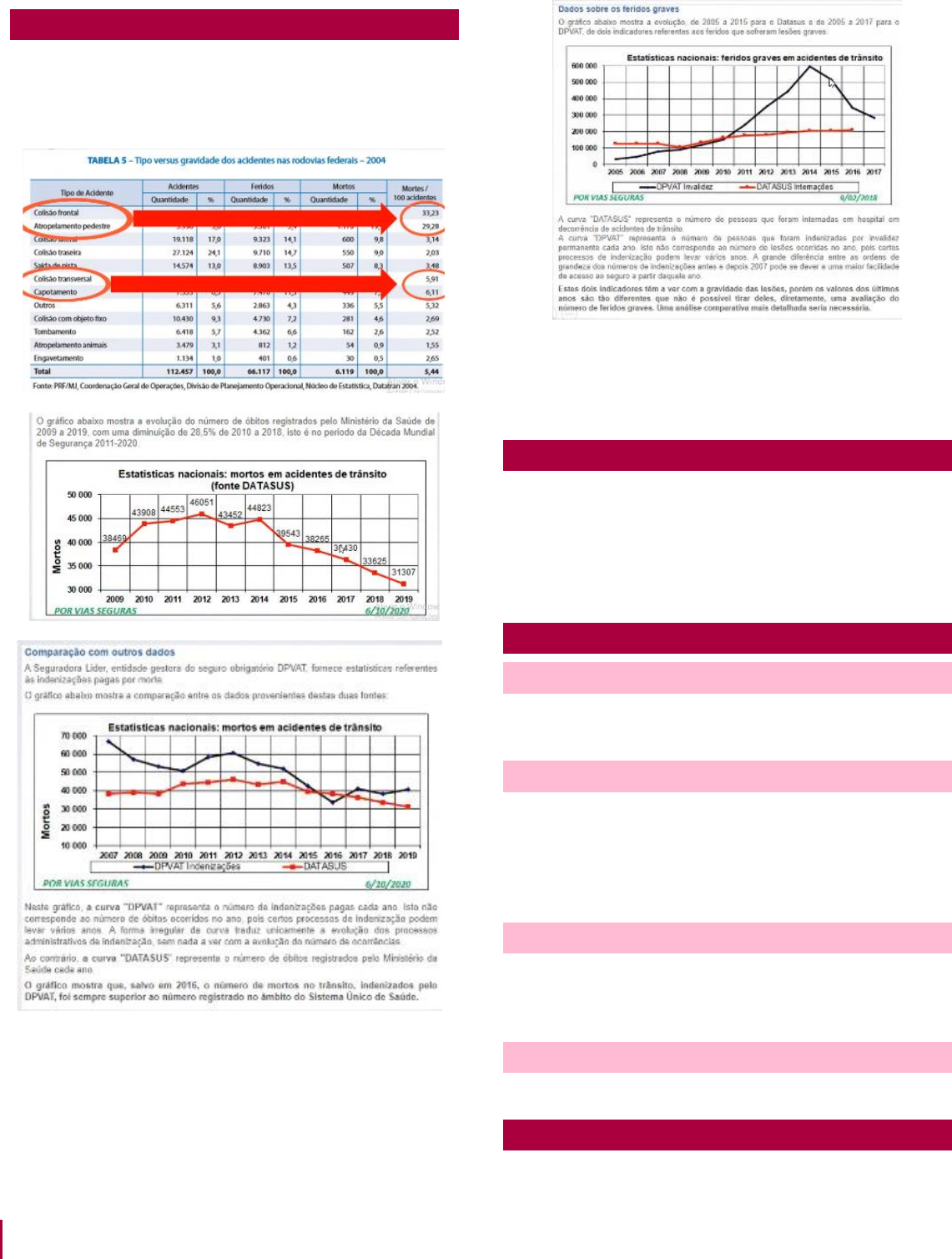 1 Lahyse de Oliveira e Oliveira – 2021.2 Politrauma e Lesões do Anel Pélvico EPIDEMIOLOGIA ⧫ No Brasil, 130.000 mortes por ano, 400.000 pacientes com sequelas graves, principal causa de morte em jovens ⧫ Mecanismo de trauma mais agressivos: colisão frontal, atropelamento de pedestre, colisão transversal e capotamento. ⧫ O número de indenizações sempre está maior que o número de mortes, pois os processos de liberações desses seguros são extensos, o que ocasiona na dispensa do seguro em um montante maior do que o número de mortos nos anos seguintes as mortes. ⧫ O reconhecimento de pessoas invalidas aumentou bastante em relação ao número de internações, pois as pessoas começaram a ter maior acesso as ferramentas de indenização através da tecnologia. CONCEITO ⧫ Síndrome com múltiplas lesões, com ISS > ou = 17 com reações sistêmicas (SRIS), que leva a disfunções de órgãos vitais, os quais não foram diretamente lesados. o Ex: o paciente pode ter uma disfunção renal decorrente de uma extensa lesão osteomuscular e com o rim anatomicamente integro. MECANISMOS DE ALTA ENERGIA QUEDAS ⧫ Adultos: queda de alturas maiores que 6 metros; ⧫ Crianças: queda maior que 3 metros OU 2-3x sua própria altura; ACIDENTES DE VEÍCULOS ⧫ Intrusão: penetração que acontece no impacto do veículo; o Intrusão > 30cm lado ocupante o Intrusão > 45cm qualquer local ⧫ Ejeção parcial ou completa ⧫ Morte no veículo, mesmo que seja de apenas uma. AUTO X PEDESTRE / BICICLETA ⧫ Arremesso; ⧫ Atropelo (“run over”); ⧫ Impacto com uma velocidade maior que 32km/h; MOTO X PEDESTRE / BICICLETA ⧫ Moto com uma velocidade maior que32km/h; INJURY SEVERITY SCORE (ISS) ⧫ É a soma do quadro das maiores notas das três regiões mais gravemente lesadas na Abbreviated Injury Scale (AIS); o Determinar as regiões corporais; 2 Lahyse de Oliveira e Oliveira – 2021.2 o Níveis de gravidade; ▪ Intratável: cabeça decepada; ▪ Ele pode ter mais de uma lesão no mesmo segmento, então ele ganha duas notas nesse segmento . ⧫ Cada região terá uma nota de acordo com a natureza da injuria ou gravidade da lesão. ⧫ Para calcular o ISS, eleva-se ao quadrado as três maiores do AIS e soma-se. ⧫ Existe uma correlação entre o cálculo do ISS e a gravidade do caso. o Se o ISS é menor que 15, há 0,7 a 1,9% de chance de mortalidade o Se está entre 16 a 24, há uma mortalidade de 5,3% o Maior que 24, há 29,3% de mortalidade; ⧫ Marco 0: é o momento do acidente; ⧫ 1ª hora: Depois do acidente, existe a Golden hour que é justamente a 1ª hora após o acidente. Ela apresenta há um pico de mortes quando as medidas de suporte adequadas não são tomadas. o O SAMU atua isso; ⧫ 2ª hora: Existe um pico na faixa das duas horas em que o paciente pode vir a óbito enquanto as lesões ainda estão sendo detectadas. ⧫ 4ª semana: após o controle das lesões iniciais, o paciente que sobrevive ao acidente é encaminhado para o suporte, onde ele passa por uma fase inflamatória muito grande. Nessas primeiras 3- 4 semanas, existe um pico de morte tardio por conta de lesões em órgãos nobres decorrente da injuria do trauma. o Geralmente o ambiente a UTI e CNPI ABORDAGEM INICIAL DO PACIENTE POLITRAUMATIZADO(ATLS) ⧫ Primeiro lesões com maior risco de vida; ⧫ Falta de confirmação do diagnóstico NÃO impede o tratamento; o Se você está na duvida se ouve fratura do membro e não tem como confirmar, deve-se imobilizar o membro; ⧫ Para iniciar o tratamento, a história detalhada não é essencial. A: VIAS ÁEREAS / COLUNA CERVICAL ⧫ Proteção e liberação de vias aéreas. ⧫ Proteção e estabilização da coluna cervical. o Dispositivos: COLAR CERVICAL: HEAD BLOCK: tira frontal e tira mentoniana que estabilizam a cabeça para evitar a laterização (quick lateral) durante o transporte. EM AMBIENTE HOSPITALAR ⧫ Todos esses dispositivos têm o objetivo de manter a integridade dessas linhas cervicais que são avaliadas pelo RX em ambiente intra- hospitalar. As estruturas observadas são: o Processo odontoide; o Atlas; o Linha longitudinal anterior; o Linha longitudinal posterior; o Processo espinhosos transversos; o Facetas; 3 Lahyse de Oliveira e Oliveira – 2021.2 B: RESPIRAÇÃO E VENTILAÇÃO O objetivo é qualificar a respiração: qual o padrão respiratório, está ventilando bem, dificuldade... TERMINOLOGIA DA RESPIRAÇÃO ⧫ Dispneia: dificuldade de respirar; ⧫ Eupneia: presente em indivíduo que respira normalmente (eupneico); ⧫ Taquipneia: aumento da frequência respiratória; ⧫ Bradipneia: redução da frequência respiratória; ⧫ Apneia: ausência de movimentos respiratórios; ⧫ Ortopneia: dispneia em decúbito, aliviada pelo menos parcialmente ao sentar ou pela elevação parcial do tronco; ⧫ Cheyne Stokes: caracterizada por períodos alternados de apneia e respiração rápida e profunda. O período de apneia pode durar 3-30 segundos.; ⧫ Kussmaul: respiração rápida, profunda e trabalhosa, sem pausa C: CIRCULAÇÃO / HEMORRAGIA ⧫ Inicialmente, sempre que a indício de choque, ele é sempre considerado hipovolêmico. A partir disso, deve se avaliar os graus de choque hipovolêmico e após a intervenção deve se estabelecer os padrões de resposta à ressuscitação CHOQUE HEMORRÁGICO – DIAGNÓSTICO Sinais: ⧫ Fluxo capilar periférico reduzido; ⧫ Pulso > 100bpm; ⧫ Pressão sistólica < 60mmHg; ⧫ Débito urinário < 1ml/kg/h; ⧫ Laboratorial: pH arterial elevado, base excesso (alcalose metabólica persistente), lactato plasmático elevado. GRAUS DE CHOQUE HIPOVOLÊMICO ⧫ Classe I: o paciente só é monitorado e não precisa de intervenção imediata. ⧫ Classe II (leve): as vezes ele está caminhando para a classe III ⧫ Classe III (moderado): precisa de sangue, mesmo que não se saiba a origem. ⧫ Classe IV (severo): sangue e cristaloide para mantê-lo vivo. A mensuração do sangue perdido é avaliada atra