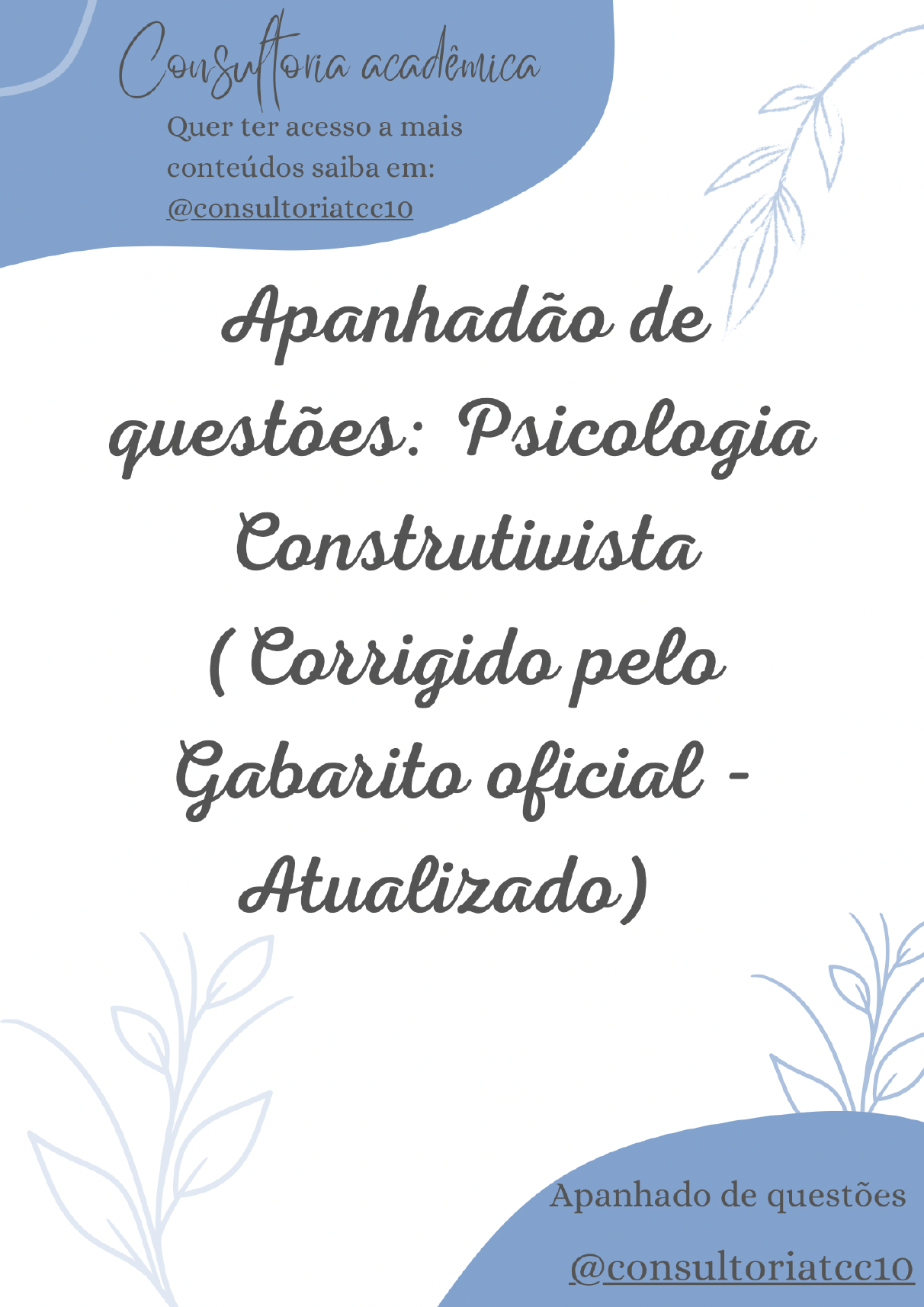 IMPORTANTE Data limite para aplicação desta prova: 17/06/2023 UNIP EAD Código da Prova: 123231041405 Curso: PEDAGOGIA Série: 5 Tipo: Substitutiva Aluno: 2186747 - FABRICIA ALMEIDA GONÇALVES OLIVEIRA I - Questões objetivas – valendo 10 pontos Gerada em: 15/06/2023 às 21h18 -------------------------------------------------------------------------------------------- ---------------- Instruções para a realização da prova: 1. Leia as questões com atenção. 2. Confira seu nome e RA e verifique se o caderno de questão e folha de respostas correspondem à sua disciplina. 3. Faça as marcações primeiro no caderno de questões e depois repasse para a folha de respostas. 4. Serão consideradas somente as marcações feitas na folha de respostas. 5. Não se esqueça de assinar a folha de respostas. 6. Utilize caneta preta para preencher a folha de respostas. 7. Preencha todo o espaço da bolha referente à alternativa escolhida, a caneta, conforme instruções: não rasure, não preencha X, não ultrapasse os limites para preenchimento. 8. Preste atenção para não deixar nenhuma questão sem assinalar. 9. Só assinale uma alternativa por questão. 10. Não se esqueça de responder às questões discursivas, quando houver, e de entregar a folha de respostas para o tutor do polo presencial, devidamente assinada. 11. Não é permitido consulta a nenhum material durante a prova, exceto quando indicado o uso do material de apoio. 12. Lembre-se de confirmar sua presença através da assinatura digital (login e senha). Boa prova! -------------------------------------------------------------------------------------------- ---------------- Questões de múltipla escolha Disciplina: 554360 - PSICOLOGIA SÓCIO-INTERACIONISTA Questão 1: A gênese da inteligência para Wallon é genética e organicamente social e nesse sentido, a Teoria do Desenvolvimento Cognitivo, é centrada na psicogênese da pessoa completa. Assim, o desenvolvimento não é linear e sim: A) Com predominância afetiva em todas as alternâncias. B) Com alternâncias entre afetivo e cognitivo. C) Com conflitos internos fortes, que impedem o continuar do desenvolvimento. D) Com um meio conflitante que bloqueia a afetividade de penetrar na psique do indivíduo. E) Com conflitos chamados de fatores dinamogênicos. Mobile User Questão 2: O desenvolvimento da linguagem é uma grande conquista para o ser humano, na perspectiva de Vygotsky. Para ele, quando o pensamento e a linguagem se encontram é que as funções superiores se desenvolvem qualitativamente. Diante disso, assinale alternativa correta sobre pré-intelectual. As afirmativas devem estar relacionadas a essa etapa A) Até conquistar a linguagem, uma criança não consegue dizer o que quer, não consegue exprimir suas emoções e necessidades, a não ser por meio do choro. B) À medida que cresce e aprende a se movimentar a criança passa a utilizar alguns instrumentos para resolver problemas de ordem prática. C) O brinquedo tem uma relação estreita com essa fase do desenvolvimento humano, porém, antes de mostrar essa relação, convém expor o que é brinquedo na visão do pensador. D) O pensar e comunicar é uma marca dessa etapa. E) o percurso trilhado pelo sujeito para aprender aquilo que ainda não sabe ou não consegue fazer. Questão 3: As fases de desenvolvimento psicológico devem respeitar a cultura na qual as crianças estão inseridas, assim, não se trata do estabelecimento de idades rigidamente fixadas por este teórico, mas em períodos descritos em função das características que podem ser identificadas em cada criança, com certa regularidade, durante o desenvolvimento infantil. Portanto, podemos afirmar que na fase Impulsivo Emocional: I. A afetividade é marcante, pois a criança se nutre pelo olhar, II. Tem como característica a formação do eu corporal, III. Acontece com frequência os conflitos pessoais, a criança apresenta momentos de oposição. IV. São identificadas sensibilidades interoceptiva e proprioceptiva Assinale a alternativa correta A) I, II, III e IV. B) Apenas I e III. C) Apenas II e IV. D) Apenas I, II e IV. E) I e II. Questão 4: A obra de Vygotsky, deixa claro alguns conceitos sobre o desenvolvimento humano e não podemos compreendê-lo sem levar em consideração alguns conceitos. Portanto: A) A maneira como alguém aprende e se desenvolve segue uma sequência ao longo dos tempos. B) podemos afirmar que a maturação biológica ou genética do humano é suficiente para explicar o desenvolvimento dele. C) Para Vygotsky, sem aprendizado, determinados processos não ocorreriam. D) O desenvolvimento acontece independente da aquisição da escrita. E) Para Vygotsky, o ambiente fundamental para o desenvolvimento da criança é a família. Primeiro ambiente de contato da criança. Questão 5: Wallon, dentre várias ações de transformar a sociedade, a qual pudesse ser mais justa e igualitária, podemos afirmar que ele. I. Participou do Movimento da Escola Nova, II. Dedicou a conhecer a infância e o funcionamento psicológico, III. Dedicou em entender o distúrbio dos adultos e idosos, em uma época que não valorizava os mais velhos e não produtivos. Assinale a alternativa correta. A) I, II e III. B) I e III. C) II e III. D) Apenas a III. E) Apenas a I e II Questão 6: Wallon, no período entre 1946 e 1962, tornou-se vice-presidente do Grupo Francês da Educação Nova, instituição que ajudou a revolucionar o sistema de ensino daquele país e da qual foi presidente de 1946 até sua morte. Sua experiência e interesse voltados à área pedagógica fizeram com que: A) Elaborasse uma lei educacional. B) Elaborasse um projeto para reforma educacional. C) Ele montasse uma escola modelo. D) Ele montasse um simpósio de educação. E) Ele convidasse Vygotsky para elaborar um projeto de educação revolucionário. Questão 7: Enquanto produção sócio-histórica, a escrita pode ser considerada um sistema desenvolvido e complex