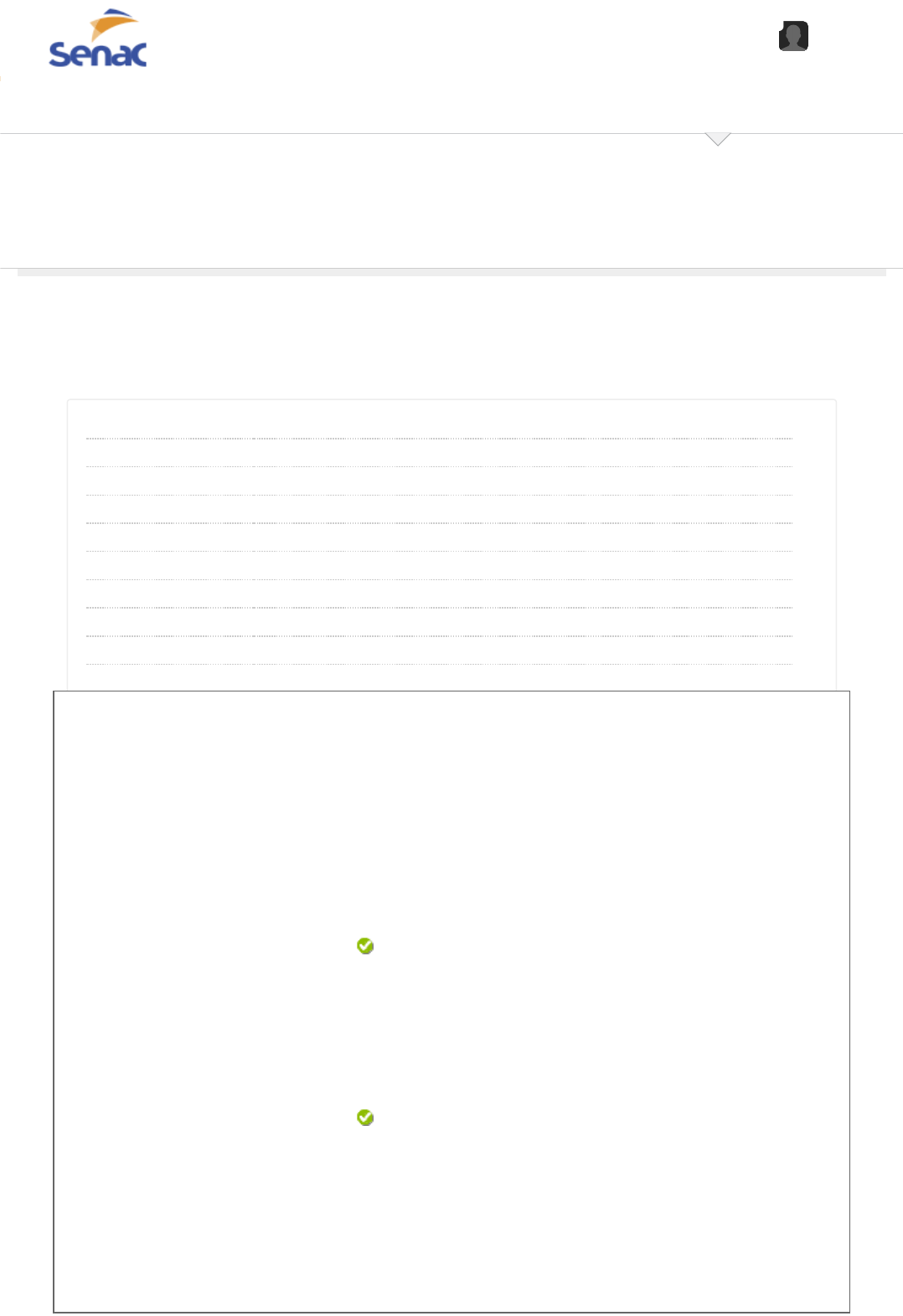 Revisar envio do teste: Clique aqui para iniciar o Quiz STADCAS4DA_2401-2401-695438 2401-ARQUITETURA DE SOFTWARE Quiz REVISAR ENVIO DO TESTE: CLIQUE AQUI PARA INICIAR O QUIZ Usuário GUILHERME BATISTA PEREIRA DOS SANTOS Curso 2401-ARQUITETURA DE SOFTWARE Teste Clique aqui para iniciar o Quiz Iniciado 03/06/24 18:31 Enviado 03/06/24 18:44 Data de vencimento 19/06/24 23:59 Status Completada Resultado da tentativa 10 em 10 pontos Tempo decorrido 13 minutos Resultados exibidos Todas as respostas, Respostas enviadas, Respostas corretas, Comentários Pergunta 1 Quando estamos projetando um sistema, é importante ficarmos atentos à segurança da informação. Nesse contexto, existe um conceito que direciona a segurança, onde se garante que a informação não esteja disponível, nem seja revelada a quaisquer entidades ou processos não autorizados. Esse conceito que estamos falando é: Resposta Selecionada: d. Confidencialidade Respostas: a. Disponibilidade b. Não-repúdio c. Integridade d. Confidencialidade e. Confiabilidade Comentário da resposta: Resposta correta: d) Confidencialidade. Confidencialidade é o modo de garan�r que a informação estará acessível apenas para pessoas autorizadas. Sala de Aula Tutoriais 1 em 1 pontos GUILHERME BATISTA PEREIRA DOS SANTOS 128 03/06/2024, 18:44 Revisar envio do teste: Clique aqui para iniciar o Quiz &ndash... https://senacsp.blackboard.com/webapps/assessment/review/review.jsp?attempt_id=_38036353_1&course_id=_241616_1&content_id=_109477… 1/7 https://senacsp.blackboard.com/webapps/blackboard/execute/courseMain?course_id=_241616_1 https://senacsp.blackboard.com/webapps/blackboard/content/listContent.jsp?course_id=_241616_1&content_id=_10947697_1&mode=reset https://www.ead.senac.br/ https://senacsp.blackboard.com/webapps/portal/execute/tabs/tabAction?tab_tab_group_id=_260_1 https://senacsp.blackboard.com/webapps/portal/execute/tabs/tabAction?tab_tab_group_id=_210_1 https://senacsp.blackboard.com/webapps/login/?action=logout Pergunta 2 Um dos principais pontos na fase de planejamento da criação de um software é a definição de sua arquitetura. Essa decisão pode influenciar em vários pontos do desenvolvimento. Com isso em mente, podemos afirmar que a arquitetura tem como objetivo principal prover um projeto que: Resposta Selecionada: a. implemente e possa ser verificado se cumpre os requisitos de so�ware. Respostas: a. implemente e possa ser verificado se cumpre os requisitos de so�ware. b. defina a linguagem de programação a ser u�lizada na codificação. c. permita definir as habilidades da equipe que vai desenvolver o so�ware. d. defina qual será o modo de redundância a ser u�lizado pelo sistema. e. determine o �po e parâmetros de compilação a serem u�lizados. Comentário da resposta: Resposta correta: a) implemente e possa ser verificado se cumpre os requisitos de software. A arquitetura é a base para implementação e validação de todos os requisitos. Pergunta 3 Padrões de projetos são sugestões para soluções reutilizáveis em projetos em comum, conforme a programação orientada a objetos, de acordo com Gamma. Foram definidos três tipos de padrões de projetos trabalhando com categorias. Considere as três afirmativas a seguir e, na sequência, informe qual está correta. I. Padrões de projeto de criação são aqueles que abstraem o processo de instanciação de objetos; II. Padrões de projeto estruturais se preocupam com a maneira como os objetos são compostos para formar estruturas maiores; III. Padrões de projeto comportamentais se preocupam com algoritmos, as responsabilidades e interações entre os objetos. 1 em 1 pontos 1 em 1 pontos 03/06/2024, 18:44 Revisar envio do teste: Clique aqui para iniciar o Quiz &ndash... https://senacsp.blackboard.com/webapps/assessment/review/review.jsp?attempt_id=_38036353_1&course_id=_241616_1&content_id=_109477… 2/7 Resposta Selecionada: e. I, II e III estão corretas. Respostas: a. Apenas a afirma�va I está correta. b. Apenas as afirma�vas I e II estão corretas. c. Apenas as afirma�vas I e III estão corretas. d. Apenas as afirma�vas II e III estão corretas. e. I, II e III estão corretas. Comentário da resposta: Resposta correta: e) I, II e III estão corretas. Criação está se referindo a como o objeto é criado; estrutural, em como o objeto é organizado; e comportamental, em como ele é executado. Pergunta 4 O REST (REpresentational State Transfer) é um padrão arquitetural utilizado, dentre outras coisas, para implementar web service. Ele é muito utilizado devido à sua flexibilidade e simplicidade. Para trabalhar com REST, é importante conhecer os conceitos por trás dos verbos HTTP, onde a comunicação é baseada. São exemplos de verbos HTTP: Resposta Selecionada: d. GET e PUT. Respostas: a. SELECT e UPDATE. b. GET e UPDATE. c. INSERT e UPDATE. d. GET e PUT. e. SELECT e PUT. Comentário da resposta: Resposta correta: d) GET e PUT. Select, update e insert são instruções do SQL. O REST trabalha em linhas gerais com os verbos POST, PUT, GET e DELETE. Pergunta 5 Arquiteturas de sistemas estão sempre evoluindo, à medida que o mercado modifica sua dinâmica. Uma das arquiteturas mais utilizadas em sistemas corporativos é a arquitetura baseada em componentes. Nesse tipo de arquitetura, Resposta Selecionada: b. componentes são independentes, no sen�do de que não há interferência entre eles. 1 em 1 pontos 1 em 1 pontos 03/06/2024, 18:44 Revisar envio do teste: Clique aqui para iniciar o Quiz &ndash... https://senacsp.blackboard.com/webapps/assessment/review/review.jsp?attempt_id=_38036353_1&course_id=_241616_1&content_id=_109477… 3/7 Respostas: a. detalhes da implementação de cada componente são abertos, ou seja, conhecidos por todos os demais componentes do sistema. b. componentes são independentes, no sen�do de que não há interferência entre eles. c. a subs�tuição de um componente sempre obriga a realização de