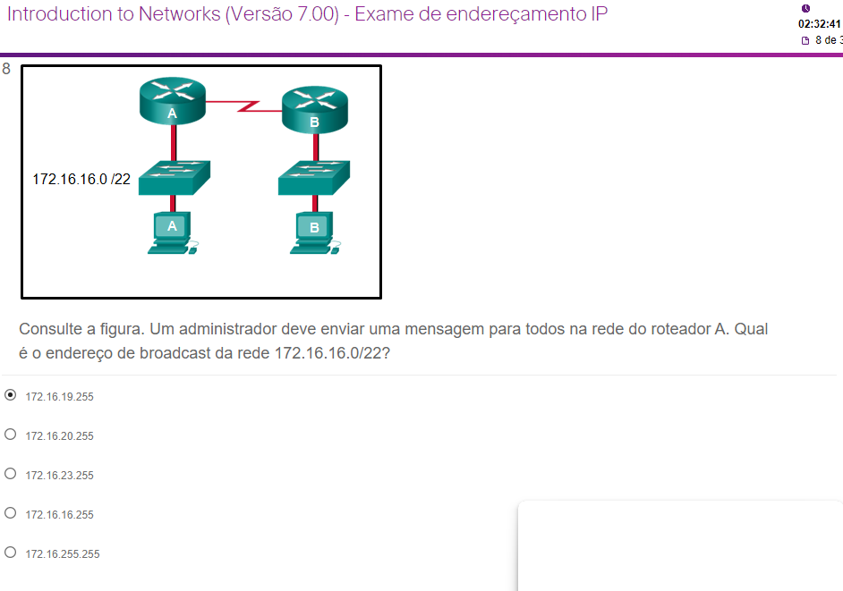 Endereço de Broadcast na Rede 172.16.16.0/22