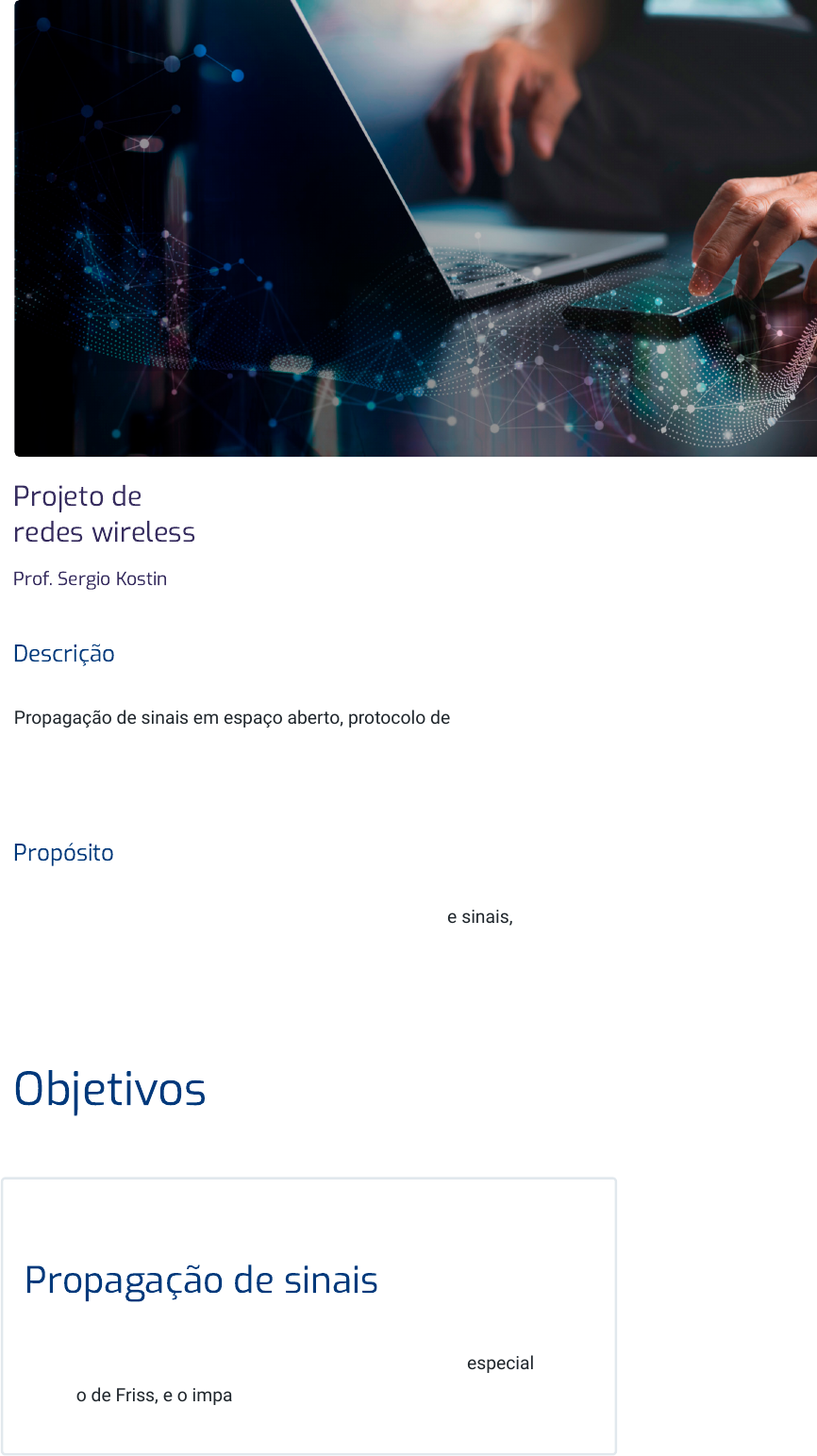 Projeto de redes wireless Prof. Sergio Kostin Descrição Propagação de sinais em espaço aberto, protocolo de rede sem fio 802.11, segurança em redes WLAN e dimensionamento e projeto de redes. Propósito Introduzir os conhecimentos iniciais de propagação de sinais, o funcionamento da rede WLAN 802.11 e os aspectos relacionados à sua segurança. Saber como dimensionar e projetar redes WLAN. Objetivos Módulo 1 Propagação de sinais Definir as características de propagação de sinais, em especial do modelo de Friss, e o impacto do ambiente na propagação de sinais. Módulo 2 Redes de sem �o Identificar o funcionamento das redes WLAN 802.11 e suas principais funcionalidades. Módulo 3 Segurança de redes Identificar os principais ataques em redes WLAN 802.11 e os protocolos de segurança mais importantes. Módulo 4 Projeto de redes Definir os principais requisitos presentes nos diferentes projetos de rede WLAN 802.11 e abordagens referentes a esse tipo de projeto. Introdução Houve um tempo que a rede sem fio era um “plus” em sua rede, seja ela doméstica ou corporativa. Atualmente, o cenário alterou- se. A internet das coisas, os smartphones e os computadores portáteis são mais utilizados que os computadores de mesa; além disso, o principal meio de acesso à internet desse dispositivos é a rede sem fio. Para minimizar o tamanho da carcaça, os principais fabricantes de notebooks removeram o adaptador de rede do dispositivo. Se o usuário quiser acesso à rede com fio, por exemplo, terá de comprar um adaptador externo – provavelmente, um USB. Paralelamente, a evolução tecnológica fez o desempenho do wi-fi aproximar-se – e muito – do obtido pela rede tradicional. Esse cenário fez com que a rede sem fio tenha mudado seu papel de coadjuvante para protagonista em termos de importância. Com a profusão de equipamentos e as peculiaridades da propagação do sinal de rádio, para manter o bom desempenho é necessário aplicar técnicas que garantam o bom desempenho dessas redes. É justamente isso que veremos neste conteúdo. 1 - Propagação de sinais Ao �nal deste módulo, você será capaz de de�nir as características de propagação de sinais, em especial do modelo de Friss, e o impacto do ambiente na propagação de sinais. Características de propagação de sinais Efeitos físicos da propagação de radiofrequência Atualmente, redes e sistemas de comunicações sem fio são projetados e operados para atuar em diversos cenários e aplicações. Exemplo A telefonia celular prevê o funcionamento de seus terminais não só em ambientes externos e internos, mas também possibilita a operação em mobilidade – até mesmo a altas velocidades. Outro exemplo representativo atual é o das redes locais sem fio: mesmo que sejam usualmente associadas a aplicações no interior de edificações e tenham uma mobilidade restrita, elas aos poucos também vêm sendo utilizadas na rua. Em todos esses cenários, o desempenho de tais sistemas é fortemente dependente do comportamento dos sinais de rádio no canal de propagação respectivo, que é tipicamente variante no tempo. A variabilidade desse canal é usualmente dividida de forma didática em duas partes: Variação de grande escala É aquela observada em intervalos largos de tempo ou, de maneira equivalente, em longos deslocamentos de um terminal móvel, por exemplo. Flutuações rápidas ou de curta duração Sobrepõem-se ao comportamento mediano da resposta do canal; por outro lado, elas caracterizam a variação de pequena escala. Modelos de propagação As variações de grande ou larga escala da resposta do canal estão associadas ao comportamento médio de decaimento da potência do sinal de radiofrequência (RF), com a distância e os demais parâmetros relevantes do sistema e do cenário ou ambiente em questão. Nesse contexto, destacam-se os modelos mais conhecidos e utilizados de propagação. As abordagens típicas são: A análise das variações de pequena escala tem forte relação com dois fenômenos típicos do canal de propagação radiomóvel: Os múltiplos percursos de propagação Ele também é chamado de multipercursos. O efeito Doppler Associado à variação temporal da resposta de canal. O impacto desses mecanismos no desempenho de redes de dados e de sistemas de transmissão digital é significativo, podendo levar a aumentos da taxa de erro de bits acima da capacidade de correção ou compensação do sistema. A escolha das técnicas de mitigação dos efeitos do canal a serem incorporadas em sistemas sem fio digitais é função principalmente das características de pequena escala do canal. Modelo de Friss Dos modelos de grande escala, o de Friss é um dos mais importantes e mais utilizados no estudo de propagação de sinais. Tendo isso em vista, Semiempírica (ou empírica, ou experimental). Determinística (ou teórica, ou por simulação). Modelagem numérica das equações de Maxwell ou de Helmholtz propriamente ditas no cenário conhecido. vamos estudá-lo de forma mais detalhada a seguir. Quando uma onda de rádio atinge uma superfície que não é um perfeito isolante nem um perfeito condutor, alguma parte da energia passa pelo material, outra é absorvida e o restante, refletida. Essas características físicas dão origem a quatro tipos de rotas, através das quais um sinal de RF pode percorrer do transmissor para o receptor. Como mostra a figura 1, esses caminhos podem ser: Figura 1 - Mecanismos de propagação. Direto (ou linha de visada) Figura 1 - Mecanismos de propagação. Re�etido Figura 1 - Mecanismos de propagação. Difratado Figura 1 - Mecanismos de propagação. Espalhado Eis a fórmula de Friss: Fórmula de Friss. Ela é utilizada quando existe um caminho sem obstáculos (LOS) entre o transmissor e o receptor. Na fórmula: LOS Line of sign ou linha de visada. Pr É a potência de recepção. Pt É a potência de transmissão. Gt É o ganho da antena de tran