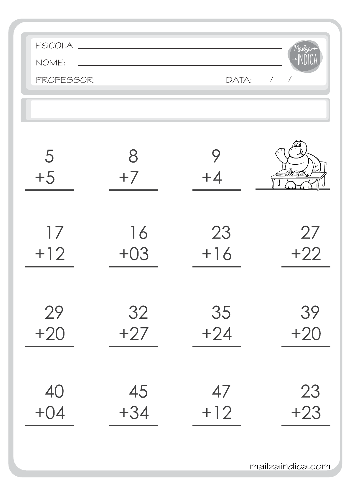 ESCOLA: NOME: PROFESSOR: DATA: indica MailzaESCOLA: NOME: PROFESSOR: DATA: indica Mailza mailzaindica.com ADIÇÃO 1 - Resolva. Página 1