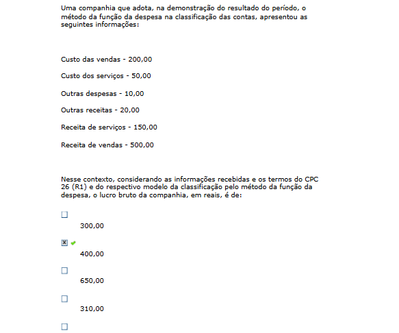 Questão 10/10 - Contabilidade Financeira Ler em voz alta Ao analisar os resultados de uma empresa, é importante compreender que o faturamento não repr