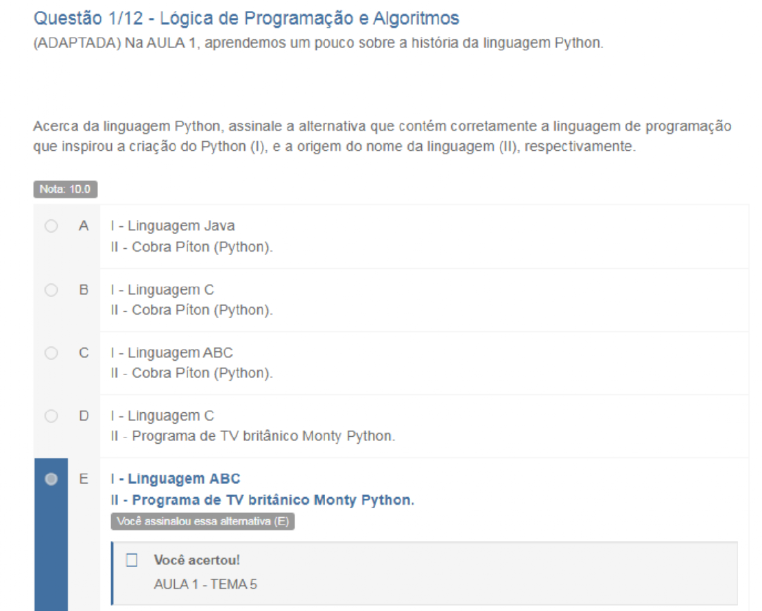 (ADAPTADA) Na AULA 1, aprendemos um pouco sobre a história da linguagem Python.
