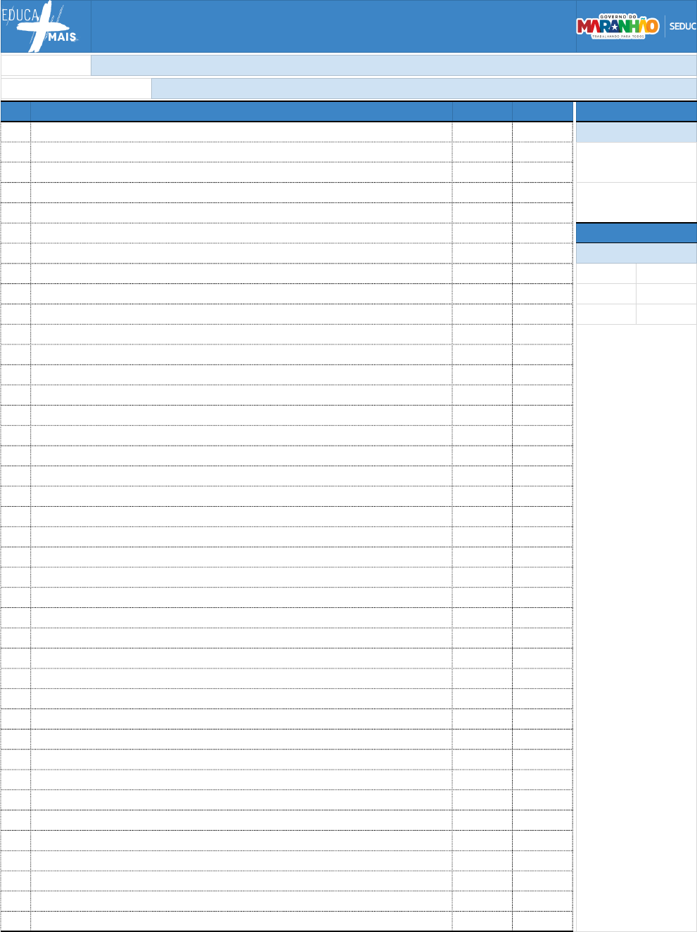 PLANO DE AÇÃO - CLUBE DE PROTAGONISMO NOME DO CLUBE PADRINHO OU MADRINHA DO CLUBE Nº INTEGRANTES (NOME E SOBRENOME) SÉRIE TURMA TOTAL DE INTEGRANTES QUANTIDADE DE INTEGRANTES 1 GERAL 2 3 4 5 6 7 POR SÉRIE 8 1ª SÉRIE 9 2ª SÉRIE 10 3ª SÉRIE 11 12 13 14 15 16 17 18 19 20 21 22 23 24 25 26 27 28 29 30 31 32 33 34 35 36 37 38 39 40 0 0 0 0