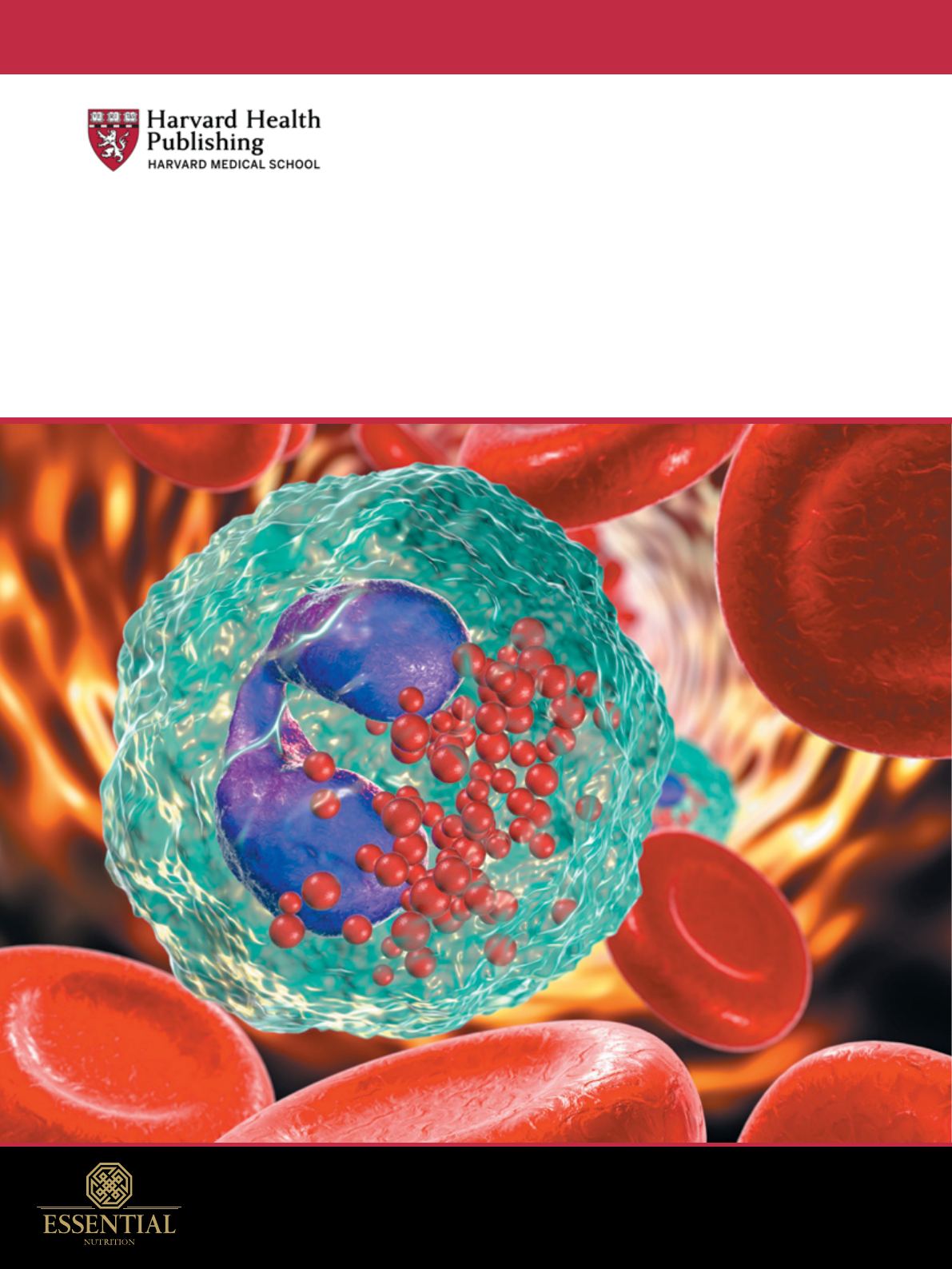 Combatendo a Inflamação COMO PARAR O DANO ANTES QUE COMPROMETA A SUA SAÚDE Special Health Report VERSÃO EM INGLÊS DE HARVARD HEALTH PUBLISHING, COPYRIGHT 2020. TRADUÇÃO CRIADA E CEDIDA COMO CORTESIA POR ESSENTIA GROUP. Aviso de direitos autorais ESTE RELATÓRIO TEM DIREITOS AUTORAIS DA HARVARD UNIVERSITY E É PROTEGIDO POR DIREITOS AUTORAIS DOS EUA E INTERNACIONAIS. TODOS OS DIREITOS RESERVADOS. Aqui está o que você PODE fazer: Imprimir uma cópia e encaminhar este “original” para a família. • Você tem permissão para ter uma cópia desta publicação em seu computador a qualquer momento (você não pode colocá-la em uma rede, a menos que tenha adquirido uma licença para fazê-lo). Se você pagou por mais cópias, então você pode ter esse número de cópias nos computadores a qualquer momento. • Copiar, ocasionalmente, algumas páginas para dar a amigos, familiares ou colegas. • Somos registrados no Centro de Liberação de Direitos Autorais - Copyright Clearance Center (CCC). Você pode cumprir as leis de direitos autorais pagando royalties sobre as cópias que você fizer de trechos do material. Mas nem mesmo o CCC pode autorizar a fotocópia de capa a capa ou o envio eletrônico para vendas em atacado. • Se você deseja distribuir cópias desta publicação, seja em formato impresso ou eletrônico, para outras pessoas regularmente, pergunte-nos sobre descontos por atacado ou oportunidades de licenciamento. Você pode negociar um contrato, por uma única taxa, que permitirá a distribuição legal de fotocópias ou cópias eletrônicas para terceiros. Aqui está o que você NÃO PODE fazer (sem permissão garantida): • Fazer ou encaminhar cópias por e-mail de uma publicação inteira. A lei prevê uma quantidade muito limitada de cópias, que são comumente referidas como “uso justo” ou “fair use”. No entanto, a fotocópia de capa a capa é proibida. • A transmissão eletrônica de uma obra protegida por direitos autorais é o equivalente legal de fotocopiá-la (e assim, publicá-la na Internet ou em um banco de dados eletrônico) e, dessa forma, não é permitida. • Copiar e distribuir passagens rotineiramente. • Republicar ou reembalar o conteúdo. • Alguns editores devem recorrer a ações judiciais para proteger as suas publicações. A Harvard Health Publishing gostaria de eliminar a necessidade de tais processos, ajudando a educar os clientes. • Esperamos que essa nota tenha ajudado a explicar o que é legal e o que não é. Harvard Health Publishing | Harvard Medical School | 4 Blackfan Circle, 4th Floor | Boston, MA 02115 Para maiores informações Solicitações de permissões Harvard Health Publishing www.health.harvard.edu/permissions Para licenciamento, taxas ou vendas corporativas HHP_licensing@hms.harvard.edu, ou visite-nos em www.health.harvard.edu/licensing Harvard Health Publishing Harvard Institutes of Medicine, 4th Floor - 4 Blackfan Circle Boston, MA 02115 www.health.harvard.edu Versão em inglês de Harvard Health Publishing, copyright 2020. Tradução criada e cedida como cortesia por Essentia Group. | Combatendo a Inflamação Conteúdo Inflamação: amigo ou inimigo (ou ambos)? .................................2 Inflamação aguda ...................................................................................... 4 Inflamação crônica .................................................................................... 6 A biologia da resposta imune .............................................................. 7 Quando uma inflamação boa se torna ruim .............................. 12 Quando o sistema imune reage de forma exagerada ...................12 Quando o sistema imune não consegue voltar ao normal ...........13 Quando o sistema imune falha ............................................................13 Quando a inflamação é consequência do estilo de vida ou do envelhecimento ........................................................................................14 Inflamação e respostas alérgicas: quando seu corpo se rebela contra o seu ambiente ................................................. 17 Alergias ....................................................................................................... 17 Eczema ........................................................................................................18 Asma ...........................................................................................................20 Inflamação e doença autoimune: quando o seu corpo luta contra si mesmo .................................23 Doença inflamatória intestinal (DII) .....................................................23 Lúpus ..........................................................................................................24 Esclerose múltipla ...................................................................................24 Psoríase .....................................................................................................25 Artrite reumatoide ...................................................................................25 Diabetes tipo 1 ..........................................................................................27 SEÇÃO ESPECIAL - Combate à inflamação crônica com mudanças no estilo de vida ........................................................ 29 Inflamação e o coração .................................................................38 Inflamação e o seu cérebro .......................................................... 41 O sistema de defesa do cérebro ................................................. 41 AVC .............................................................................................................42 Demência, incluindo doença de Alzheimer .....................................43 Depressão .................................................................................................44 Inflam