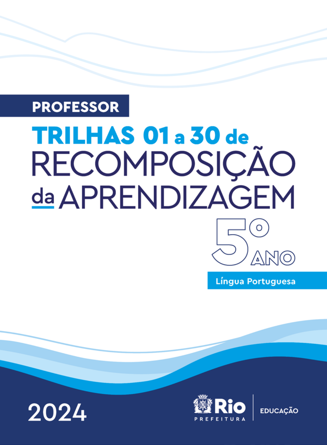 Professor e Professora dos Anos Iniciais, bem-vindos ao Reforço Rio 2024! Com empenho, seguimos juntos na Recomposição da Aprendizagem dos Estudantes da Rede Pública Municipal de Ensino do Rio de Janeiro! Como estratégia de material específico do Reforço Rio, daremos continuidade às Trilhas Pedagógicas, que visam a recompor habilidades que ainda precisam ser consolidadas nos componentes curriculares de Língua Portuguesa (LP) e Matemática (MAT). As Trilhas de Recomposição de Aprendizagem estão baseadas em habilidades e descritores constantes nas seguintes matrizes – Curricular Carioca e BNCC. A edição anual de 2024 viabiliza, para professores e coordenadores pedagógicos, o monitoramento da aplicação do material e o acompanhamento que os regentes farão sobre o crescimento de suas turmas, do 3º ao 5º ano do Ensino Fundamental I. Cada trilha é composta por 2 (duas) aulas, que avançam gradativamente em atividades propostas. Para os Anos Iniciais, são aplicadas duas Trilhas por semana, uma de Matemática (com duas aulas-trilha), outra de Língua Portuguesa (com duas aulas-trilha). Ao todo, são 60 (sessenta) trilhas disponíveis – 30 de MAT e 30 de LP, a serem utilizadas ao longo do ano letivo, nos diversos arranjos pedagógicos para reforço escolar; a exemplo disso, a estratégia do Estudo Orientado da Parte Diversificada da Matriz Curricular Carioca. Professor, além das Trilhas serem disponibilizadas on-line, você também recebe o material impresso, exclusivo para adaptações ao seu planejamento e às suas práticas. Nesse material são ofertados comentários acerca das propostas, sugestões de desdobramentos, possibilidades de aprofundamento das habilidades, gabarito das questões e proposições para ampliação de processos de diagnose e autoavaliação. Recompor a aprendizagem significa oportunizar aos estudantes a exposição intencional e pedagógica às habilidades essenciais que foram evidenciadas como críticas nas Atividades Diagnósticas. Pressupõe uma série de ações articuladas, de reorganização pedagógica, com foco nas proposições que atendem às necessidades de aprendizagens de todos os estudantes! Desejamos um 2024 de sucesso e realizações! Vamos juntos, recompondo! Atenciosamente, Equipe Reforço Rio E/SUBE/CEF CARLA ANDREA DIAS CELESTINO SAULO MARCOS ALBUQUERQUE ARAÚJO JUNIOR KARLA MONIKE MOREIRA GOMES ÁLVARO CHIANELLI DE AZEREDO ARAÚJO COORDENADORIA DE ENSINO FUNDAMENTAL ÁLVARO CHIANELLI DE AZEREDO ARAÚJO MÁRCIA ROMUALDO DA SILVA LEVY STELLA BIOLCHINI NEUMANN TÂMORA BIANCA FIDELIS FERREIRA REFORÇO RIO CEF RODOLPHO DE MORAES PEREIRA CURADORIA DAS TRILHAS DE LÍNGUA PORTUGUESA DO 5º ANO/ 2024 STELLA BIOLCHINI NEUMANN REVISÃO TÉCNICA E ORTOGRÁFICA CONTATOS E/SUBE/CEF CORDENADORIA DE ENSINO FUNDAMENTAL Telefones: 2976–2308/ 2076–2315 cefsme@rioeduca.net reforco_rio@rioeduca.net SECRETARIA MUNICIPAL DE EDUCAÇÃO EDUARDO SANTOS GILMAR MEDEIROS JULIANA PEGAS DIAGRAMAÇÃO ZIT GRÁFICA E EDITORA IMPRESSÃO IMPRESSÃO ANA PAULA MASSONETTO SCHNEIDER DE MELLO PRESIDÊNCIA ROSANE AFFONSO CHEFIA DE GABINETE ROSÂNGELA DE FÁTIMA DIAS DIRETORIA DE ADMINISTRAÇÃO E FINANÇAS EDUARDO GUEDES DIRETORIA DE MÍDIA E EDUCAÇÃO SIMONE MONTEIRO ASSESSORIA DE ARTICULAÇÃO PEDAGÓGICA MARCELO SALERNO ALOYSIO NEVES ELIZA RIZO DANIEL NOGUEIRA TATIANA VIDAL ANTÔNIO CHACAR FRATA SOARES ANDRÉ LEÃO EDUARDO DUVAL NÚCLEO ARTES GRÁFICAS E ANIMAÇÃO MULTIRIO EDUARDO PAES PREFEITURA DA CIDADE DO RIO DE JANEIRO RENAN FERREIRINHA SECRETARIA MUNICIPAL DE EDUCAÇÃO ADRIANO CARNEIRO GIGLIO SUBSECRETARIA DE ENSINO LÍNGUA PORTUGUESA TRILHA 01 • Localizar informações explícitas, literalmente expressas no texto. 5 TRILHA 02 • Inferir o sentido de uma palavra ou expressão no texto. 8 TRILHA 03 • Inferir o sentido de palavra ou expressão a partir do contexto. 11 TRILHA 04 • Reconhecer os elementos que compõem uma narrativa e o conflito gerador. 14 TRILHA 05 • Reconhecer os elementos que compõem uma narrativa e o conflito gerador. 17 TRILHA 06 • Inferir o sentido de palavra ou expressão a partir do contexto. 20 TRILHA 07 • Reconhecer as relações entre partes de um texto, identificando os recursos coesivos que contribuem para a sua continuidade. 23 TRILHA 08 • Utilizar diferentes tipos de requadro e balão; legendas; recursos gráficos; onomatopeias. 26 TRILHA 09 • Distinguir um fato da opinião. 29 TRILHA 10 • Inferir informações em textos. 32 TRILHA 11 • Identificar a finalidade de textos de diferentes gêneros textuais. 35 TRILHA 12 • Identificar as marcas linguísticas que evidenciam o locutor e o interlocutor de um texto. 38 TRILHA 13 • Interpretar recursos gráficos não verbais, relacionando-os a outras informações apresentadas em textos e entendendo a combinação desses elementos na construção da mensagem como um todo . 41 TRILHA 14 • Identificar as relações de causa e consequência. 44 TRILHA 15 • Reconhecer os sinais de pontuação e outras notações como marcas da expressividade em um texto, identificando efeitos de sentido de seus usos. 47 TRILHA 16 • Estabelecer relações entre partes de um texto, identificando repetições e/ou substituições que contribuem para sua continuidade. 51 TRILHA 17 • Distinguir um fato de uma opinião. 56 TRILHA 18 • Empregar adequadamente os sinais de pontuação, inclusive como marcas de expressividade. 59 TRILHA 19 • Reconhecer o efeito de humor. 62 Professor, nesta trilha vamos utilizar a habilidade localizar informações explícitas, literalmente expressas no texto. As informações explícitas são aquelas manifestadas pelo autor no próprio texto. Desse modo, não é preciso que o leitor faça muitas reflexões, ou que leve muito tempo para notá-las, pois as informações estão escritas, nítidas, claras e objetivas. Professor, retome com os estudantes a ideia de que, para localizar uma informação explícita no texto, é essencial que se a