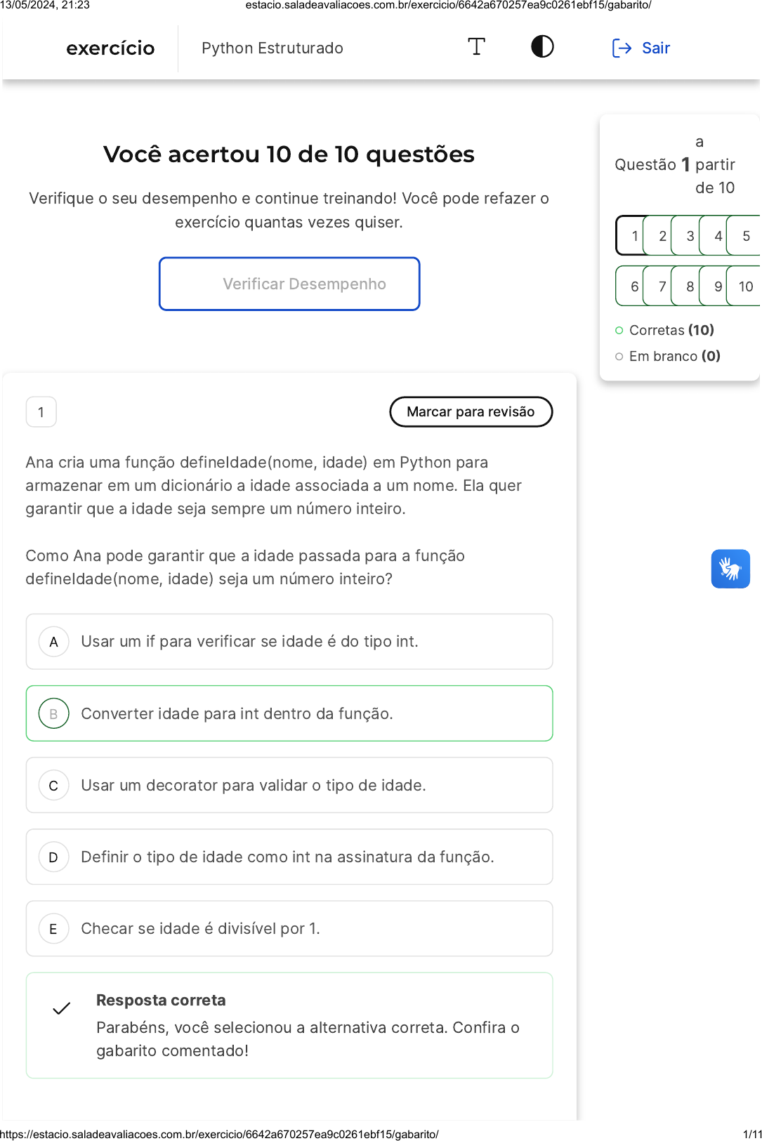 13/05/2024, 21:23 estacio.saladeavaliacoes.com.br/exercicio/6642a670257ea9c0261ebf15/gabarito/