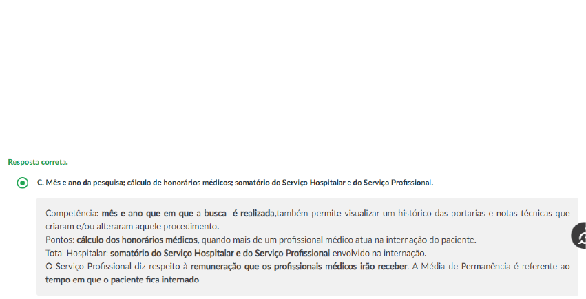 4. O SIGTAP é um instrumento fundamental para o setor de faturamento, ao passo que permite a geração de informações pertinentes às contas hospitalares. Em relação ao acesso ao SIGTAP e aos campos disponíveis para preenchimento, assinale a alternativa com as definições/funções corretas dos campos Competência, Pontos e Total Hospitalar, respectivamente. image1.png