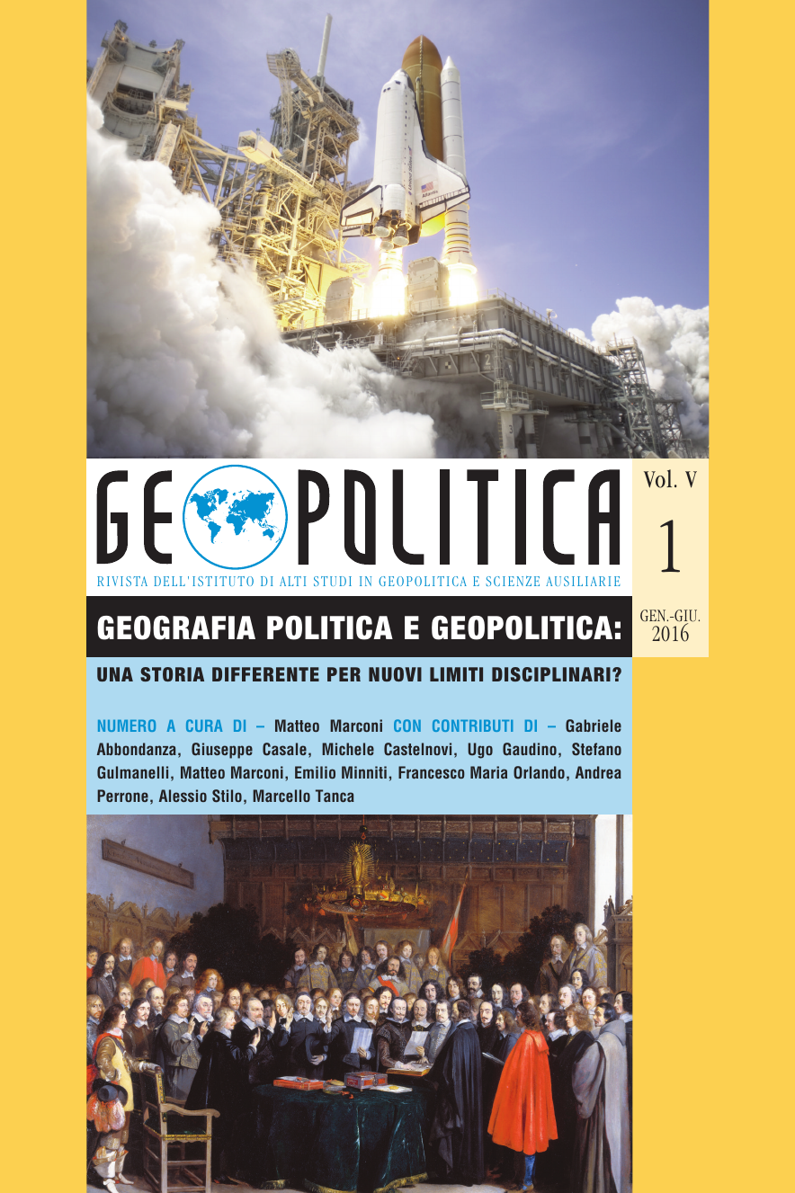 UNA STORIA DIFFERENTE PER NUOVI LIMITI DISCIPLINARI? NUMERO A CURA DI – Matteo Marconi CON CONTRIBUTI DI – Gabriele Abbondanza, Giuseppe Casale, Michele Castelnovi, Ugo Gaudino, Stefano Gulmanelli, Matteo Marconi, Emilio Minniti, Francesco Maria Orlando, Andrea Perrone, Alessio Stilo, Marcello Tanca 1 Vol. V GEOGRAFIA POLITICA E GEOPOLITICA: R I V I S TA D E L L ' I S T I T U T O D I A LT I S T U D I I N G E O P O L I T I C A E S C I E N Z E A U S I L I A R I E GEN.-GIU. 2016 FOCUS Il senso politico della territorialità ne La France de l’Est di Paul Vidal de la Blache (e dintorni)________________________________9 MARCELLO TANCA Gli esordi della geografia politica italiana e gli scritti di Ernesto Massi _______31 ANDREA PERRONE Ernesto Massi e Karl Haushofer: la scienza alla conquista della politica ______61 MATTEO MARCONI La nascita della geopolitica ebraica: Franz Rosenzweig e l’esperienza del confine __________________________123 FRANCESCO MARIA ORLANDO Intellettuali e politica estera negli Stati Uniti: Owen Lattimore e la geopolitica americana tra le due guerre _____________141 ALESSIO STILO Prendere, dividere, produrre: il nomos di Carl Schmitt e la nascita dell’ordinamento__________________163 UGO GAUDINO Occidente: cartografia di un concetto tra geografia politica ed esistenzialismo _____________________________179 EMILIO MINNITI L’ossimoro neocon e Machiavelli: l’“idealismo realistico” dell’empire building americano __________________195 GIUSEPPE CASALE La geopolitica cinese come approccio alternativo al “Westphalian System” (da Machiavelli a Hume) _____________________225 MICHELE CASTELNOVI ./.. Vol.V, N˚1 – Gennaio–Giugno 2016 I N D I C E G E O P O L I T I C A – R I V I S T A S E M E S T R A L E D E L L ’ I S A G V o l . V , N ˚ 1 G e n . - G i u . , 2 0 1 6 ORIZZONTI Geopolitica dell’affiliazione partitica in Australia: un approccio quantitativo _______________________________________251 GABRIELE ABBONDANZA Australia: ritorno nell’anglosfera? _________________________________275 STEFANO GULMANELLI ? Vol.V, N˚1 – Gennaio–Giugno 2016 I N D I C E G E O P O L I T I C A – R I V I S T A S E M E S T R A L E D E L L ’ I S A G V o l . V , N ˚ 1 G e n . - G i u . , 2 0 1 6 Rivista semestrale pubblicata da AVATAR Editions per conto di Istituto di Alti Studi in Geopolitica e Scienze Ausiliarie (IsAG) Sito: www.istituto-geopolitica.eu Sito: www.geopolitica-rivista.org Email: direzione@geopolitica-rivista.org Acquisti e abbonamenti: pagina 6 Sede sociale e direzione: Istituto di Alti Studi in Geopolitica e Scienze Ausiliarie (IsAG) Piazza dei Navigatori 22 – 00147 Roma – Italia T: +39 334 111 7081 Editore [Publisher]: AVATAR Editions SEDE SOCIALE [REGISTERED OFFICE]: 5 Cranbrooke – The Grange – Newcastle Road, Lucan, Co. Dublin K78 T889, Irlanda Contatto Italia: Posta elettronica: avataritalia@avatareditions.com Sito: www.avatareditions.com Vendita in linea: www.avatardiffusion.com Published by AVATAR Editions Cartografie a cura di Lorenzo Giovannini © Iconografia: Diritti riservati e collezioni private © Istituto di Alti Studi in Geopolitica e Scienze Ausiliarie (IsAG) 07/2016 © AVATAR Editions 07/2016 ISBN: 978-1-907847-36-3 ISSN: 2009-9193 Progetto Grafico & Impaginazione ATELIER TATENOKAÏ tatenokai@avatareditions.com Stampato nell’Unione Europea da avatar Geopolitica. Rivista di Alti Studi in Geopolitica e Scienze Ausiliarie Vol.V, N˚1 – Gennaio–Giugno 2016 I N F O G E O P O L I T I C A – R I V I S T A S E M E S T R A L E D E L L ’ I S A G V o l . V , N ˚ 1 G e n . - G i u . , 2 0 1 6 Geopolitica è la rivista dell’Istituto di Alti Studi in Geopolitica e Scienze Ausiliarie (IsAG) di Roma. L’IsAG è un’associazione di promozione sociale le cui finalità sono la promozione dello studio della geopolitica e dell’informazione intorno alla politica estera in Italia. Per maggiori informazioni sull’IsAG: http://www.istituto-geopolitica.eu ORGANIGRAMMA DELLA RIVISTA DIRETTORE: Tiberio Graziani. CONDIRETTORI: Matteo Marconi, Daniele Scalea. REDATTORI: Nicola Fatone, Anastasia Latini. CARTOGRAFO: Lorenzo Giovannini. COMITATO SCIENTIFICO NAZIONALE: Diego Abenante (Università di Trieste), Paolo Bargiacchi (Università Kore di Enna), Antonello F. Biagini (Università di Roma Sapienza), Luisa Bonesio (Università di Pavia), Alfredo Canavero (Università degli Studi di Milano), Emidio Diodato (Università per Stranieri di Perugia), Eugenio Di Rienzo (Università di Roma Sapienza), Carlo Jean (LUISS, Roma), Gianfranco Lizza (Università di Roma Sapienza), Fabio Mini (Esercito Italiano), Geminello Preterossi (Università degli Studi di Salerno), Sergio Romano (Università Bocconi di Milano), Biancamaria Scarcia Amoretti (Università di Roma Sapienza), Paolo Sellari (Università di Roma Sapienza), Maurizio Vernassa (Università di Pisa). COMITATO SCIENTIFICO INTERNAZIONALE: Anis Bajrektarevic (IMC Krems, Vienna), Miguel A. Barrios (Escuela de Politicas Públicas), Evgenij P. Bažanov (Accademia Diplomatica, Federazione Russa), Côme Carpentier de Gourdon (Euro-Asia Institute), Maria do Céu Pinto (Universidade do Minho, Braga), Aymeric Chauprade (Realpolitik.tv), Kiyul Chung (Università Tsinghua, Pechino), Michel Chossudovsky (University of Ottawa), Vladimir A. Dergačëv (Istituto di Geopolitica Dergačëv), Marcelo Gullo (Escuela Superiore de Guerra, Buenos Aires), Vagif A. Gusejnov (Istituto di Analisi e Studi Strategici, Mosca), Rouben Karapetian (Fondazione “Davidank”), Philip Kelly (Emporia State University, Kansas), Ernest G. Kočetov (Accademia Pubblica di Scienze della Geoeconomia e della Globalistica), Hans Köchler (Università di Innsbruck), Jurij V. Krupnov (Istituto di Demografia, Migrazioni e Sviluppo Regionale, Mosca), Vladimir Kulikov (WPF “Dialogue of Civilizations”), John Laughland (Institut de la Démocratie et de la Coopération, Parigi), Luiz A. da Vianna Moniz Bandeira (Universidade de Brasil