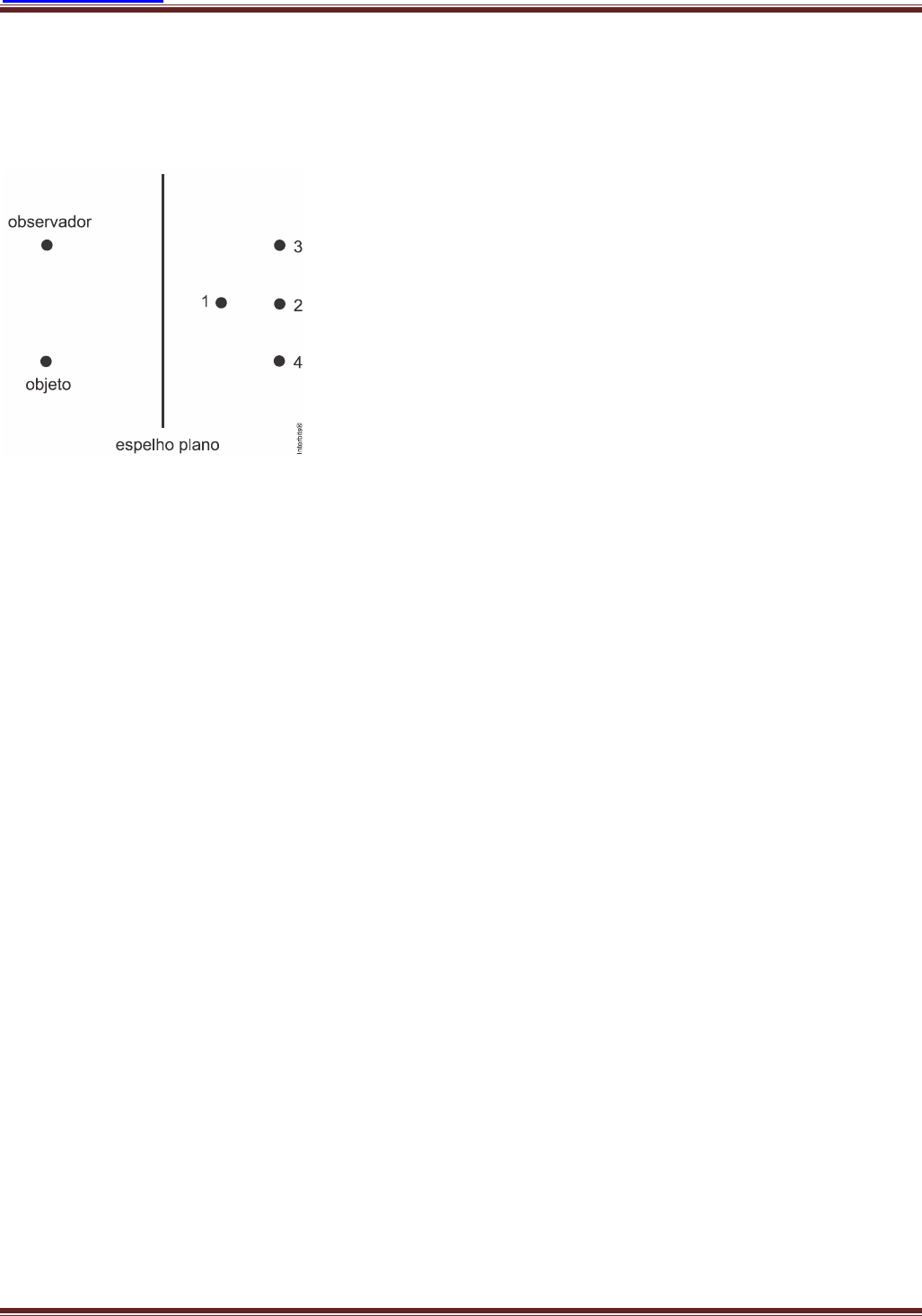 www.fisicafacil.net Lista de óptica – Espelhos Planos Física aula a aula para alunos do ensino médio – Veja como funciona no site do prof. Hélder Página 1 Espelhos Planos Nível 1 1) (cftmg) Analise o esquema abaixo referente a um espelho plano. A imagem do objeto que será vista pelo observador localiza-se no ponto a) 1 b) 2 c) 3 d) 4 2) (Uemg) Um espelho reflete raios de luz que nele incidem. Se usássemos os espelhos para refletir, quantas reflexões interessantes poderíamos fazer. Enquanto a filosofia se incumbe de reflexões internas, que incidem e voltam para dentro da pessoa, um espelho trata de reflexões externas. Mas, como escreveu Luiz Vilela, “você verá.” Você está diante de um espelho plano, vendo-se totalmente. Num certo instante, e é disso que é feita a vida, de instantes, você se aproxima do espelho a 1,5m / s e está a 2,0m de distância do espelho. Nesse instante, a sua imagem, fornecida pelo espelho, estará: a) a 2,0m de distância do espelho, com uma velocidade de 3,0m / s em relação a você. b) a 2,0m de distância do espelho, com uma velocidade de 1,5m / s em relação a você. c) a uma distância maior que 2,0m do espelho, com uma velocidade de 3,0m / s em relação ao espelho. d) a uma distância menor que 2,0m do espelho, com uma velocidade de 1,5m / s em relação ao espelho. 3) (Uece) Dois raios de luz coplanares incidem sobre um espelho plano. O primeiro raio incide normalmente no espelho e o segundo, tem um ângulo de incidência 30 .° Considere que o espelho é girado de modo que o segundo raio passe a ter incidência normal. Nessa nova configuração o primeiro raio passa a ter ângulo de incidência igual a a) 15 .° b) 60 .° c) 30 .° d) 90 .° www.fisicafacil.net Lista de óptica – Espelhos Planos Física aula a aula para alunos do ensino médio – Veja como funciona no site do prof. Hélder Página 2 4) (Unesp) Uma pessoa está parada numa calçada plana e horizontal diante de um espelho plano vertical E pendurado na fachada de uma loja. A figura representa a visão de cima da região. Olhando para o espelho, a pessoa pode ver a imagem de um motociclista e de sua motocicleta que passam pela rua com velocidade constante V = 0,8 m/s, em uma trajetória retilínea paralela à calçada, conforme indica a linha tracejada. Considerando que o ponto O na figura represente a posição dos olhos da pessoa parada na calçada, é correto afirmar que ela poderá ver a imagem por inteiro do motociclista e de sua motocicleta refletida no espelho durante um intervalo de tempo, em segundos, igual a a) 2. b) 3. c) 4. d) 5. e) 1. 5) (Unifor) Ao acordar pela manhã, Camilla levantou-se e saiu em direção perpendicular ao espelho plano colado à parede de seu quarto, com velocidade constante de 45,0 cm / s. Nesta situação, pode-se afirmar que a) a imagem de Camilla aproximou-se dela a 45,0 cm / s. b) a imagem de Camilla aproximou-se do espelho a 90,0 cm / s. c) a imagem de Camilla aproximou-se dela a 90,0 cm / s. d) a imagem de Camilla afasta-se do espelho a 45,0 cm / s. e) a imagem de Camilla afasta-se dela a 90,0 cm / s. 6) (Uern) Na noite do réveillon de 2013, Lucas estava usando uma camisa com o ano estampado na mesma. Ao visualizá-la através da imagem refletida em um espelho plano, o número do ano em questão observado por Lucas se apresentava da seguinte forma a) b) c) d) www.fisicafacil.net Lista de óptica – Espelhos Planos Física aula a aula para alunos do ensino médio – Veja como funciona no site do prof. Hélder Página 3 7) (Unicamp) A figura abaixo mostra um espelho retrovisor plano na lateral esquerda de um carro. O espelho está disposto verticalmente e a altura do seu centro coincide com a altura dos olhos do motorista. Os pontos da figura pertencem a um plano horizontal que passa pelo centro do espelho. Nesse caso, os pontos que podem ser vistos pelo motorista são: a) 1, 4, 5 e 9. b) 4, 7, 8 e 9. c) 1, 2, 5 e 9. d) 2, 5, 6 e 9 8) (ifce) Um garoto parado na rua vê sua imagem refletida por um espelho plano preso verticalmente na traseira de um ônibus que se afasta com velocidade escalar constante de 36 km/h. Em relação ao garoto e ao ônibus, as velocidades da imagem são, respectivamente, a) 20 m/s e 10 m/s. b) Zero e 10 m/s. c) 20 m/s e zero. d) 10 m/s e 20 m/s e) 20 m/s e 20 m/s. .9) (Uerj) As superfícies refletoras de dois espelhos planos, E1 e E2, formam um ângulo α. O valor numérico deste ângulo corresponde a quatro vezes o número de imagens formadas. Determine α. 10) (UFMG) Uma vela está sobre uma mesa, na frente de um espelho plano, inclinado, como representado nesta figura: www.fisicafacil.net Lista de óptica – Espelhos Planos Física aula a aula para alunos do ensino médio – Veja como funciona no site do prof. Hélder Página 4 Assinale a alternativa cujo diagrama representa CORRETAMENTE a formação da imagem do objeto, nessa situação. 11) - (Esam - RN) Na figura a seguir, considere: El - espelho plano vertical E2 - espelho plano horizontal r1 r2 e r3 - segmentos de um raio luminoso que incide sucessivamente em E1 e E2 Nas condições indicadas, quanto valem, respectivamente, os ângulos θ1 e θ2 ? 12) Observe a figura: Em um dia de céu claro, o Sol estava no horizonte (0°) às 6 h da manhã. Às 12 h, ele se encontrava no zênite (90°). A que horas a luz solar, refletida no espelhinho plano M deitado sobre o solo, atingiu o ponto P? www.fisicafacil.net Lista de óptica – Espelhos Planos Física aula a aula para alunos do ensino médio – Veja como funciona no site do prof. Hélder Página 5 13) O esquema abaixo representa um homem de frente para um espelho plano S, vertical, e de costas para uma árvore P. Qual deverá ser o comprimento mínimo do espelho para que o homem possa ver nele a imagem completa da árvore? 14) Diante de dois espelhos planos que formam entre suas superfícies refletoras um ângulo de 90°, um rapaz coloca um relógio, cujo painel é dotado de traços no