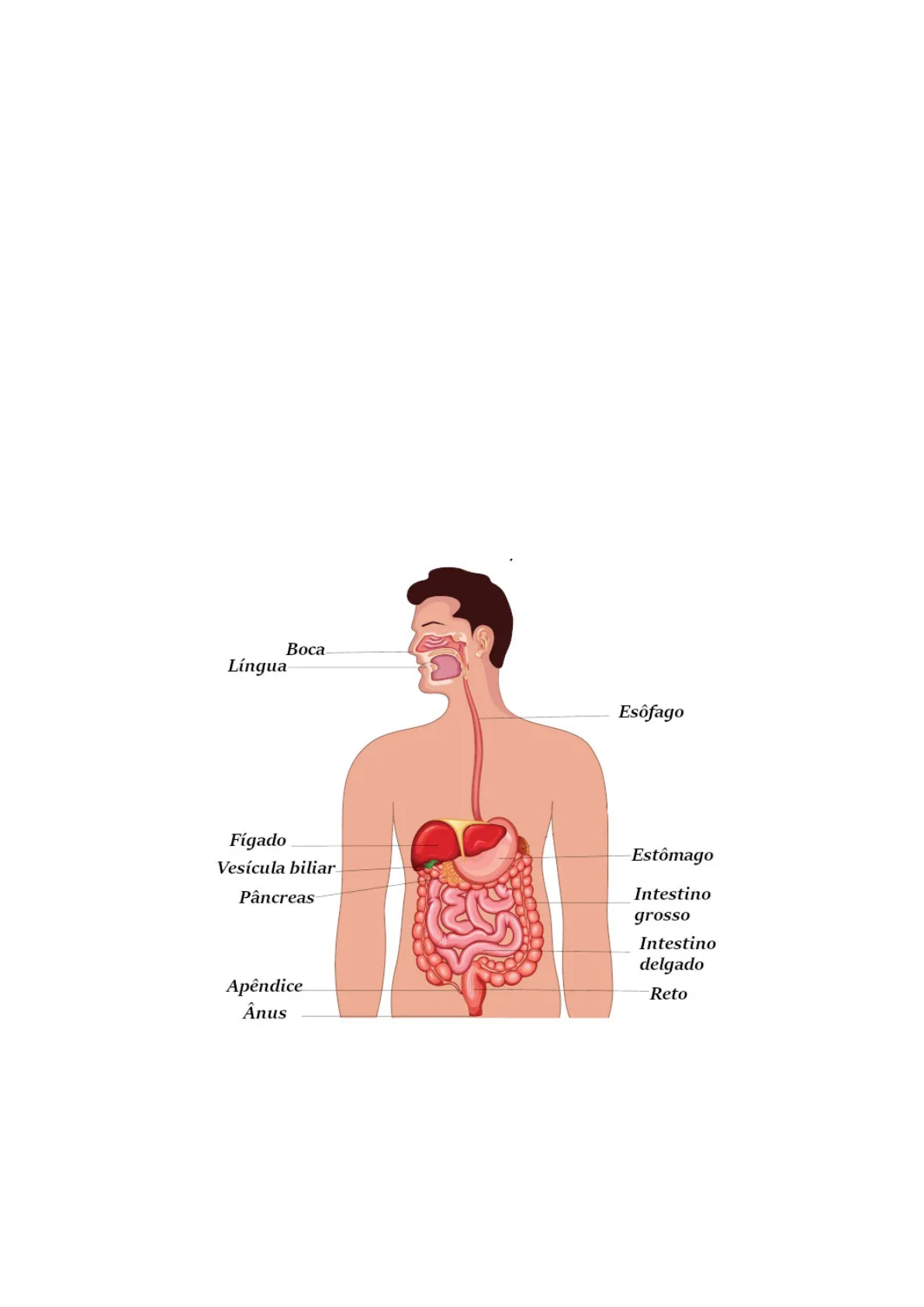 ATIVIDADE ESCOLAR SOBRE OS NUTRIENTES E O SISTEMA DIGESTIVO DOS SERES HUMANOS I. INTRODUÇÃO: O sistema digestivo é uma maravilha complexa do corpo humano responsável por processar alimentos e extrair os nutrientes essenciais para sustentar a vida. Este sistema é composto por órgãos especializados que trabalham em conjunto para quebrar os alimentos em substâncias mais simples que podem ser absorvidas e utilizadas pelo corpo. Os órgãos que compõem o sistema digestório são a boca, a faringe, o esôfago, o estômago, o intestino delgado, o intestino grosso e o ânus. Já as glândulas acessórias desse sistema são as glândulas salivares, o pâncreas e o fígado. Fonte: Brasil Escola (2024) O processo digestivo começa na boca, onde os alimentos são mastigados e misturados com saliva, que contém enzimas que começam a decompor os carboidratos. Em seguida, o alimento passa pela faringe e desce pelo esôfago até chegar ao estômago. No estômago, os alimentos são misturados com suco gástrico, que contém ácido clorídrico e enzimas digestivas, como a pepsina, para ajudar a quebrar as proteínas. Do estômago, o alimento parcialmente digerido passa para o intestino delgado, onde a maior parte da digestão e absorção ocorre. Aqui, enzimas pancreáticas e bile produzidas pelo fígado ajudam a decompor ainda mais os alimentos em nutrientes como carboidratos, proteínas e gorduras. As paredes do intestino delgado são revestidas por vilosidades intestinais, pequenas projeções que aumentam a área de absorção, permitindo que os nutrientes sejam absorvidos pela corrente sanguínea e transportados para as células do corpo. O que resta do alimento não digerido passa para o intestino grosso, onde a água e os eletrólitos são absorvidos, formando fezes. As bactérias benéficas no intestino grosso também desempenham um papel importante na digestão, fermentando certas substâncias e produzindo vitaminas essenciais. Finalmente, as fezes são armazenadas no reto até serem eliminadas do corpo através do ânus durante a defecação. O sistema digestivo é crucial para a saúde e o bem-estar geral, fornecendo os nutrientes necessários para o funcionamento adequado do corpo. Manter uma dieta equilibrada e estilo de vida saudável é fundamental para garantir o bom funcionamento desse sistema e prevenir problemas digestivos. 1.1 BOCA A boca é o local onde a digestão começa. Nossos dentes promovem a digestão mecânica, garantindo que o alimento seja rasgado, amassado e triturado. Além da atuação dos dentes, o alimento na boca sofre a ação da saliva, a qual é secretada pelas glândulas salivares. A saliva contém a enzima amilase, também conhecida por ptialina, que promove o início da digestão dos carboidratos. Fonte: Oncoguia (2024) A língua também é importante nessa etapa, garantindo que o alimento se mistura à saliva e forme o chamado bolo alimentar. É a língua também que ajuda na deglutição do bolo alimentar, empurrando-o em direção à faringe. 1.2 FARINGE Esse órgão é comum ao sistema digestório e respiratório, abrindo-se em direção à traquéia e ao esôfago. O bolo alimentar segue da faringe para o esôfago. Fonte: Infoescola (2024) A laringofaringe ou faringe inferior, é denominada a continuação da orofaringe ou faringe média, pela frente possui ligação com a laringe e por baixo com o esôfago. A orofaringe ou faringe média, está ligada pela parte anterior com a cavidade bucal e comunica-se com a faringe superior. A nasofaringe, rinofaringe ou faringe superior, é ligada pelas cavidades nasais, fazendo uma ligação com a orofaringe, é a parte mais espessa da faringe, compreende-se da base do crânio até o palato mole (céu da boca). 1.3 ESOFAGO É um órgão que faz parte do sistema digestório, mantendo a comunicação entre a faringe e o estômago. Esse órgão musculoso realiza movimentos que garantem que o alimento chegue até o estômago para dar continuidade ao processo de digestão. Inflamações nesse órgão são chamadas de esofagites e podem provocar dor e dificuldade para engolir. Fonte: Brasil Escola (2024) O esôfago é um tubo musculoso que se estende da faringe até o estômago, apresentando um tamanho aproximado de 25 centímetros. Esse órgão está localizado posteriormente à traqueia e anteriormente à coluna vertebral; passa através do diafragma, em frente à artéria aorta, e desemboca no estômago. 1.4 ESTÔMAGO O estômago é o órgão dilatado do sistema digestório e está localizado logo abaixo do diafragma. Nesse órgão, o bolo alimentar sofre a ação do suco digestivo, chamado suco gástrico, que é a ele misturado graças à atividade muscular do órgão. Nesse momento, o bolo alimentar passa a ser chamado de quimo. Fonte: Prepara Enem (2024) O suco gástrico apresenta entre seus componentes a pepsina, que atua na digestão de proteínas, e o ácido clorídrico, que torna o pH do estômago baixo e promove a ativação da pepsina. Geralmente, o ácido clorídrico e a pepsina não causam irritação na parede do estômago, pois esta apresenta um muco que a reveste. Além disso, há a renovação constante das células que revestem o interior do estômago. 1.5 INTESTINO DELGADO O intestino delgado é uma parte fundamental do sistema digestivo humano, sendo responsável por grande parte da digestão e absorção de nutrientes dos alimentos. Ele é chamado de "delgado" devido ao seu diâmetro menor em comparação com o intestino grosso. Localizado entre o estômago e o intestino grosso, o intestino delgado é composto por três partes principais: o duodeno, o jejuno e o íleo. O duodeno é a primeira porção do intestino delgado e recebe os sucos digestivos do pâncreas e da vesícula biliar, que contêm enzimas importantes para a digestão de gorduras, proteínas e carboidratos. O jejuno e o íleo são as porções subsequentes, onde ocorre a absorção dos nutrientes digeridos. Fonte: Infoescola (2