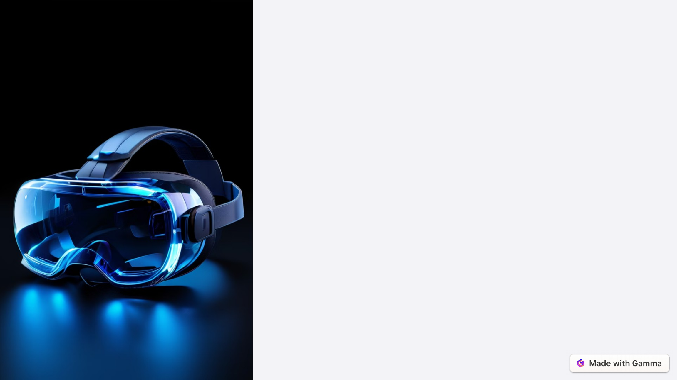 Realidade Virtual (VR) e Realidade Aumentada (AR): Conceitos e Diferenças A realidade virtual (VR) cria um mundo digital completamente imersivo, enquanto a realidade aumentada (AR) combina elementos digitais com o mundo físico. Ambas as tecnologias oferecem experiências únicas e transformadoras, revolucionando áreas como entretenimento, educação e negócios. 1 Aplicações Práticas de VR e AR em Diferentes Setores Jogos e Entretenimento VR e AR transformam jogos e filmes em experiências totalmente imersivas, aproveitando a capacidade de criação de mundos virtuais e a sobreposição de conteúdo digital ao mundo real. Educação e Treinamento Essas tecnologias permitem que estudantes e profissionais vivenciem situações realistas e interativas, melhorando a compreensão e a retenção de conteúdo. Saúde e Medicina VR e AR são usadas em terapias, reabilitação, visualização médica e cirurgias, proporcionando maior precisão e segurança nos procedimentos. 2 Tecnologia e Equipamentos Necessários para VR e AR 1 Headsets Dispositivos de realidade virtual que cobrem o campo de visão do usuário, proporcionando uma experiência imersiva. 2 Sensores e Controles Permitem que o usuário interaja com o ambiente virtual de maneira natural e intuitiva. 3 Plataformas e Software Sistemas e aplicativos que oferecem conteúdo e ferramentas para a criação e uso de experiências de VR e AR. 3 Vantagens e Desafios da Adoção de VR e AR 1 Vantagens Maior engajamento, aprendizado eficaz, redução de custos e riscos em determinados casos. 2 Desafios Custo dos equipamentos, necessidade de infraestrutura adequada, aceitação do público e questões de privacidade. 3 Superação de Obstáculos Avanços tecnológicos, queda nos preços dos dispositivos e conscientização do público sobre os benefícios. 4 Realidade Mista: O Futuro da Interação Homem-Máquina Conteúdo Imersivo Fusão de elementos virtuais e físicos em uma experiência natural e fluida. Interação Intuitiva Controle e manipulação de objetos digitais com gestos e movimentos corporais. Informações Contextuais Acesso a dados relevantes sobrepostos ao mundo real, aumentando a produtividade. 5 Impactos Sociais e Econômicos da Realidade Mista Aumento da Produtividade A realidade mista permite uma interação mais natural e eficiente entre pessoas e sistemas, otimizando tarefas e processos. Novas Oportunidades de Negócios Surgem novos modelos de negócios, serviços e produtos baseados na experiência imersiva e interativa oferecida pela realidade mista. Transformação do Setor de Entretenimento A realidade mista revoluciona a forma como as pessoas consomem conteúdo e interagem com narrativas. Impacto na Educação e Treinamento Melhor compreensão e retenção de conhecimento através de experiências de aprendizado mais envolventes e imersivas. 6 Tendências e Inovações Emergentes em VR e AR Acessibilidade Dispositivos mais leves, confortáveis e acessíveis a um público mais amplo. Mobilidade Soluções sem fio e portáteis que permitem experiências imersivas em qualquer lugar. Inteligência Artificial IA aplicada para personalizar e aprimorar as experiências de VR e AR. 7 Considerações Éticas e Regulatórias na Adoção de VR e AR Privacidade e Segurança Garantir a proteção de dados e evitar usos indevidos das tecnologias. Equidade de Acesso Assegurar que as soluções de VR e AR sejam inclusivas e acessíveis a todos. Impactos Sociais Mitigar possíveis efeitos negativos, como isolamento e dependência tecnológica. Regulamentação Desenvolver diretrizes e políticas que fomentem a adoção segura e responsável dessas tecnologias. 8 image-1-1.png image-1-2.png image-2-1.png image-3-1.png image-4-1.png image-4-2.png image-5-1.png image-5-2.png image-5-3.png image-5-4.png image-6-1.png image-7-1.png image-7-2.png image-7-3.png image-7-4.png image-7-5.png image-8-1.png