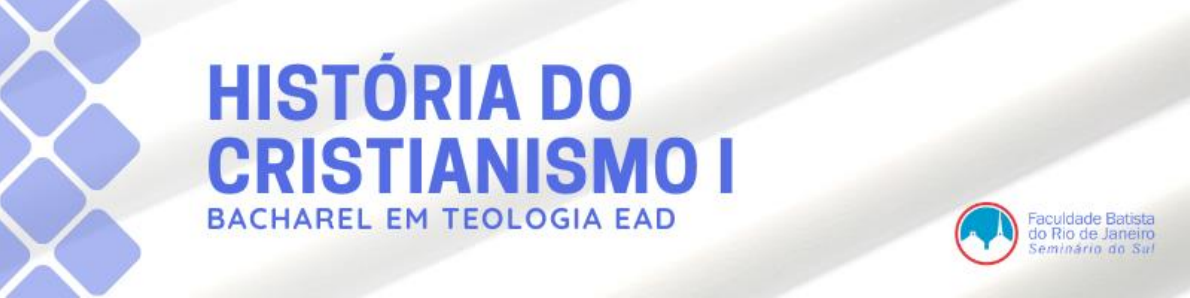 CARGA HORÁRIA 80 horas EMENTA História do Cristianismo I é um estudo dos acontecimentos que envolveram a igreja cristão, no período que compreende entre 100-400 da era cristã. Conteúdo Programático: Bases conceituais – História e Cristianismo; Presença helênica na Judeia; presença romana na Judeia; manipulando a documentação textual e material; do Jesus em perspectiva histórica e o paradigma da ekklesía à oficialidade perante o Império Romano; realidades intrínsecas – perseguição, martírio e os Pais da igreja à formação do cânon. BIBLIOGRAFIA BÁSICA SHELLEY, Bruce L. História do Cristianismo ao Alcance de Todos. São Paulo: Shedd Publicações, 2004. STBSB. Material didático da disciplina História do Cristianismo l, 2019 BIBLIOGRAFIA COMPLEMENTAR BETTENSON, H. Documentos da Igreja Cristã. São Paulo: ASTE, 2001. DREHER, Martin N. História do povo de Jesus. São Leopoldo: Sinodal, 2013. KAUFMAN, Thomas, et. all. História ecumênica da Igreja. São Leopoldo: Sinodal, 2014. 2 v. PELIKAN, Jaroslav. A tradição cristã: uma história do desenvolvimento da doutrina. São Paulo: SHEDD Publicações, 2014. 5 v. PIERINI, Franco. A Idade antiga: curso de História da Igreja. São Paulo: Paulus, 2013.