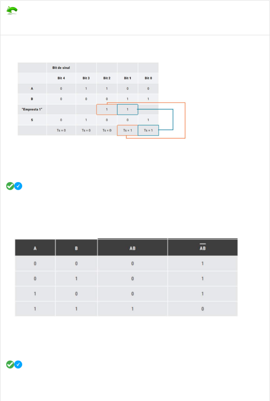 (resultados.cfm?action=list) 2203 - Conceitos de Computação II - Resultados 1 A tabela a seguir ilustra uma operação do seguinte circuito combinacional (escolher a alternativa CORRETA) a latch b registrador c meio somador d subtrador e somador Pontuação: 1 2 A tabela-verdade com entradas A e B apresentada a seguir dizem respeito, na suas saídas, às portas (escolha a alterantiva CORRETA) a OR e NOR b NOR e NAND c OR e AND d AND e NAND e NOT e XOR Pontuação: 1 https://ensintech.sp.senac.br/aluno/resultados.cfm?action=list 3 Assinale a alternativa que corresponde a uma classe especial de circuitos digitais sequenciais cujos estados variam em função do acionamento de um sinal de clock, em uma sequência que se repete continuamente. a contador b registrador c processador d subtrador e somador Pontuação: 1 4 A alternativa que corresponde ao circuito lógico apresentado abaixo é um(a) a clock b flip-flop c contador d subtrador e somador Pontuação: 1 5 Escolha a alternativa que corresponde a nome da ilustração abaixo a thread b teorema de De Morgan c Unidade Lógica Aritmética (ULA) d porta AND e processo Pontuação: 1 6 Em relação a conversão de base numérica, o número binário "1010 1111 1000", convertido para o base hexadecimal, é representado pela alternativa a AF0 b EF8 c FF0 d AF8 e FFF Pontuação: 1 7 Em relação à ULA (Unidade Lógica Aritmética) descreva sua importância em um sistema digital na sua composição essencial com o processador. A ULA (Unidade Lógica Aritmética), conhecida em inglês pela sigla ALU (Arithmetic Logic Unit) é essencial em qualquer sistema digital que se queira trabalhar com operações ló gicas e matemáticas. Resumidamente, é uma grande calculadora eletrônica, desenvolvi da durante a II Guerra Mundial, e sua tecnologia já estava disponível quando os primei ros computadores mais modernos começaram a ser construídos. Normalmente, é o componente central do projeto de qualquer microprocessador, CPU (Central Processing Unit, ou Unidade de Processamento Central, traduzido para o Portu guês). A ULA tem este papel central no projeto de qualquer CPU pois a velocidade do p rocessador depende da velocidade que a ULA resolve as operações lógicas e matemátic as que recebe. Nas CPU's mais modernas costuma ter uma Unidade de Processamento de Ponto Flutu ante, FPU (Floating Point Processing Unit). Nas CPU's mais tradicionais, a ULA é respons ável também por Operações de Ponto Flutuante. Além disso, todas as operações lógicas básicas de uma CPU, como as operações aritmé ticas realizadas com números inteiros, são realizadas pela ULA. Conceito: Certo - Pontuação: 4 Explicação: A ULA é a parte do processador que efetivamente faz o processamento da informação, ou seja, é na ULA que são feitas as operações matemáticas de que precisamos em um produto desenvolvido por meio das técnicas de projeto digital. Legenda: Alternativa correta Resposta do aluno Pontuação total: 10