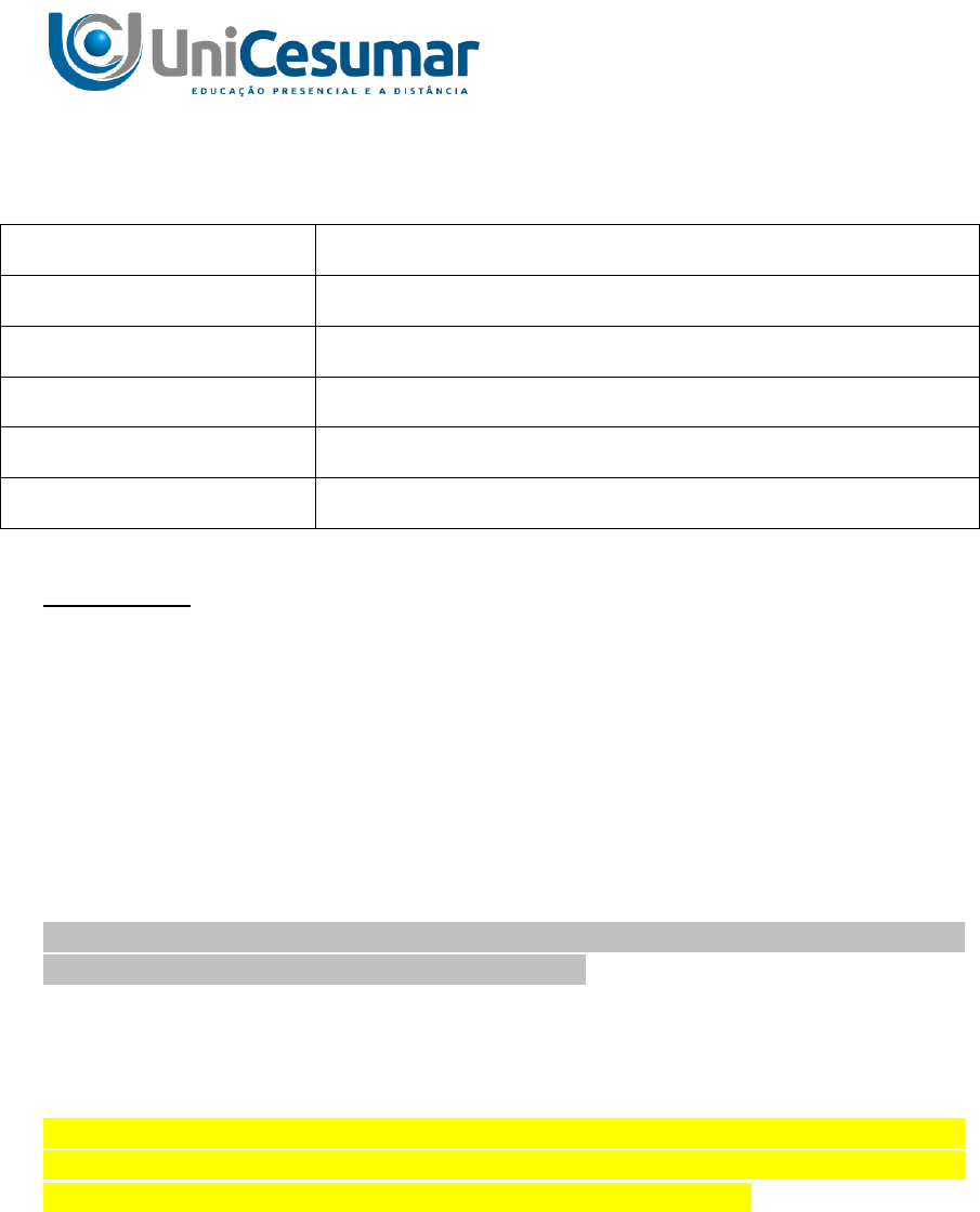 Estágio Supervisionado IV Atividade de Estudo 2 Módulo 52/2023 BEDU – ESTÁGIO IV – ATIVIDADE DE ESTUDOS 2 Nome do acadêmico: RA: Curso: Bacharelado em Educação Física Disciplina: Estágio Supervisionado IV Valor da Atividade: 3,0 pontos Prazo para postagem: 21/05/2024 a 10/06/2024 Orientações: - É obrigatório utilizar o modelo da atividade disponível no "Material da Disciplina". - Leia com atenção todas as informações disponíveis no modelo atividade de estudo e assista a aula conceitual. - É obrigatória a apresentação de 1 (Uma) referência nas normas da ABNT. Na Sala do café, encontra-se um arquivo de como referenciar os livros. - A atividade é individual. Em caso de cópias, atividades similares entre estudantes e plágio à atividade será zerada. - Você deverá enviar o modelo atual em 1 (um) único arquivo, no formato do WORD (.doc ou .docx). A avaliação será feita apenas neste formato, portanto, não entregue outro formato de arquivo. - CERTIFIQUE-SE DE QUE O ARQUIVO É O CORRETO ANTES DE FINALIZAR A ATIVIDADE! POIS, NÃO HÁ COMO REENCAMINHÁ-LO. PORTANTO, FAÇA A CONFERÊNCIA ANTES DE ENVIAR. Estágio Supervisionado IV Atividade de Estudo 2 Módulo 52/2023 Você aluno, após concluir o Bacharelado em Educação Física foi contratado para atuar em uma empresa de Personal para populações especiais. Sua atuação terá início no próximo mês e sua primeira aluna será uma gestante. Principais características da aluna gestante Nome: Ana Idade: 28 anos Peso: 72kg Altura: 1,67 Tempo de gestação: segundo trimestre (4-6 meses) Possui alguma doença? Não Nível de atividade física: Ativa, praticou musculação nos últimos dois anos, mas atualmente só faz caminhada 3x na semana. Restrição médica? Não Objetivo: Fortalecimento muscular dos membros inferiores para o parto normal Informações para elaboração de sua sessão de treino: ➢ Tempo total da aula: 40 minutos ➢ Dias da semana: terça-feira ➢ Horário: 9h00min às 9h40min ➢ Intensidade: leve à moderada ➢ Local: casa da aluna (área) ➢ Materiais disponíveis: bola suíça (bola de pilates); 1 colchonete; 1 cadeira e um trio de mini band. Caso seja necessário, poderá utilizar a parede como apoio de alguns exercícios. Estágio Supervisionado IV Atividade de Estudo 2 Módulo 52/2023 VEJA O EXEMPLO A SEGUIR: EXEMPLO DE PLANO DE ATIVIDADE Aluna: Ana Idade: 28 anos Peso: 72 kg Altura: 1,67 Gestante: segundo trimestre (4-6 meses) Dia da aula: terça-feira Tempo total: 40 minutos Objetivo do treino: Fortalecimento muscular dos membros inferiores para o parto normal Parte Inicial: Alongamento (10 minutos) Exemplo de como descrever a parte inicial. Cruzar o braço direito na frente do tórax com um dos braços e com a mão esquerda pressionar o cotovelo junto ao peito e segurar por 20 segundos. Alternar os lados. Em pé, com a mão direita apoiada na cadeira, elevar a mão esquerda e inclinar para o lado direito. Alternar o lado e repetir 2 vezes cada lado Sentada no chão, esticar a perna de forma diagonal e inclinar o tronco lentamente para o lado direito. Alternar os lados e repetir 3 vezes cada lado. Sentada no chão, esticar a perna de forma diagonal, inclinar o tronco na diagonal em direção ao pé direito. Alternar os lados e repetir 3 vezes cada lado. Parte Principal: Exercícios (20 minutos) Exemplo de como descrever a parte principal do treino. Panturrilha: de pé, a gestante irá apoiar-se na cadeira e realizar a flexão plantar, ficando nas pontas dos pés e retornando lentamente. 3 séries de 15 repetições. Descanso de 1 minuto entre as séries. Agachamento: de pé, a gestante irá esticar os dois braços para frente e realizar o movimento de agachar e sentar na cadeira. 4 séries de 10 agachamentos. Descanso de 1 minuto entre as séries. Abdução: de pé, com a mão apoiada na cadeira, realizar a abdução da perna utilizando a mini band. 3 séries de 10 abduções cada perna. Descanso de 1 minuto entre as séries. Parte Final: Relaxamento (10 minutos) Exemplo de como descrever a parte final. Sentada na cadeira e com a coluna ereta, rotacionar o pescoço lentamente 3 vezes para cada lado. Rotacionar os ombros para frente e para trás. Sentada no chão (colchonete) com as pernas cruzadas inspirar profundamente e encolher os ombros para cima em direção as orelhas. Expirar abaixando os ombros, deslizando as escápulas para baixo. Recursos/materiais Cadeira, colchonete e mini band Estágio Supervisionado IV Atividade de Estudo 2 Módulo 52/2023 A partir das informações recebidas sobre as características da aluna gestante e das informações da aula, elabore UMA SESSÃO de treinamento para a aluna Ana, seguindo o modelo abaixo: PLANO DE ATIVIDADE Aluna: Ana Idade: 28 anos Peso: 72 kg Altura: 1,67 Gestante: Segundo trimestre (4-6 meses) Dia da aula: Terça-feira Tempo total: 40 minutos Objetivo do treino: Fortalecimento muscular dos membros inferiores para o parto normal Parte Inicial: Alongamento (10 minutos) 1º Passo: Inicie a sessão de treinamento com um exercício de marcha estacionária, que deve ser mantido por um período de três minutos. A execução correta deste exercício requer que os joelhos sejam elevados até o nível dos quadris, enquanto os braços são movidos em um ritmo coordenado. É fundamental manter uma postura vertical e realizar respirações profundas durante todo o exercício. 2º Passo: Realize um exercício de alongamento dinâmico dos membros superiores e inferiores, com uma duração estipulada de dois minutos. Este exercício requer que os braços sejam elevados acima da cabeça, seguido de uma inclinação lateral do corpo para ambos os lados, mantendo cada posição por um período de cinco segundos. Posteriormente, execute movimentos circulares com os braços e alterne os movimentos das pernas. 3º Passo: Execute um exercício de rotação dos tornozelos e joelhos, com uma duração total de dois minutos. Na posição ereta, ef