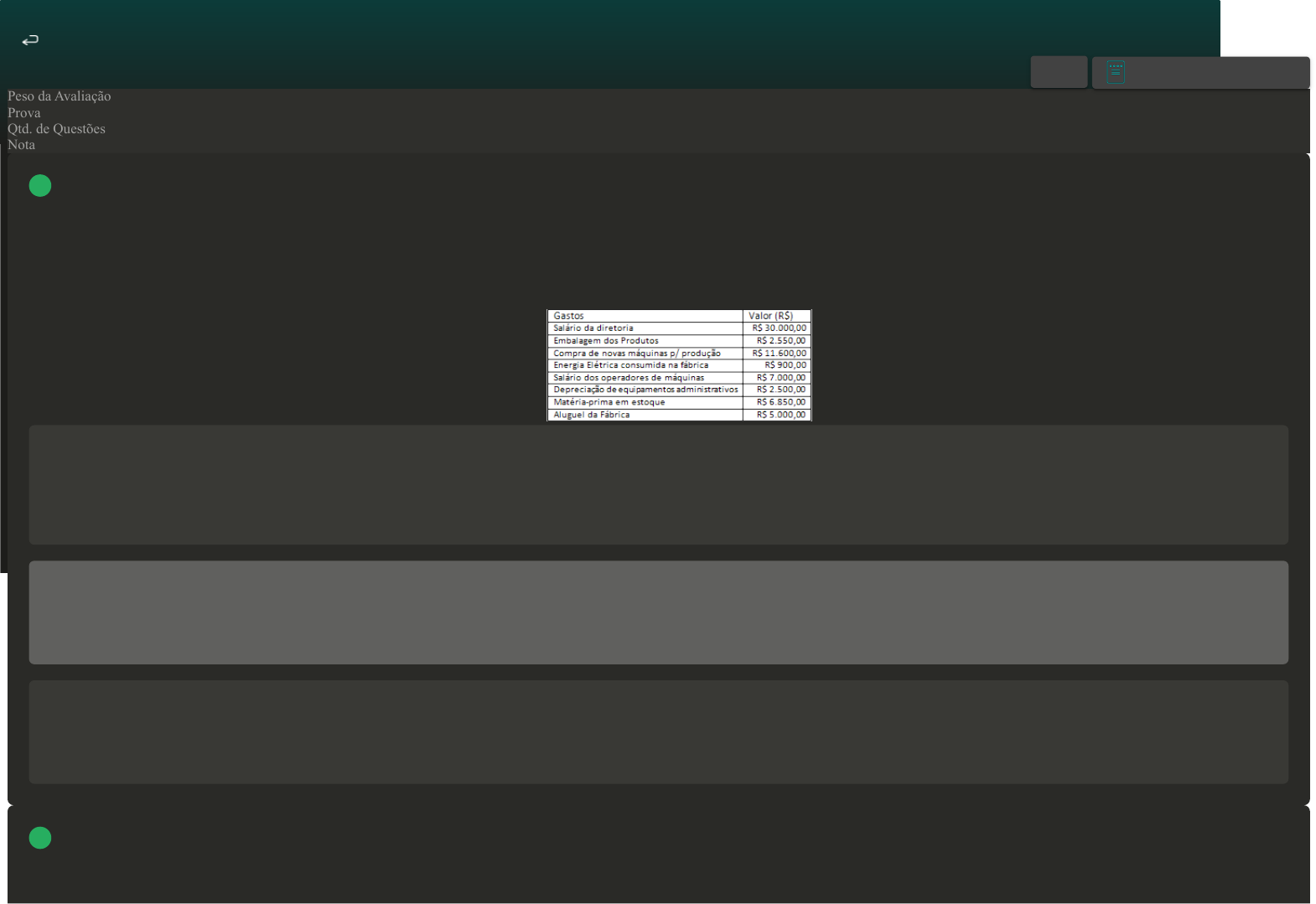 Prova Impressa GABARITO | Avaliação Final (Discursiva) - Individual (Cod.:883557) Peso da Avaliação 4,00 Prova 69400997 Qtd. de Questões 2 Nota 10,00 Em gestão e análise de custos, há três terminologias que devem ser analisadas com bastante atenção, como o custo, a despesa e o investimento. Assim, o custo é o valor gasto com bens e serviços para a produção de outros bens e serviços. Exemplos: matéria-prima, energia aplicada na produção de bens, salários e encargos do pessoal da produção. A despesa é o valor gasto com bens e serviços relativos à manutenção da atividade da empresa, bem como aos esforços para a obtenção de receitas através da venda dos produtos. Exemplos: materiais de escritório, salários da administração. Investimento é a aplicação de algum tipo de recurso (dinheiro ou títulos) com a expectativa de receber algum retorno futuro superior ao aplicado, compensando inclusivamente a perda de uso desse recurso durante o período de aplicação (juros ou lucros, em geral, ao longo prazo). Num sentido amplo, o termo aplica-se tanto à compra de máquinas, equipamentos e imóveis para a instalação de unidades produtivas como à compra de títulos financeiros (letras de câmbio, ações). Nesses termos, investimento é toda aplicação de dinheiro com expectativa de lucro. Com base nestas informações, analise a tabela a seguir e apresente o que se pede: a) Quais dos itens na tabela de gastos é um custo? Apresente o somatório dos custos. b) Quais dos itens na tabela de gastos é uma despesa? Apresente o somatório das despesas. Resposta esperada a) Aluguel da fábrica (5.000) + embalagem dos produtos (2.550) + energia elétrica consumida na fábrica (900) + salário dos operadores de máquinas (7.000) + matéria-prima em estoque (6.850) = R$ 22.300,00. b) Salário da diretoria (30.000) + depreciação dos equipamentos administrativos (2.500) = R$ 32.500,00. Minha resposta Os custos são: embalagem dos produtos, energia elétrica consumida na fábrica, salário dos operadores de máquinas, matéria prima em estoque e aluguel da fábrica. O valor se dá por meio do cálculo (2550+900+7000+6850+5009=R$22.300,00). As despesas são: Salário da diretoria, depreciação de equipamentos administrativos. Somando os valores (30000+2500) obtem-se R$32.500,00. Retorno da correção Parabéns, acadêmico, sua resposta atingiu os objetivos da questão e você contemplou o esperado, demonstrando a competência da análise e síntese do assunto abordado, apresentando excelentes argumentos próprios, com base nos materiais disponibilizados. No processo de formação de preço de vendas, é necessário avaliar mercado, concorrência, demanda, entre outros fatores determinantes. Disserte sobre outros fatores que devem ser levados em conta em relação às decisões que envolvem a formação do preço de venda. VOLTAR A+ Alterar modo de visualização 1 2 12/06/24, 14:16 Avaliação Final (Discursiva) - Individual about:blank 1/2 Resposta esperada As decisões que envolvem a formação do preço de vendas precisam levar em conta o volume de vendas, o grau de eficiência do mix em relação ao resultado direto, bem como todas as despesas que envolvem tanto a administração como também a equipe de vendas. Não se pode esquecer também toda a necessidade financeira que envolve a operação da empresa. Minha resposta Os fatores decisivos que envolvem a formação de preço de vendas é o volume de vendas, a variedade em relação ao resultado direto, as despesas administrativas e operacionais e a necessidade financeira que a operação da empresa requer. Por isso faz-se necessário uma equipe administrativa e contábil com significativa competência para a tomada de decisões e avaliação do cenário. Retorno da correção Parabéns, acadêmico, sua resposta atingiu os objetivos da questão e você contemplou o esperado, demonstrando a competência da análise e síntese do assunto abordado, apresentando excelentes argumentos próprios, com base nos materiais disponibilizados. Imprimir 12/06/24, 14:16 Avaliação Final (Discursiva) - Individual about:blank 2/2