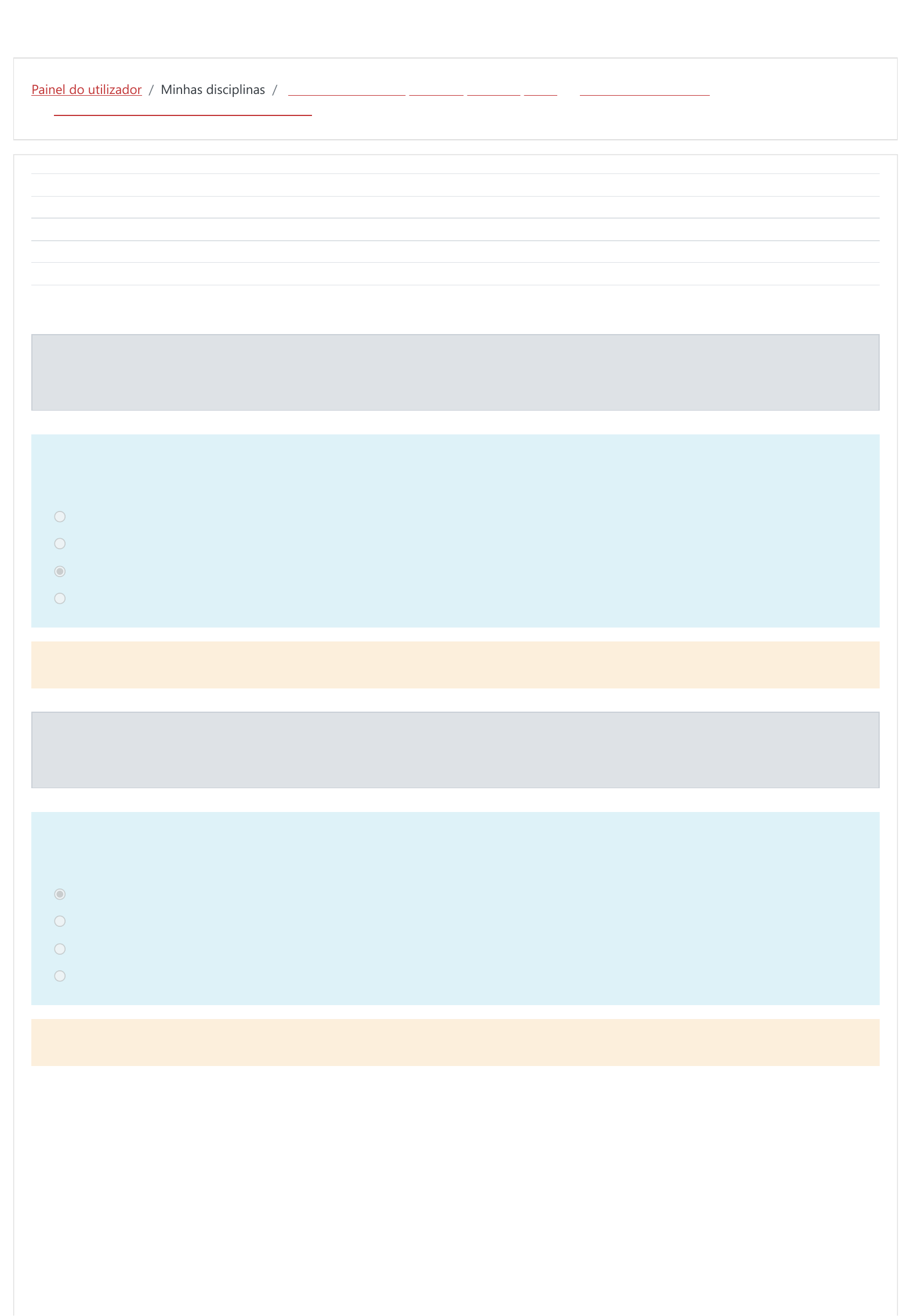 Painel do utilizador / Minhas disciplinas / MBA em Administração e Direção de Empresas / BLOCO 12. COMÉRCIO / Módulo 1. Teorias do Comércio Internacional Iniciada Domingo, 9 de Junho de 2024 às 09:20 Estado Terminada Terminada Domingo, 9 de Junho de 2024 às 09:35 Tempo gasto 14 minutos 50 segundos Nota 19,00 num máximo de 20,00 (95%) Feedback Apto Pergunta 1 Correta Nota: 1,00 em 1,00 Pergunta 2 Correta Nota: 1,00 em 1,00 01. As premissas da teoria de Linder são: Selecione uma opção de resposta: a. Ciclo do produto. b. Segmentação dos mercados. c. A e b estão corretas. d. Crescimento da renda per capita. A resposta correta é: A e b estão corretas. 02. Quais são as fases da teoria do ciclo do produto? Selecione uma opção de resposta: a. Produto novo, maturidade do produto e padronização do produto. b. Produto novo e fragmentação do produto. c. Produto novo e maturidade do produto. d. Produto novo, maturidade do produto e fragmentação do produto. A resposta correta é: Produto novo, maturidade do produto e padronização do produto. 6/9/24, 9:35 AM Módulo 1. Teorias do Comércio Internacional: Revisão da tentativa https://campus.eneb.pt/mod/quiz/review.php?attempt=76244&cmid=921 1/7 https://campus.eneb.pt/my/ https://campus.eneb.pt/course/view.php?id=2 https://campus.eneb.pt/course/view.php?id=2#section-12 https://campus.eneb.pt/mod/quiz/view.php?id=921 Pergunta 3 Correta Nota: 1,00 em 1,00 Pergunta 4 Correta Nota: 1,00 em 1,00 Pergunta 5 Correta Nota: 1,00 em 1,00 03. Quem é o autor da hipótese: "a análise se deve centrar no produto mais que nos países, a tecnologia utilizada para a fabricação do mesmo ou a proporção dos fatores que intervém em cada produto"? Selecione uma opção de resposta: a. Vernon. b. Raymond. c. Linder. d. Leontief. A resposta correta é: Vernon. 04. A teoria __________________ está formada por dois elementos fundamentais, a oferta (custos de produção) e a demanda (nível de vida dos consumidores). Qual das seguintes opções corresponde ao espaço em branco? Selecione uma opção de resposta: a. A e C são corretas. b. do mercado c. do ciclo do produto d. de Vernon A resposta correta é: A e C são corretas. 05. A autarquia é um sistema de produção própria do: Selecione uma opção de resposta: a. Nenhuma das opções anteriores. b. Internacionalismo. c. Feudalismo. d. Mercantilismo. A resposta correta é: Feudalismo. 6/9/24, 9:35 AM Módulo 1. Teorias do Comércio Internacional: Revisão da tentativa https://campus.eneb.pt/mod/quiz/review.php?attempt=76244&cmid=921 2/7 Pergunta 6 Correta Nota: 1,00 em 1,00 Pergunta 7 Correta Nota: 1,00 em 1,00 Pergunta 8 Correta Nota: 1,00 em 1,00 06. Qual das seguintes variáveis é introduzida marcadamente no estudo dos mercados internacionais por Vernon? Selecione uma opção de resposta: a. Comercialização. b. Externalização. c. Mercantilismo. d. Investimento. A resposta correta é: Investimento. 07. Em relação ao mercantilismo, assinale a opção correta. Selecione uma opção de resposta: a. Implica a aparição da acumulação de riqueza através do comércio exterior. b. Está associado com as necessidades do Estado. c. B e C são corretas. d. É sinônimo do feudalismo. A resposta correta é: B e C são corretas. 08. A teoria econômica de Adam Smith baseia a vantagem absoluta das nações em: Selecione uma opção de resposta: a. Investigação e desenvolvimento. b. Tecnologia. c. Mão de obra. d. Abundância de capital. A resposta correta é: Mão de obra. 6/9/24, 9:35 AM Módulo 1. Teorias do Comércio Internacional: Revisão da tentativa https://campus.eneb.pt/mod/quiz/review.php?attempt=76244&cmid=921 3/7 https://campus.eneb.pt/mod/url/view.php?id=932 Pergunta 9 Correta Nota: 1,00 em 1,00 Pergunta 10 Correta Nota: 1,00 em 1,00 Pergunta 11 Correta Nota: 1,00 em 1,00 09. David Ricardo propõe em suas investigações: Selecione uma opção de resposta: a. B e C são corretas. b. A vantagem comparativa. c. A especialização de cada país em determinados produtos. d. A diversificação de cada país na produção do maior número de recursos possíveis. A resposta correta é: B e C são corretas. 10. Em relação a teoria de Heckscher-Ohlin, os fatores de produção que participam na criação de uma vantagem competitiva entre os países são: Selecione uma opção de resposta: a. Capital e mão de obra. b. Capital e tecnologia. c. Capital e recursos. d. Trabalho e economia de escala. A resposta correta é: Capital e mão de obra. 11. Segundo Hecksher-Ohlin: Selecione uma opção de resposta: a. Todas as nações têm as mesmas possibilidades em acessar a tecnologia. b. A e B são corretas. c. A tecnologia é propriedade unicamente das grandes empresas. d. Os países com abundância de capital devem se especializar na produção de bens de pouco investimento. A resposta correta é: Todas as nações têm as mesmas possibilidades em acessar a tecnologia. 6/9/24, 9:35 AM Módulo 1. Teorias do Comércio Internacional: Revisão da tentativa https://campus.eneb.pt/mod/quiz/review.php?attempt=76244&cmid=921 4/7 Pergunta 12 Correta Nota: 1,00 em 1,00 Pergunta 13 Incorreta Nota: 0,00 em 1,00 Pergunta 14 Correta Nota: 1,00 em 1,00 12. Hecksher-Ohlin explicam que: Selecione uma opção de resposta: a. O único elemento diferenciador para elaborar produtos mais econômicos é conseguir fatores de produção mais baratos. b. A especialização da produção diminui devido à escassez de certos fatores de produção. c. B e C são corretas. d. A especialização da produção supõe um crescimento infinito da produtividade. A resposta correta é: B e C são corretas. 13. Leontief explica através da sua teoria que os Estados Unidos é um país: Selecione uma opção de resposta: a. Exportador com alto componente de recursos comerciais. b. Nenhuma opção é correta. c. Exportador com alto componente de capital. d. Exportador com um alto componente de mão de obra. A resposta correta