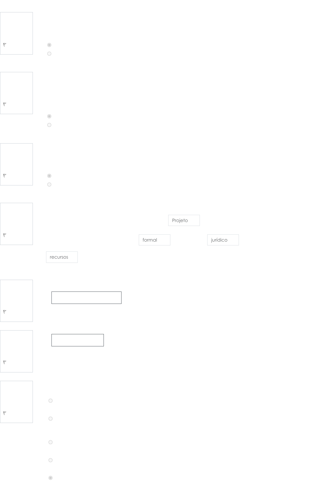 Questão 1 Correto Atingiu 1,00 de 1,00 Marcar questão Questão 2 Correto Atingiu 1,00 de 1,00 Marcar questão Questão 3 Correto Atingiu 1,00 de 1,00 Marcar questão Questão 4 Correto Atingiu 1,00 de 1,00 Marcar questão Questão 5 Correto Atingiu 1,00 de 1,00 Marcar questão Questão 6 Correto Atingiu 1,00 de 1,00 Marcar questão Questão 7 Correto Atingiu 1,00 de 1,00 Marcar questão Avaliar 9,00 de um máximo de 10,00(90%) A estrutura analítica de projetos é uma ferramenta muito utilizada para destacar todos os componentes e atividades que fazem parte do projeto e que permitem a sua efetivação. Escolha uma opção: Verdadeiro Falso No processo de iniciação deve-se criar o termo de abertura, que deverá conter o título do projeto, resumo ou introdução, nome, responsabilidades e autoridades do gerente, necessidades do trabalho a ser realizado, descrição do produto, cronograma básico, estimativa de custos, necessidades de recursos, suporte necessário, controle e gerenciamento das informações e aprovações com devidas assinaturas. Escolha uma opção: Verdadeiro Falso O fechamento de um projeto é o momento em que devemos olhar para trás e examinar todo o projeto, conscientes do que ocorreu de forma positiva e o que houve de negativo. Escolha uma opção: Verdadeiro Falso Selecione a palavra que complete corretamente as lacunas na frase a seguir: Na fase de iniciação deve ser criado o Livro Geral do , de modo a ter um documento no qual todas as informações do projeto sejam registradas. O cuidado com esse livro é o que se deve tomar com um documento de interesse para a empresa. Além de todas as informações, também devem ser registradas todas as alternativas para o projeto com as devidas estimativas de necessários. Projeto formal jurídico recursos Complete corretamente a lacuna na frase a seguir e com base nos textos do curso: O patrocinador não deve ser confundido como aquele que fomenta financeiramente o projeto. O fomento financeiro é dado pela empresa ou pelo solicitante do projeto, no caso de projeto sob encomenda. O patrocinador é aquele profissional da alta administração que desenvolve o projeto. Assinale a afirmativa incorreta. a. A EAP consiste em detalhar todo o projeto, como se fosse um organograma. b. Para uma perfeita construção da EAP, faz-se necessário estudos pormenorizados das áreas específicas pertencentes ao gerenciamento de projetos. c. A EAP é um instrumento de integração. d. A EAP auxilia na identificação das diversas ligações entre os diversos componentes do projeto. e. 12/06/2024, 15:31 2.8 Teste seus conhecimentos: Revisão da tentativa https://moodle.ifrs.edu.br/mod/quiz/review.php?attempt=16272545&cmid=387727 1/2 Questão 8 Incorreto Atingiu 0,00 de 1,00 Marcar questão Questão 9 Correto Atingiu 1,00 de 1,00 Marcar questão Questão 10 Correto Atingiu 1,00 de 1,00 Marcar questão A EAP não possui relação com estimativas de tempo para cada atividade. Assinale a afirmativa incorreta. a. O patrocinador, normalmente, é aquele profissional da alta administração que desenvolve o projeto. b. No processo inicial do projeto, existem três figuras que se destacam: o patrocinador, o gerente e a equipe básica. c. A equipe básica para o início do projeto é formada por especialistas, ou pessoas que possuam conhecimento técnico para ajudar na definição do escopo do projeto. d. Os projetos nascem de necessidades e demandas. Porém, tanto as necessidades quanto as demandas nem sempre são oportunidades. Complete corretamente a lacuna na frase a seguir e com base nos textos do curso: Conforme THIRY-CHERQUES (2002), o orçamento deve garantir, por exemplo a alocação dos custos do projeto, de maneira lógica e fácil acesso. Os projetos nascem de necessidades e demandas. Escolha uma opção: Verdadeiro Falso 12/06/2024, 15:31 2.8 Teste seus conhecimentos: Revisão da tentativa https://moodle.ifrs.edu.br/mod/quiz/review.php?attempt=16272545&cmid=387727 2/2