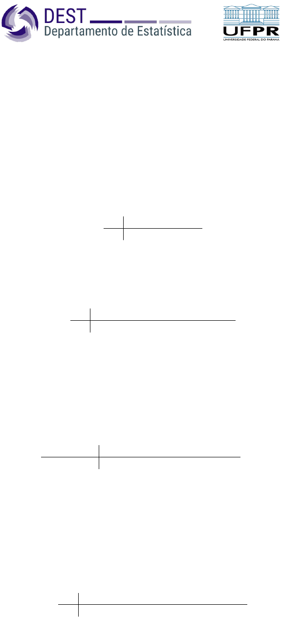 Exercícios Variáveis aleatórias Os exercícios foram extraídos dos livros: Bussab, WO; Morettin, PA. Estatística Básica. São Paulo: Editora Saraiva, 2006 (5ª Edição). Magalhães, MN; Lima, ACP. Noções de Probabilidade e Estatística. São Paulo: EDUSP, 2008. 1. Sendo Y uma variável aleatória com função de probabilidade dada a seguir, obtenha as medidas de posição média (µ), mediana (Md) e moda (Mo). Y -2 0 2 pi 1/3 1/3 1/3 2. Um atacadista recebe de vários fornecedores uma certa peça para revenda. A peça é produzida com material de qualidade diferente e, portanto, possui custo diferenciado. Levando em conta a proporção fornecida e o preço apresentado por cada fabricante, pode-se admitir que o custo de uma peça qualquer (em reais), escolhida ao acaso, é uma variável aleatória (C). Admita a seguinte função de probabilidade para C: C 1,00 1,10 1,20 1,30 1,40 pi 0,2 0,3 0,2 0,2 0,1 a) Determine as medidas de posição da variável C. b) Suponha que o atacadista revenda cada uma dessas peças acrescentado 50% sobre o custo da peça, além de um adicional de R$ 0,10 pelo frete. Calcule as medidas de posição da variável V : preço de revenda da peça. 3. Num certo bairro da cidade de São Paulo, as companhias de seguro estabeleceram o seguinte modelo para número de veículos furtados por semana: Furtos (F ) 0 1 2 3 4 pi 1/4 1/2 1/8 1/16 1/16 Calcule a média e a variância do número de furtos semanais do bairro. 4. Num jogo de dados, um jogador paga R$ 5 para lançar um dado equilibrado e ganha R$ 10 se resultar na face 6, ganha R$ 5 se resultar na face 5 e não ganha nada com as outras faces. Defina a variável L: lucro por jogada como sendo o saldo que o jogador ganhou menos o pagamento inicial (prejuízo é lucro negativo). Construa a função de probabilidade e determine média, moda, mediana e variância dessa variável. 5. Num teste de digitação, o tempo em minutos (T ) que os candidatos levaram para digitar um texto é modelado, de forma aproximada, pela seguinte função de probabilidade: T 3 4 5 6 7 8 9 pi 0,1 0,1 0,2 0,2 0,2 0,1 0,1 O candidato recebe 4 pontos se terminar a digitação em 9 minutos, 5 se terminar em 8 minutos e assim por diante. Determine a média e a variância da variável N : número de pontos obtidos no teste. http://www.ime.usp.br/~pam http://www.editorasaraiva.com.br/produtos/show/isbn:9788502207998/titulo:estatistica-basica/ http://www.saraivauni.com.br http://www.ime.usp.br/~marcos http://www.ime.usp.br/~acarlos http://www.ime.usp.br/~noproest 6. Um caminho para chegar a uma festa pode ser divido em três etapas. Sem enganos o trajeto é feito em 1 hora. Se enganos acontecerem na primeira etapa, acrescente 10 minutos ao tempo do trajeto. Para enganos na segunda etapa, o acréscimo é 20 e, para terceira, 30 minutos. Admita que a probabilidade de engano é 0.1, 0.2 e 0.3 para a primeira, segunda e terceira etapas, respectivamente. É provável haver atraso na chegada à festa? Determine a probabilidade de haver atraso, e o atraso não passar de 40 minutos. 7. Um pai leva o filho ao cinema e vai gastar nas duas entradas R$ 15. O filho vai pedir para comer pipoca com probabilidade 0.7 e, além disso, pode pedir bala com probabilidade 0.5, independentemente um do outro. Se a pipoca custa R$ 2 e a bala R$ 3, estude o gasto (G) efetuado com o passeio ao cinema. 8. Uma variável aleatória Y tem a seguinte função de distribuição: F (Y ) = 0 se y < 10 0.2 se 10 ≤ y < 12; 0.5 se 12 ≤ y < 13; 0.9 se 13 ≤ y < 25; 1 se y ≥ 25. Determine: a) A função de probabilidade de Y . b) P (Y ≤ 12). c) P (Y < 12). d) P (12 ≤ Y ≤ 20). e) P (Y > 18). 9. Um agricultor cultiva laranjas e também produz mudas para vender. Após alguns meses, a muda pode ser atacada por fungos com probabilidade 0.05 e, nesse caso, ela é escolhida para ser recuperada com probabilidade 0.5. Admita que o processo de recuperação é infalível. O custo de cada muda produzida é R$ 1.00, mas acrescido de mais 50 centavos se precisar ser recuperada. Cada muda é vendida a R$ 3.00 e são descartadas as mudas não recuperadas de ataque de fungos. Estude como se comporta o ganho por muda produzida. 10. Num certo restaurante, paga-se pelo almoço uma quantia fixa dependendo da escolha feita de prato e bebida. A carne de peixe tem 10% de preferência, enquanto o frango tem 40% e carne bovina 50% . As três escolhas de bebida estão condicionadas à opção do prato, segundo a tabela abaixo: Opção: Peixe Cerveja Água Vinho P(Bebida|Peixe) 0.4 0.3 0.3 Opção: Frango Cerveja Água Vinho P(Bebida|Frango) 0.3 0.5 0.2 Opção: Bovina Cerveja Água Vinho P(Bebida|Bovina) 0.6 0.3 0.1 Admita os seguintes preços: Pedido Peixe Frango Bovina Cerveja Água Vinho Preço 12 15 18 6 3 9 a) Dado que alguém escolhe peixe, qual a probabilidade de que escolha cerveja? b) Se escolhe carne bovina, qual a probabilidade de tomar vinho? c) Sabendo que tomou água, qual a chance de ter escolhido frango? d) Determine a função de probabilidade para cada uma das variáveis X: preço do almoço e Y : preço do almoço para aqueles que preferem cerveja. 2 11. A resistência (em toneladas) de vigas de concreto produzidas por uma empresa, comporta-se conforme a função de probabilidade abaixo: Resistência (Y ) 2 3 4 5 6 pi 0.1 0.1 0.4 0.2 0.2 Admita que essas vigas são aprovadas para uso em construções se suportarem pelo menos 3 toneladas. De um grande lote fabricado pela empresa, escolhemos 15 vigas ao acaso. Qual será a probabilidade de: a) Todas serem aptas para construções? b) No mínimo 13 serem aptas? 12. Verifique se as expressões a seguir são funções densidade de probabilidade (assuma que elas se anulam fora dos intervalos especificados). a) f(y) = 3y, se 0 ≤ y ≤ 1. b) f(y) = y2/2, se y ≥ 0. c) f(y) = (y − 3)/2, se 3 ≤ y ≤ 5. d) f(y) = 2, se 0 ≤ y ≤ 2. e) f(y) = { (2 + y)/4, se − 2 ≤ y < 0; (2 − y)/4, se 0 ≤ y ≤ 2. 13. O tempo, em minu