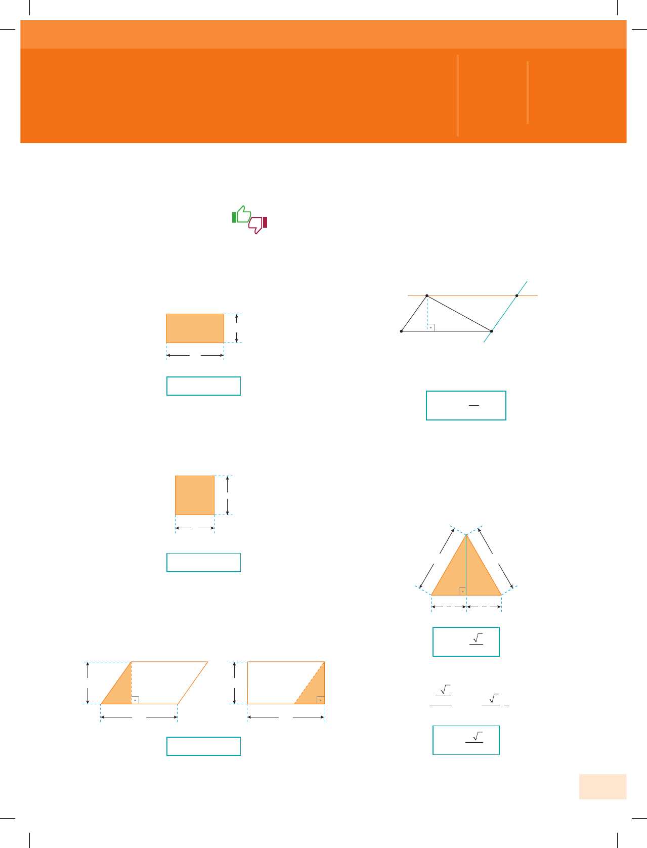 área de algumas figuras planas retângulo a área A de um retângulo é o produto da medida da base pela medida da altura. b h a = b.h quadrado O quadrado é um retângulo de lados iguais. Logo, sua área A é o produto da medida da base pela medida da altura. a a a = a2 paralelogramo a área de um paralelogramo de base b e altura h é igual à área de um retângulo de base b e altura h. Observe: b h b h a = b.h triângulo Consideremos um triângulo abC, cuja base AB mede b e a altura relativa a essa base mede h. Traçando por C a reta r paralela à base, e por B a reta s paralela ao lado AC, obtemos o paralelogramo abDC a seguir: h A B D C s b r Como o triângulo bCD é congruente ao triângulo abC e a área A do triângulo abC é metade da área do paralelogramo, então, temos: a = bh. 2 Ou seja, a área do triângulo é metade do produto da medida da base pela medida da altura. triângulo equilátero Pelo Teorema de Pitágoras, calcula-se facilmente a medida h da altura de um triângulo equilátero de lado , obtendo: 2 2 h h = 3 2 Logo, a área A desse triângulo é: a = . . 3 2 2 3 2 1 2 2 � � �A a = 2 3 4 Módulo 11 Frente B 47Bernoulli Sistema de Ensino MATEMÁTICA áreas de polígonos 2020_6V_V3_MAT_PR_BOOK.indb 47 23/01/2020 10:17:38 hexágono regular as diagonais de um hexágono regular dividem-no em seis triângulos equiláteros. assim, a área A de um hexágono regular de lado é igual a seis vezes a área de um triângulo equilátero de lado . a= 6. 2 3 4 ⇒ a = 3 3 2 2 trapézio Traçando uma diagonal de um trapézio de altura h e bases b e B, dividimo-lo em dois triângulos de altura h e bases de medidas b e B. Observe a figura. b B h a área A do trapézio é a soma das áreas desses dois triângulos. assim, temos: a = B h b h. . 2 2 � � a = ( ).B b h+ 2 Portanto, a área A do trapézio é igual à metade do produto da altura pela soma das bases. losango Consideremos um losango cujas diagonais medem D e d. sabemos que as diagonais de um losango são perpendiculares entre si e o ponto em que elas concorrem é o ponto médio de cada uma. Observe, portanto, que a área A do losango é o dobro da área do triângulo de base d e altura D 2. Q N D P d M a = 2. d D. 2 2 ⇒ a = d D. 2 Portanto, a área A do losango é metade do produto das medidas das diagonais. ObsErvaçãO O losango também é paralelogramo. Logo, sua área pode ser calculada como a área de um paralelogramo. expressões da área de um triângulo em função das medidas dos lados – teorema de heron Dado um triângulo abC, com lados de medidas a, b e c, sendo o semiperímetro p = a b c+ + 2 , A c B b a C temos que a área do triângulo abC é: a = p p a p b p c.( ).( ).( )- - - Frente B Módulo 11 48 Coleção 6V 2020_6V_V3_MAT_PR_BOOK.indb 48 23/01/2020 10:17:39 em função do semiperímetro e do raio da circunferência inscrita Dado um triângulo abC, com lados de medidas a, b e c, com semiperímetro p = a b c+ + 2 , e a circunferência inscrita de raio r, então a área do triângulo abC é: a = p.r Demonstração: A c B b a C r r r o aD abC = aD bCO + aD aCO + aD abO ⇒ aD abC = a r b r c r. . . 2 2 2 + + ⇒ aD abC = a b c r� �� � � � � �2 . ⇒ aD abC = p.r em função da medida de dois lados e do ângulo compreendido entre eles Dado um triângulo abC, com lados de medidas a, b e c e ângulo de medida â, compreendido pelos lados b e c, temos que a área desse triângulo é: a = 1 2 .b.c.sen A Demonstração: A A b c a B C h A c h h b h b A b cABC ABC � � � � � � � � �� � � � � � . sen sen . .sen2 2 A A A em função das medidas dos lados e do raio da circunferência circunscrita Dado um triângulo abC, com lados de medidas a, b e c, inscrito em uma circunferência de raio R. C A B R O c a A b a área do triângulo abC inscrito na circunferência é: a = ab c R . . 4 Demonstração: A b c sen a sen R sen a R A a b c R ABC ABC � � � � � � � � � � � � � � � 1 2 2 2 4 . . . . . A A A áreas de polígonos regulares Considere um polígono regular a1a2a3a4...an, de n lados de medida e semiperímetro p = n 2 , inscrito em uma circunferência de centro O e raio R. O polígono pode ser dividido em n triângulos isósceles congruentes. O RR R A1 A4 A2 A3 A6 An A5 R R R R R O Áreas de Polígonos M A TE M Á TI C A 49Bernoulli Sistema de Ensino 2020_6V_V3_MAT_PR_BOOK.indb 49 23/01/2020 10:17:40 Traça-se, em um dos triângulos, o apótema a do polígono. R R O A2 A1 a a área aT desse triângulo é dada por aT = .a 2 . Como o polígono possui n triângulos, então sua área aP é dada por: aP = n.aT ⇒ aP = n. .a 2 ⇒ aP = n. 2 .a ⇒ aP = p.a exerCíCios resolvidos 01. (UNIFEsP) Dois triângulos congruentes abC e abD, de ângulos 30°, 60° e 90°, estão colocados como mostra a figura, com as hipotenusas ab coincidentes. A B CD se ab = 12 cm, a área comum aos dois triângulos, em centímetros quadrados, é igual a: a) 6 b) 4 3 C) 6 3 D) 12 E) 12 3 Resolução: Dados ab = 12 cm e os ângulos internos dos triângulos abC e abD, determinamos as medidas dos outros lados. 30° 30° 60° 60° 30° 30° 6¹3 A B CD E 2¹3 12 6 sen 30° = BC AB BC BC cm� � � � 1 2 12 6 cos 30° = AC AB AC AC cm� � � � 3 2 12 6 3 tg 30° = CE BC CE CE cm� � � � 3 3 6 2 3 Portanto, a área, em cm2, do triângulo abE vale: aD abE = aD abC – aD bEC ⇒ aD abE = 6 6 3 2 6 2 3 2 . . - ⇒ aD abE = 12 3 02. (UFv-MG) seja f a função definida por f(x) = sen x, x ≥ 0. Num mesmo sistema de coordenadas, considere os pontos A B� � 6 0 2 0, , ,� � � � � � � � � � � � , C e D, em que C e D estão sobre o gráfico de f, cujas abscissas são, respectivamente, π π 2 6 e . Unindo-se esses pontos, obtém-se o quadrilátero abCD, cuja área vale: a) π 4 b) π 2 C) π 5 D) π 3 Resolução: Temos os pontos A e B� � 6 0 2 0, ,� � � � � � � � � � � � . Como os pontos C e D pertencem